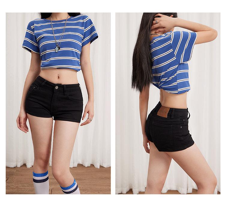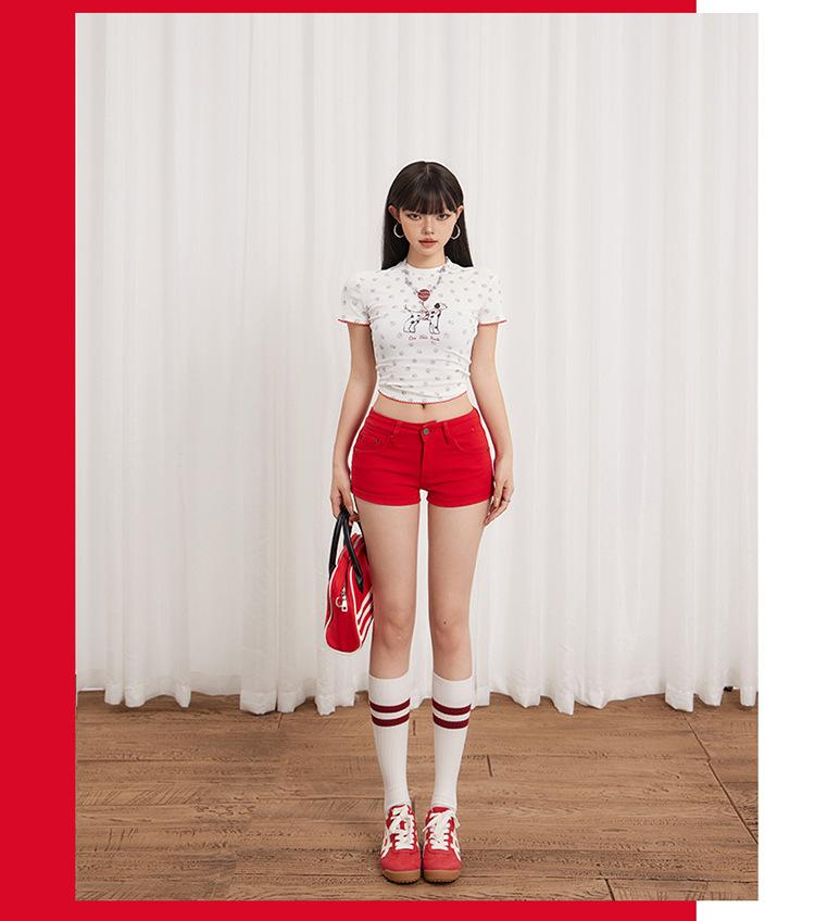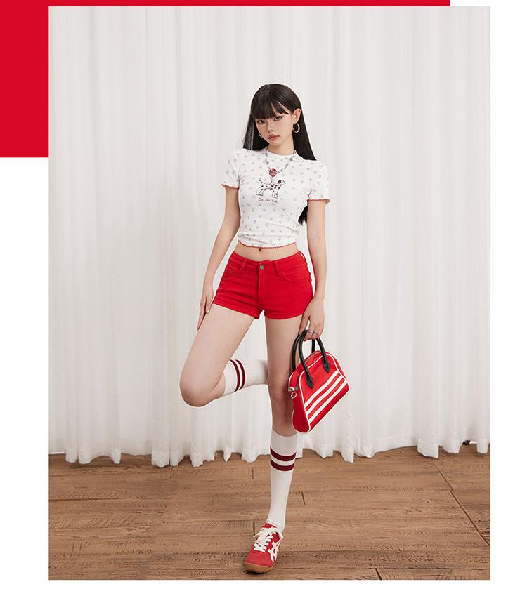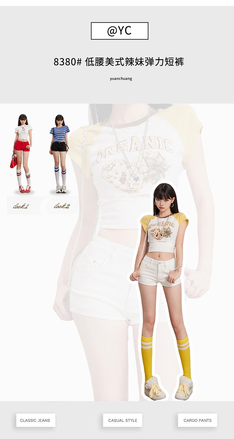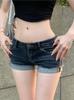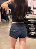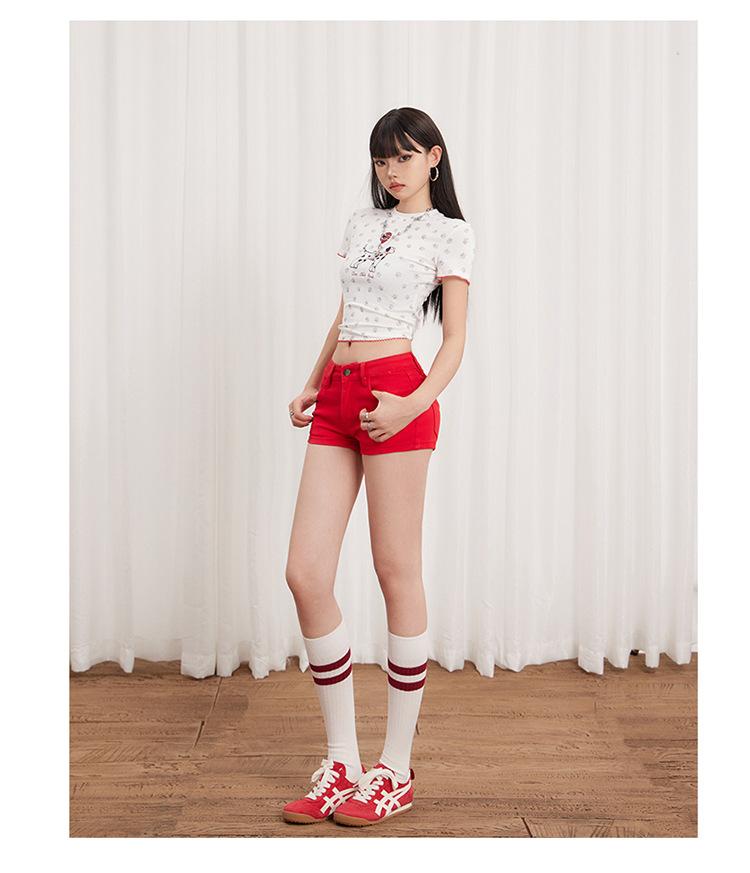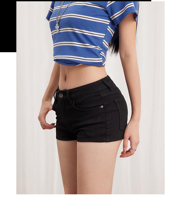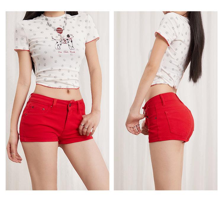 Shorts de mezclilla de tiro bajo rojos, blancos y negros para chica sexy americana, adelgazantes, elásticos, versátiles, de verano, nuevos, pantalones cortos calientes
