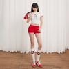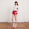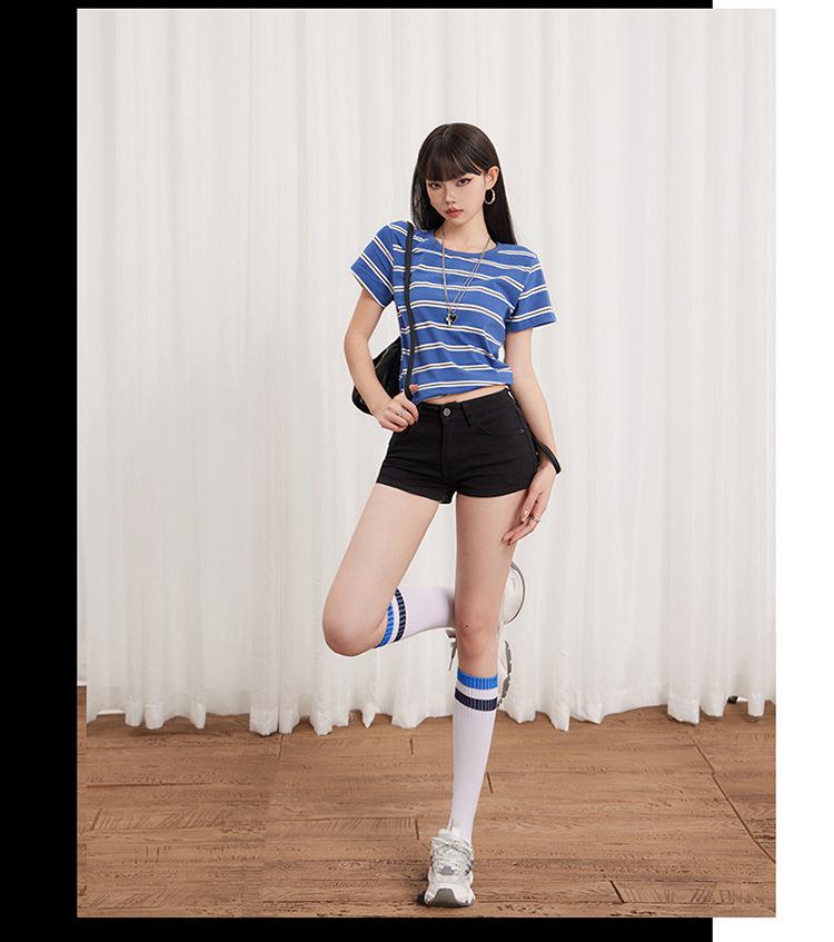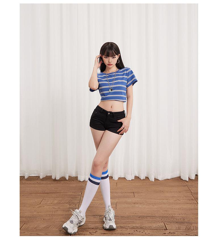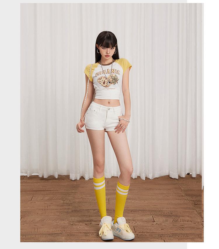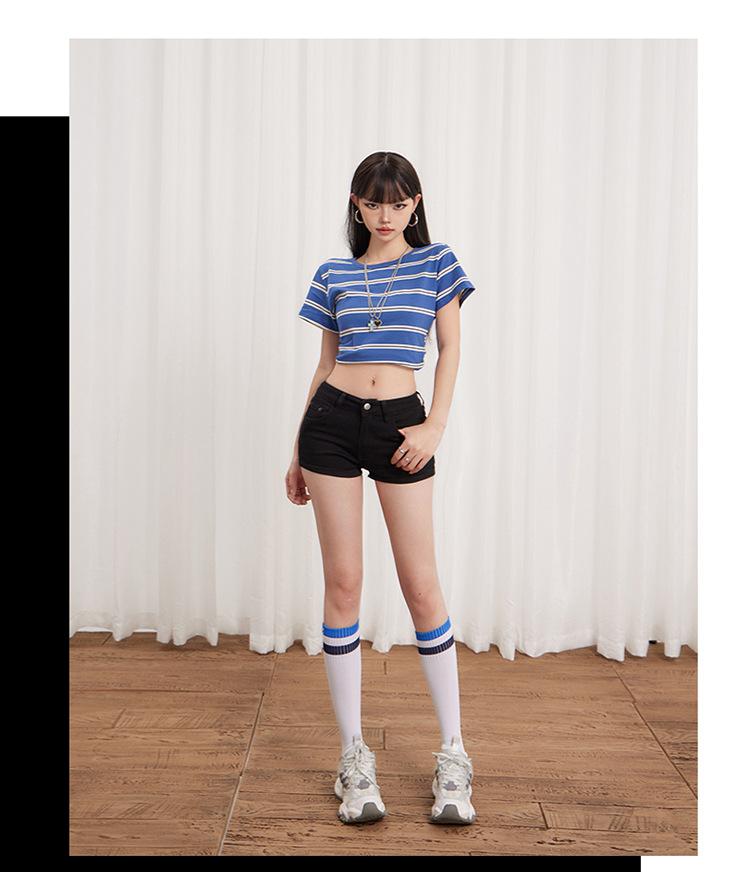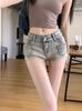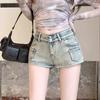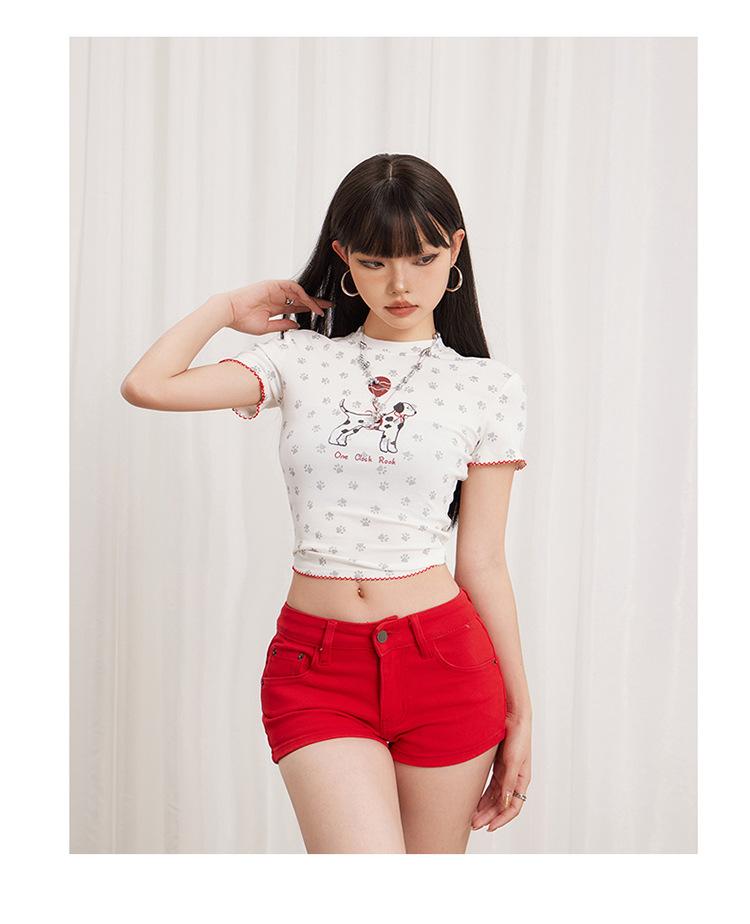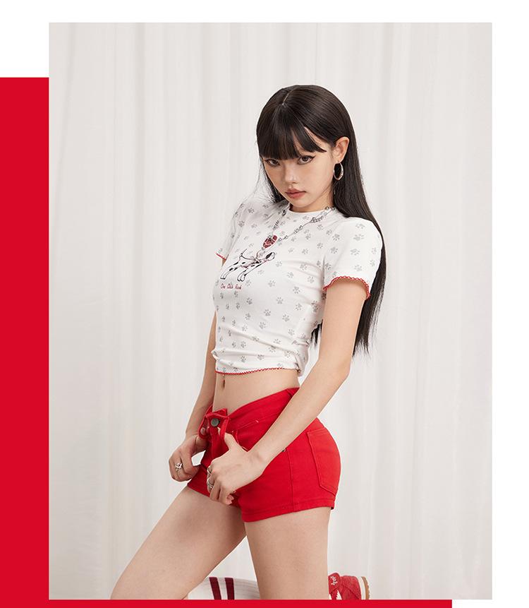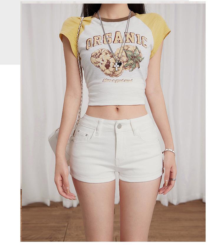 Shorts de mezclilla de tiro bajo rojos, blancos y negros para chica sexy americana, adelgazantes, elásticos, versátiles, de verano, nuevos, pantalones cortos calientes