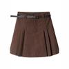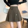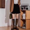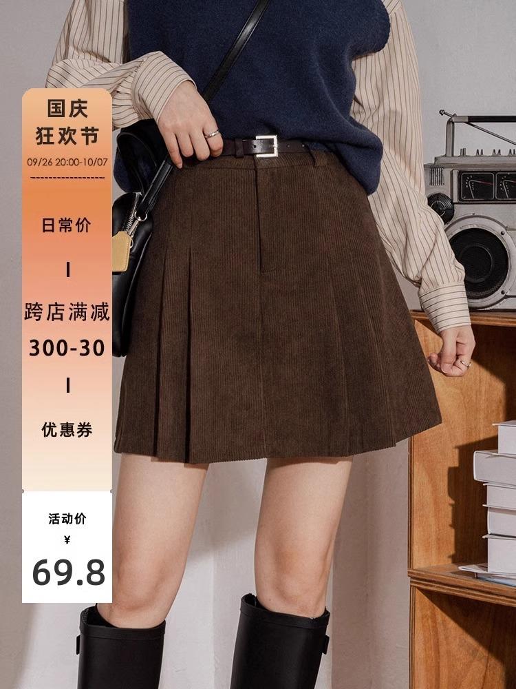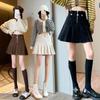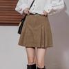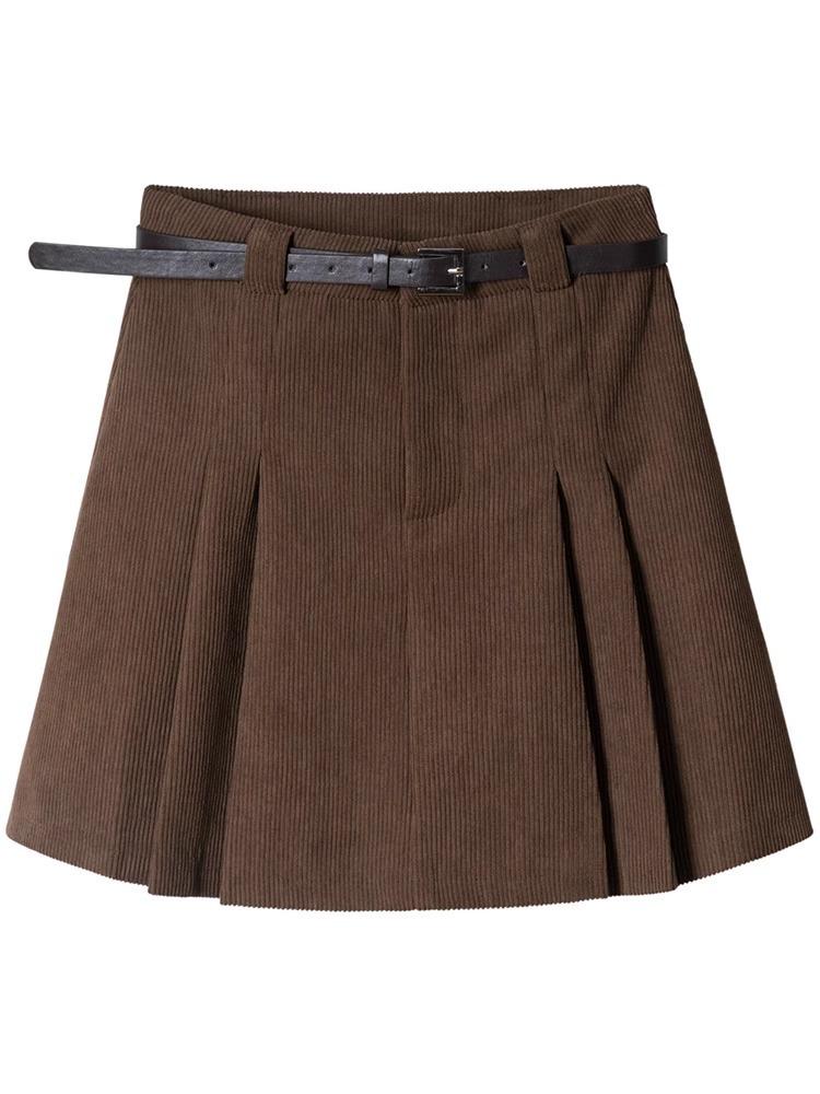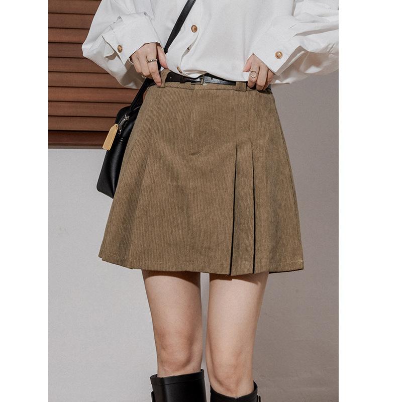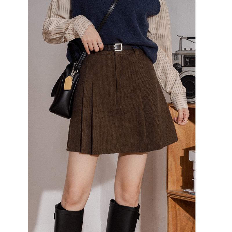 Falda Midi de Pana Negra con Pliegues Falda para Mujer Otoño Invierno Cintura Alta Falda Corta 2025 Nueva Falda Línea A Falda Ajustada