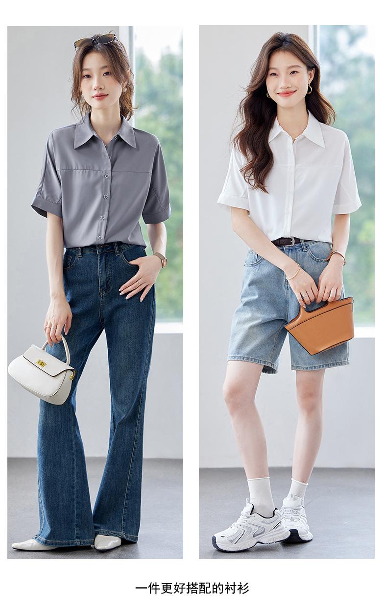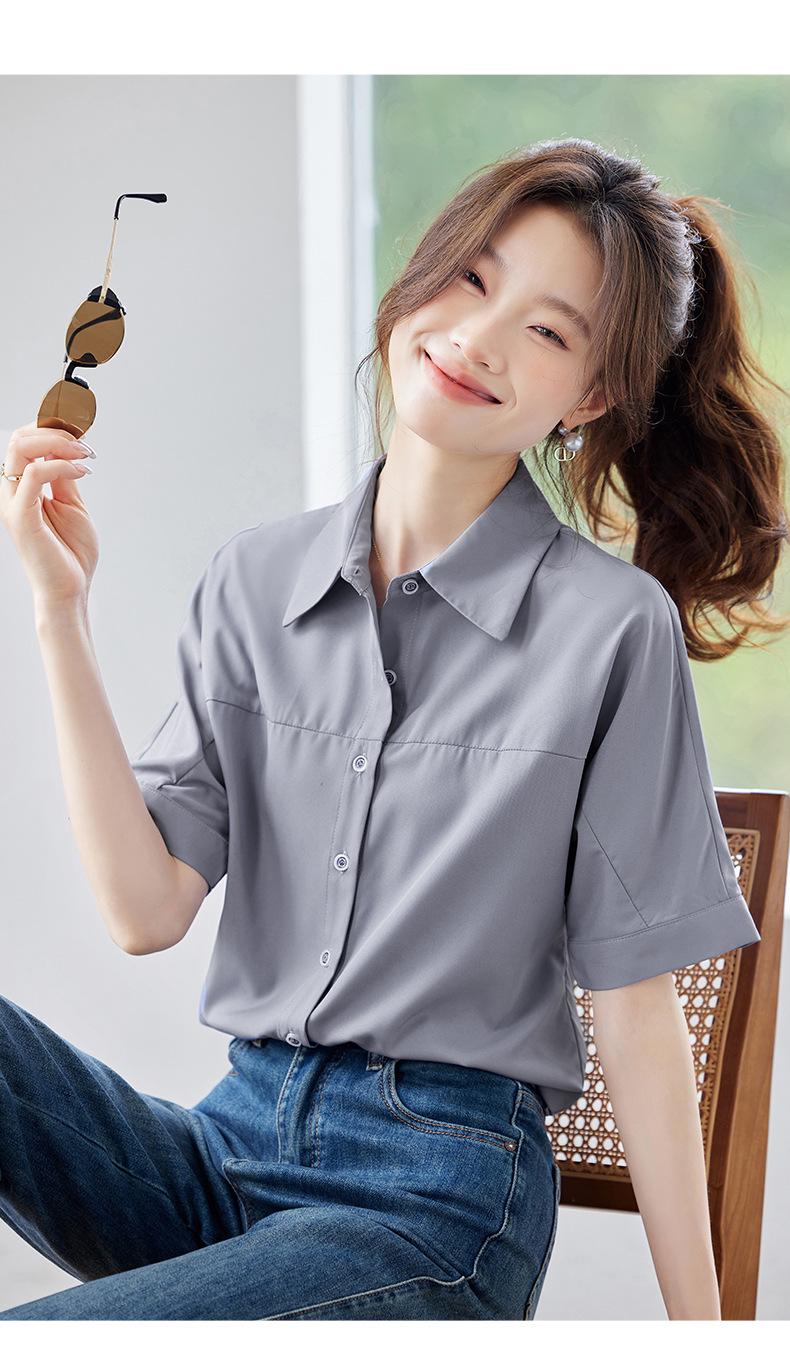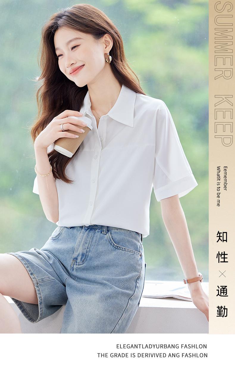 Camisas de Verano de Manga Corta, Camisas de Mujer, Ropa de Verano, Nueva Moda Casual Profesional, Simple Elegante, Tops Adelgazantes para Ropa de Trabajo, Moderno