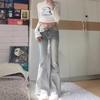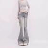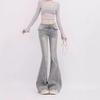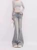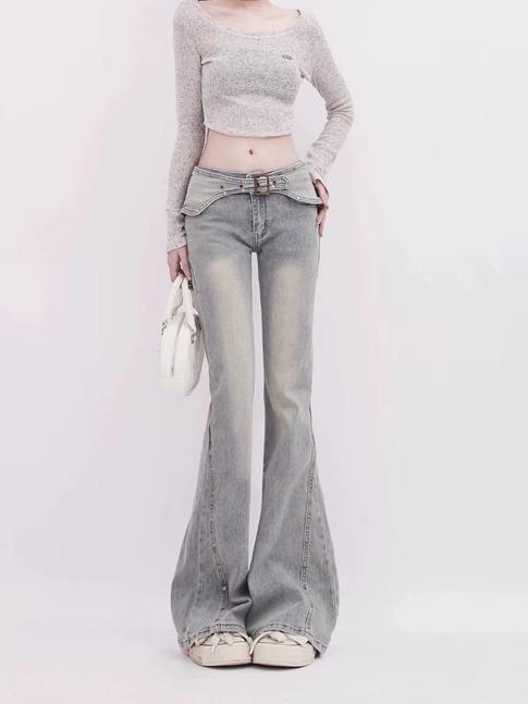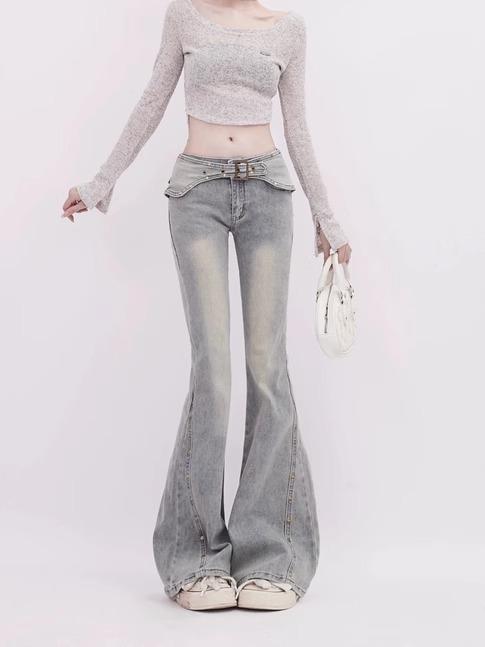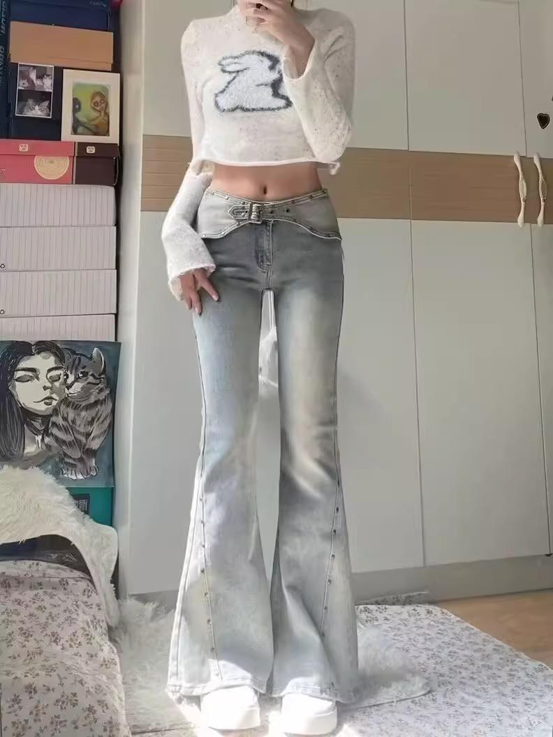 Moda Americana Retro Cinturón de Remaches Jeans Micro Acampanados para Mujer Nuevo Estilo Caliente Chica Caliente Adelgazantes Pantalones Largos