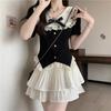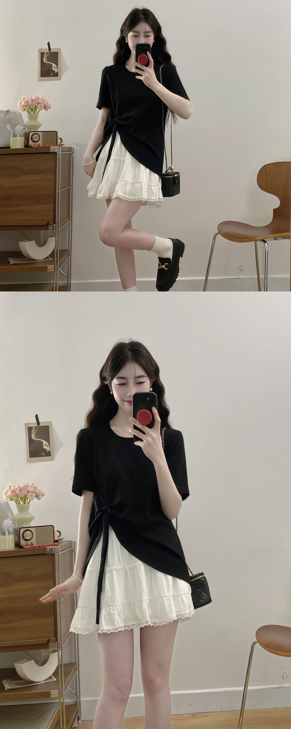 Talla Grande Mujer Verano Nuevo Gordo mm Nuevo Encaje Falda de Pastel Camiseta Holgada Moda Reductora de Edad Traje de Falda