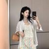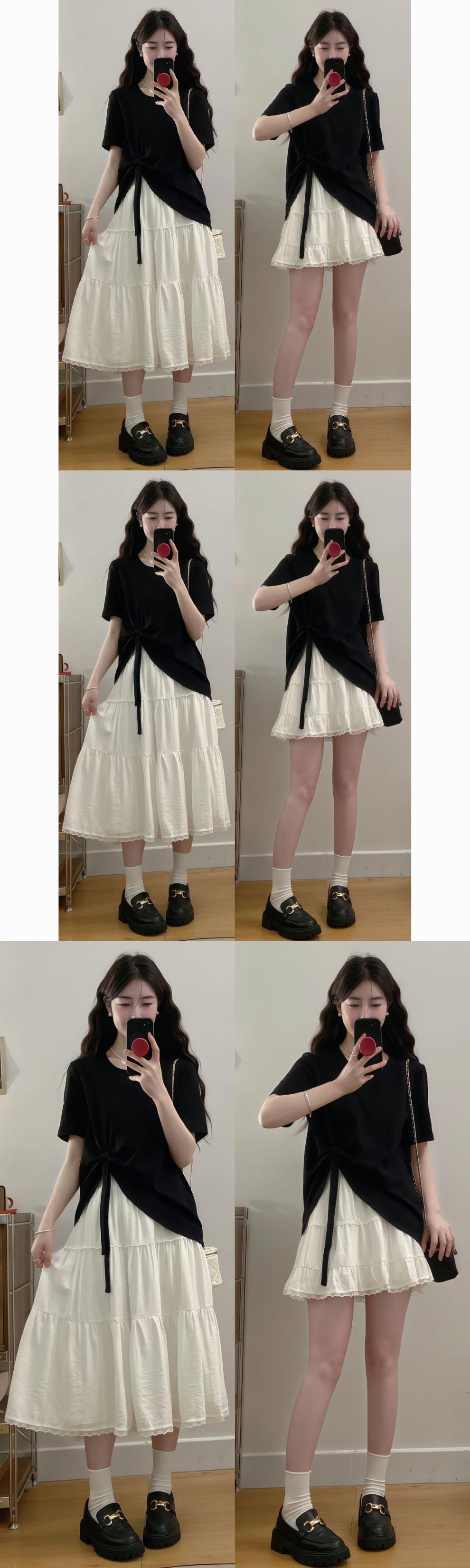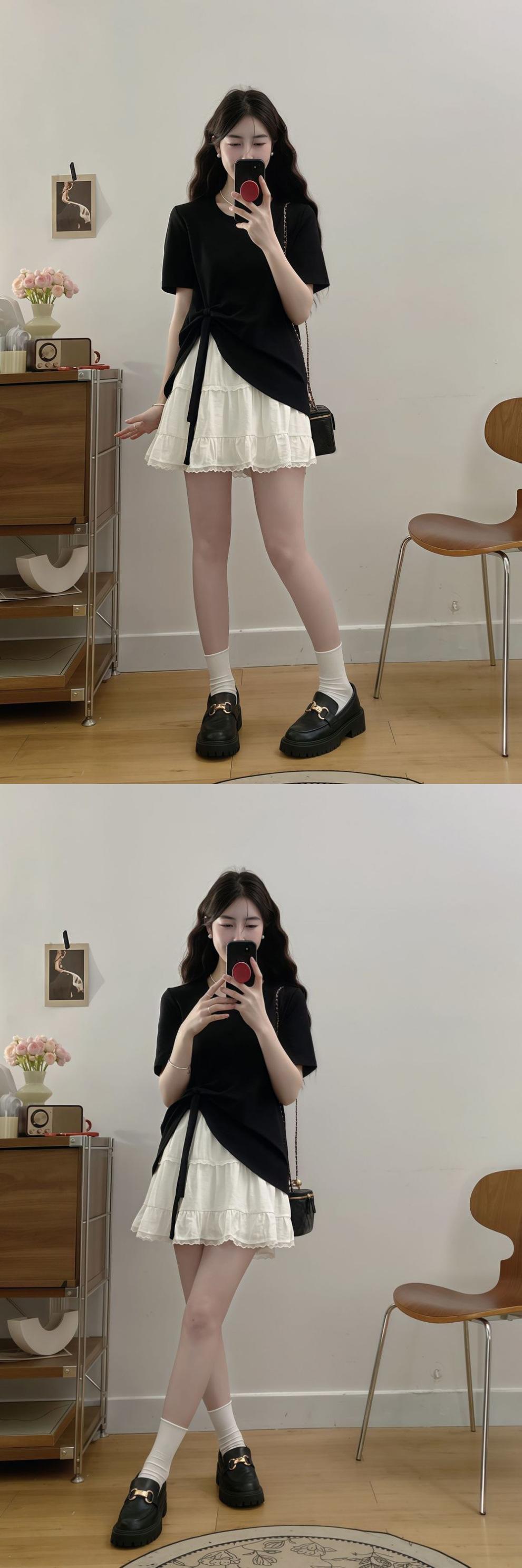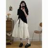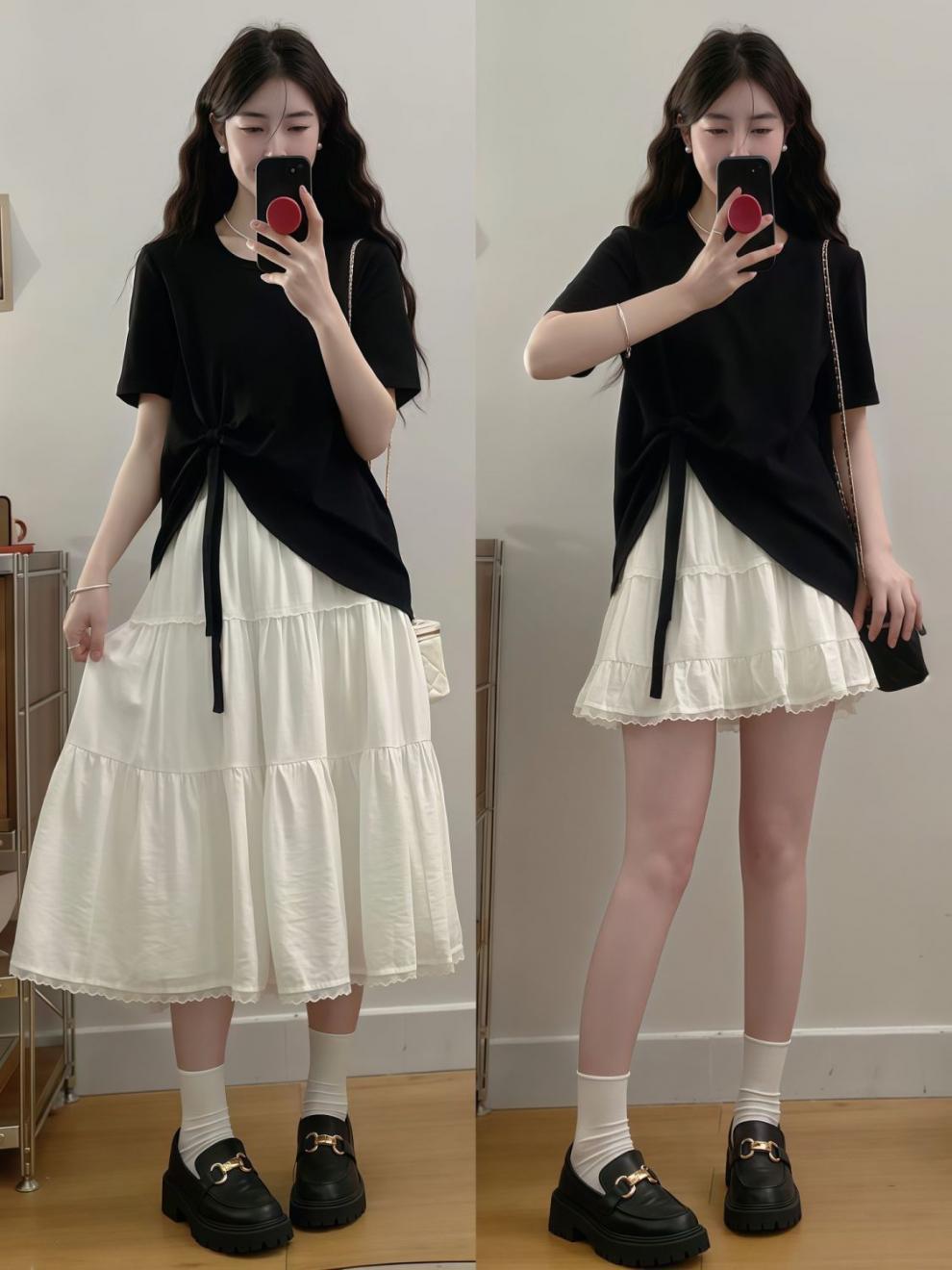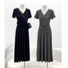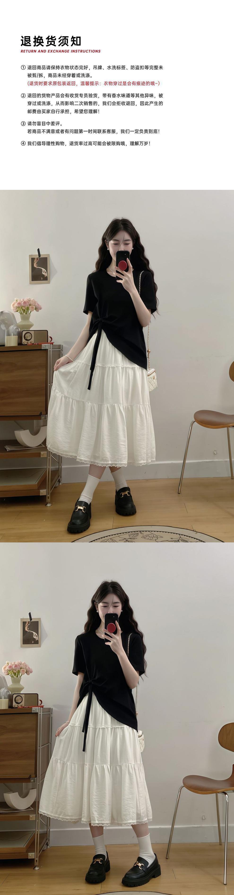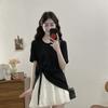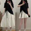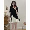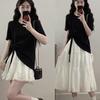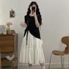 Long skirt suit [two-piece set], Black short sleeves [cotton fabric], Skirt suit [two-piece set]