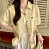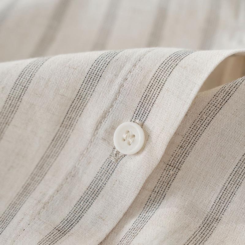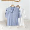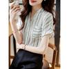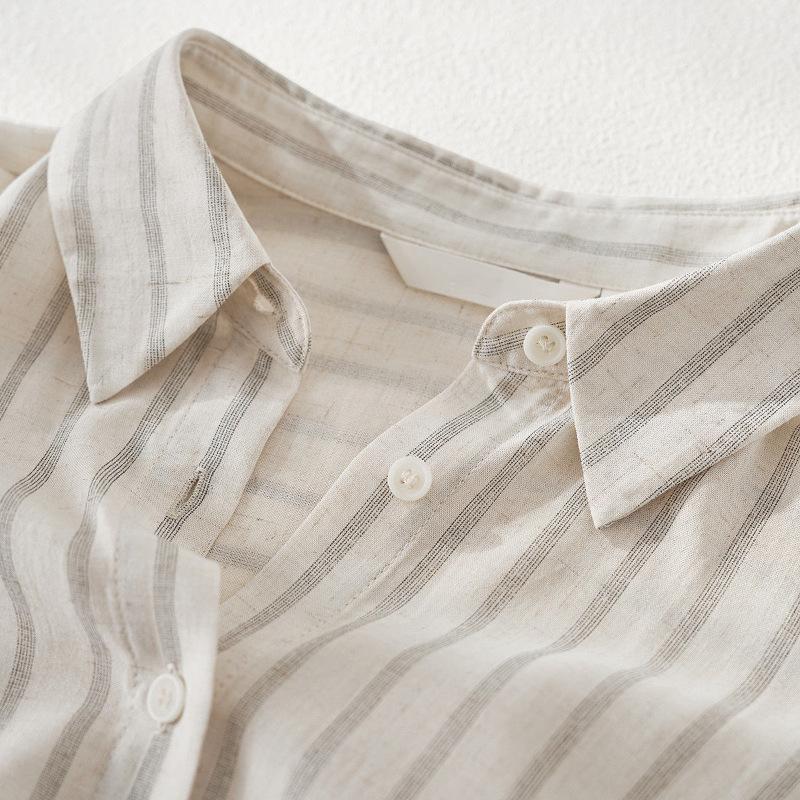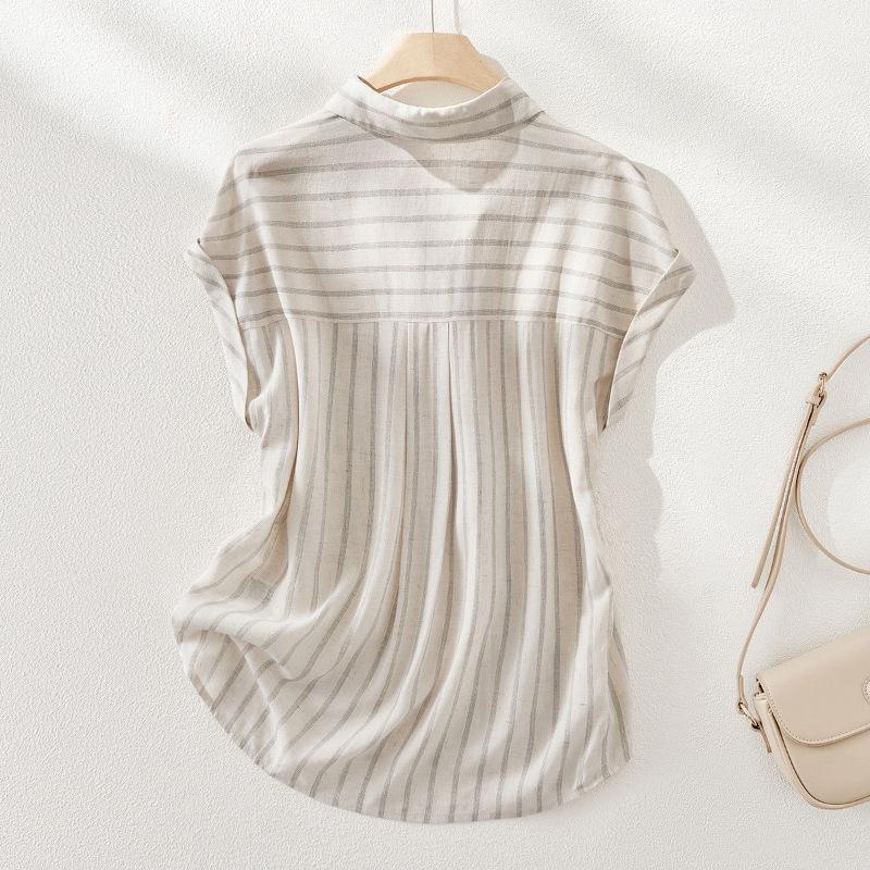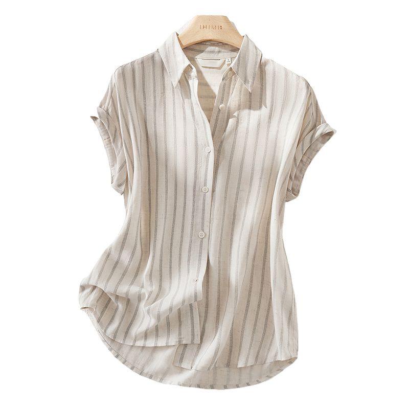 Camisa de Lino a Rayas Simple y Moderna de Manga Corta para Mujer Verano 2025 Nuevo Diseño Sentido Estilo Old Money Casual Adelgazante Top