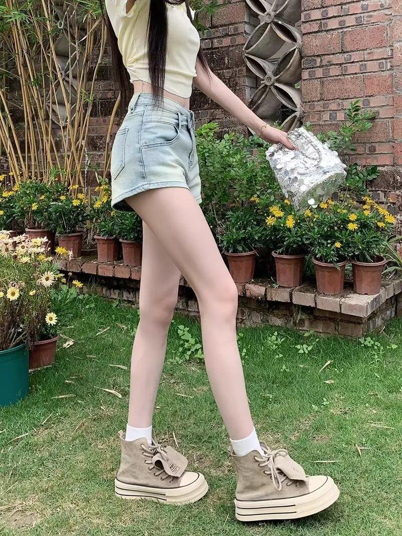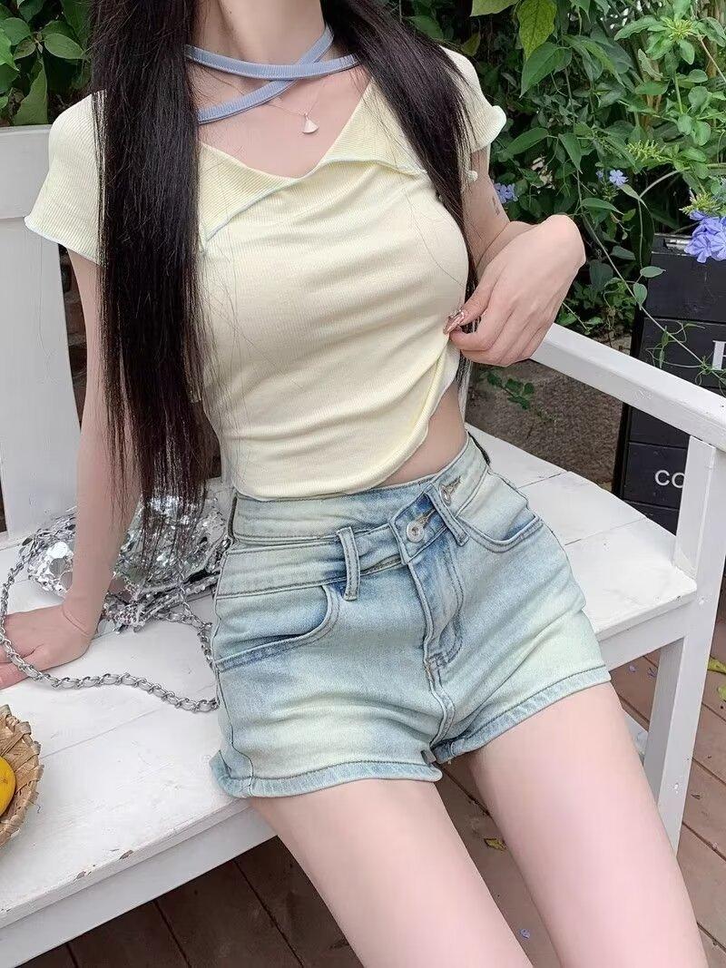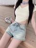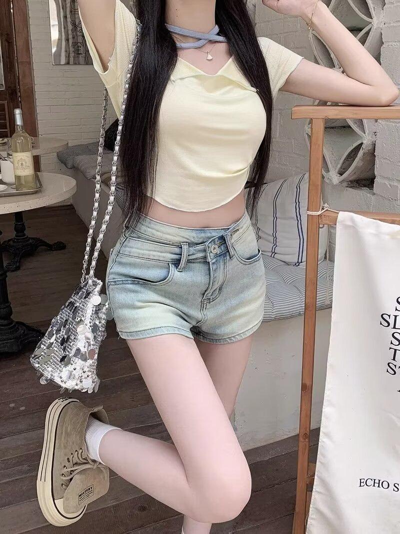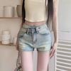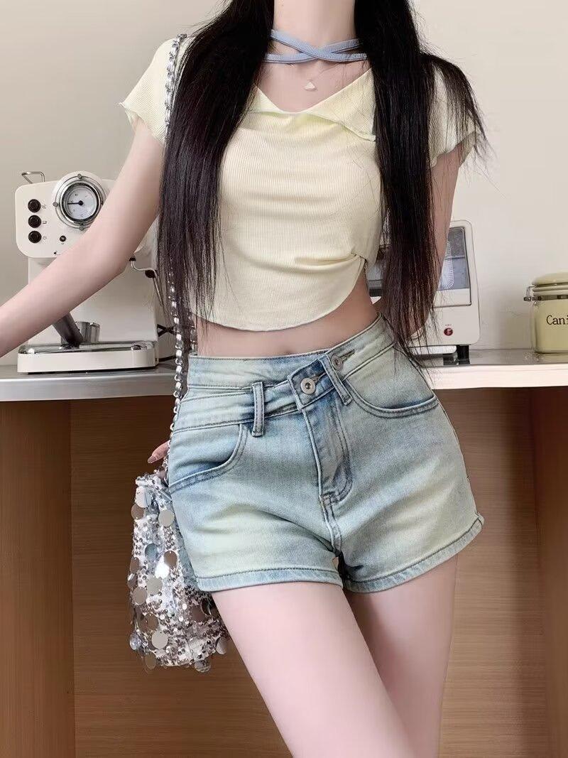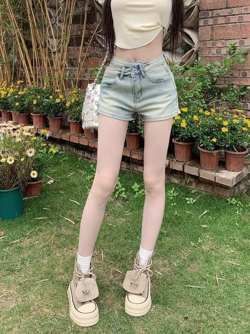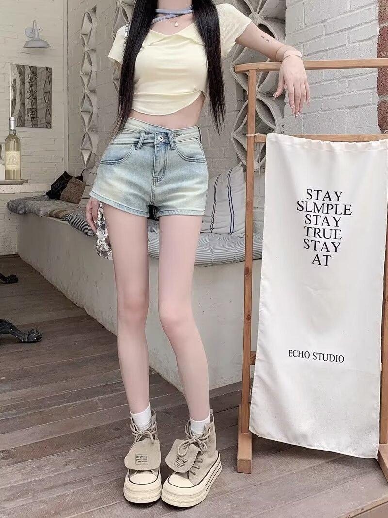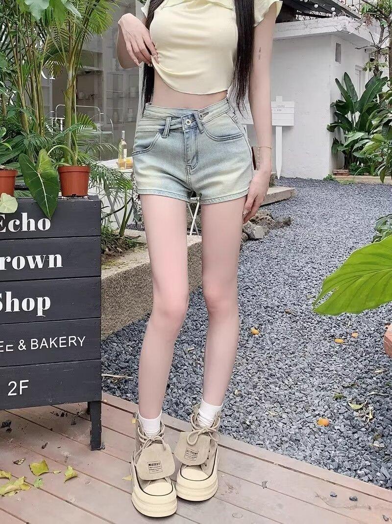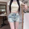 Pantalones cortos vaqueros ajustados lavados de cintura alta de verano con nuevo diseño estilo retro americano 2024