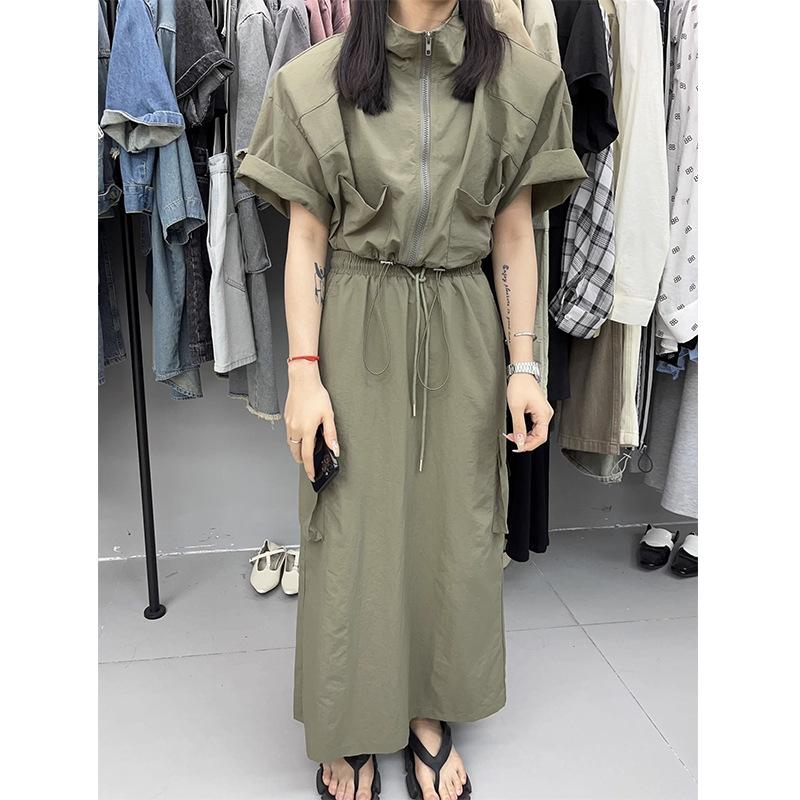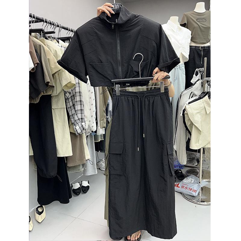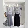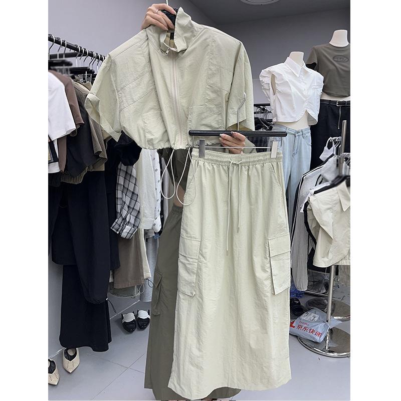 Primavera y Verano 2025 Nuevo Abrigo Corto Dulce y Fresco para Mujer estilo Coreano Top Ropa de Trabajo Vestido Largo Color Sólido Conjunto de Dos Piezas