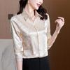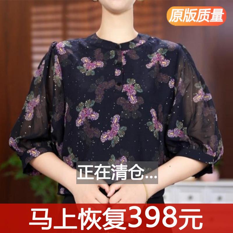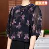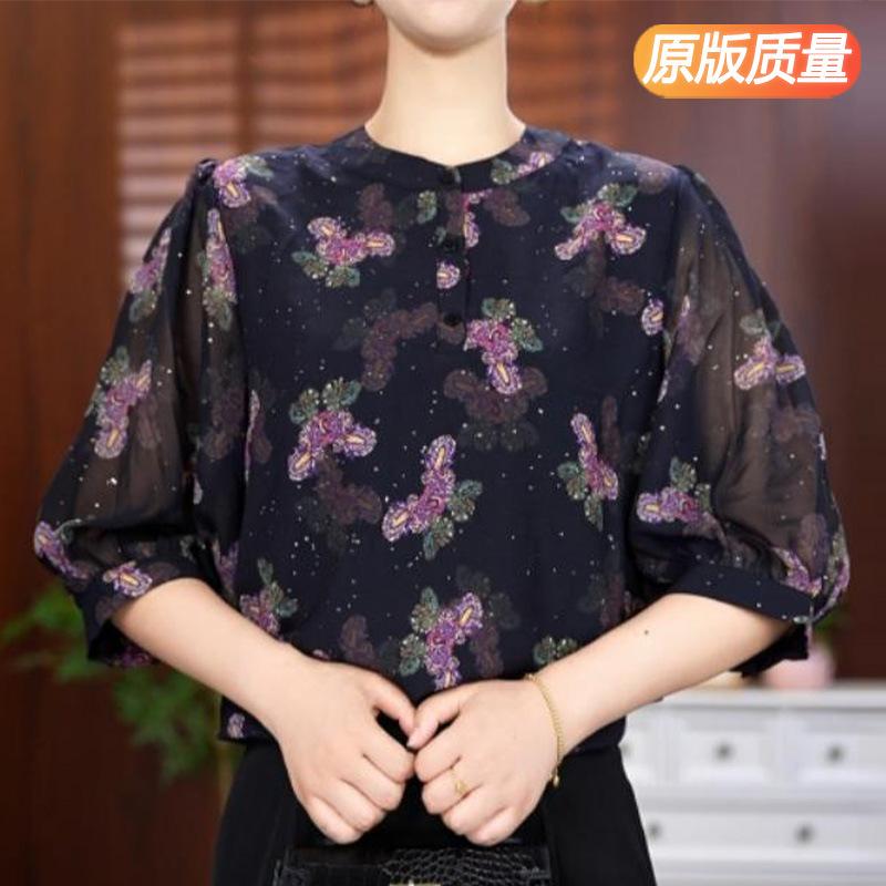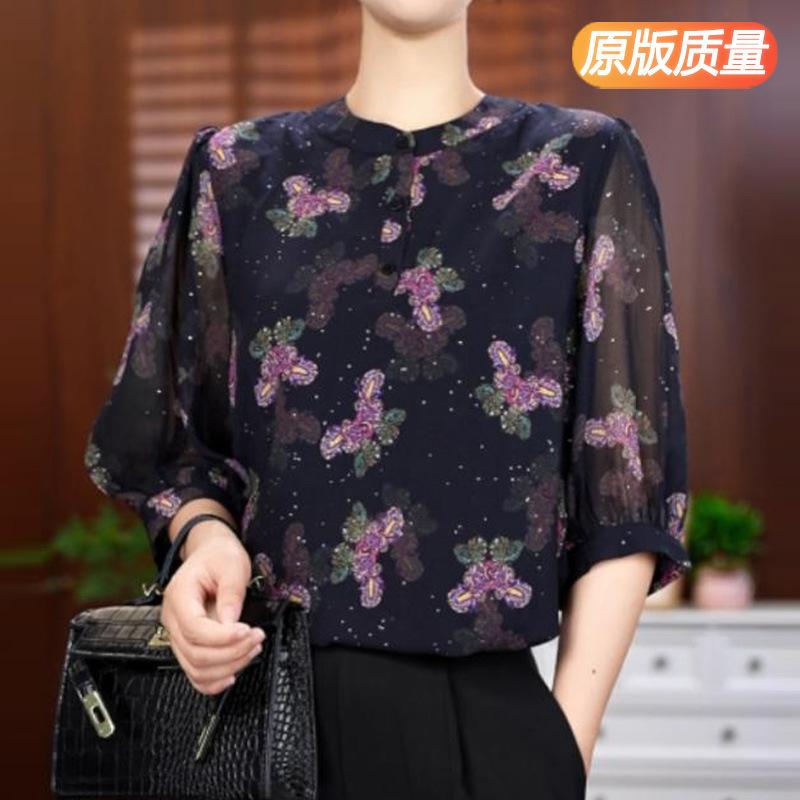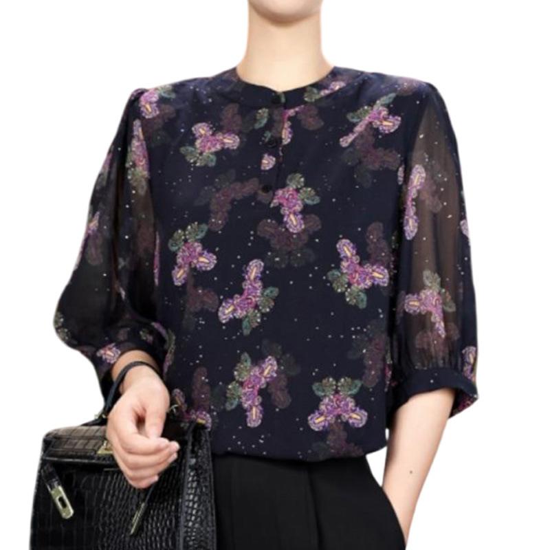 Señora. Blusa de Seda de Morera Moderna y Noble de Kuo para Mujer Verano Nueva Camisa de Seda Floral Manga Tres Cuartos Camisa de Gasa