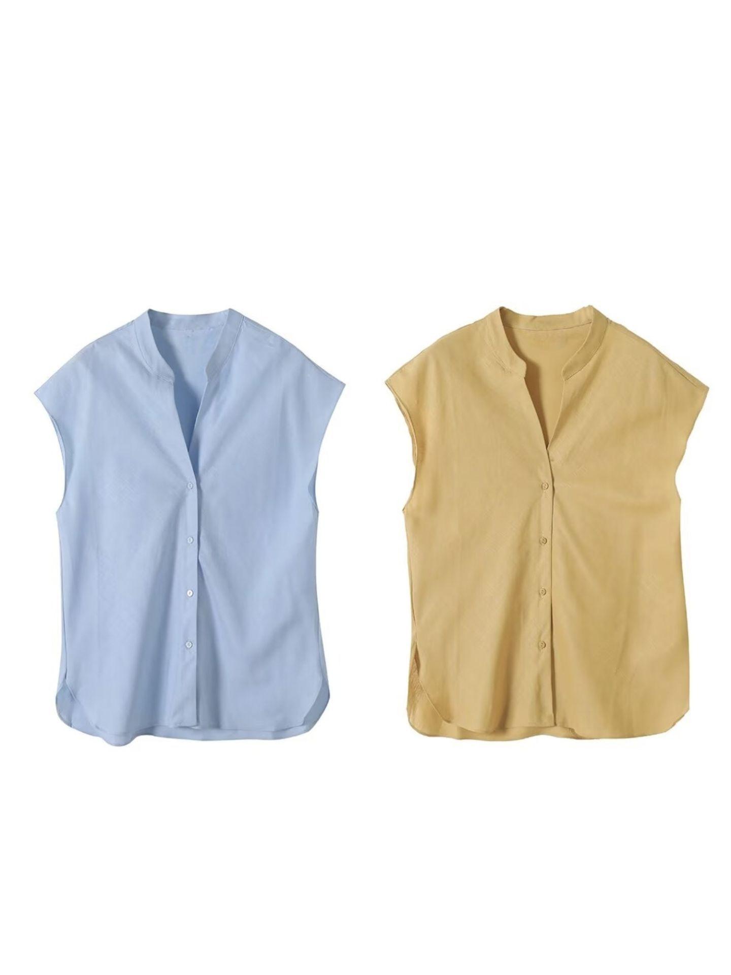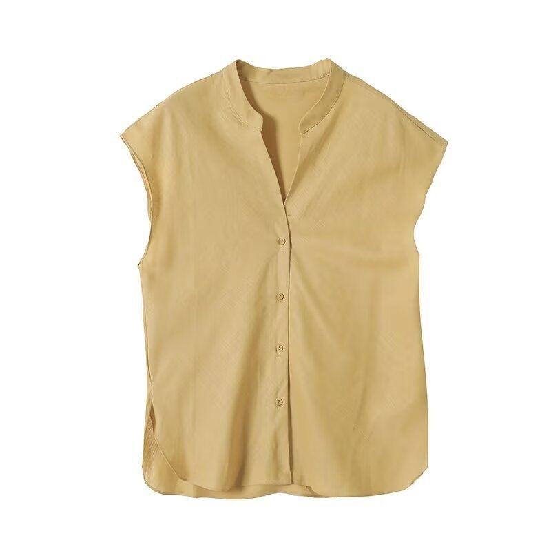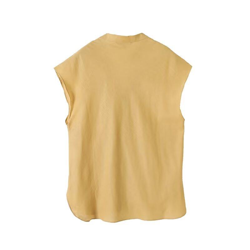 Ropa de Mujer Europea y Americana Transfronteriza 2025 Verano Nuevo Moda Urbana Estilo Retro Sin Mangas Pecho Sencillo Camisa Casual