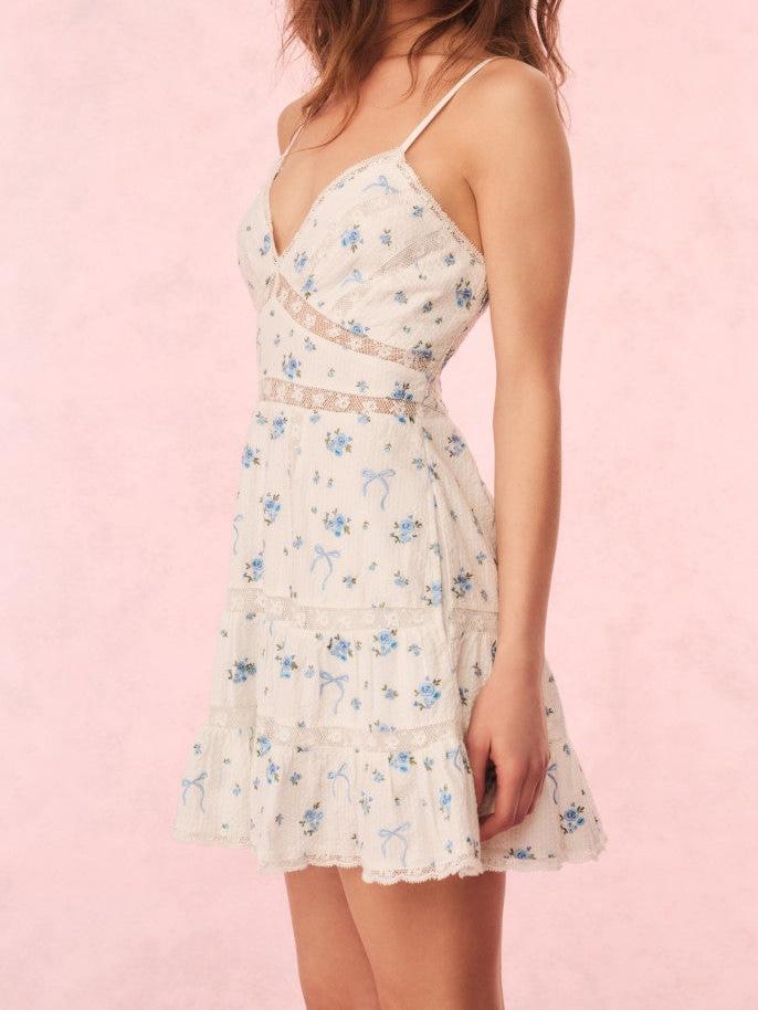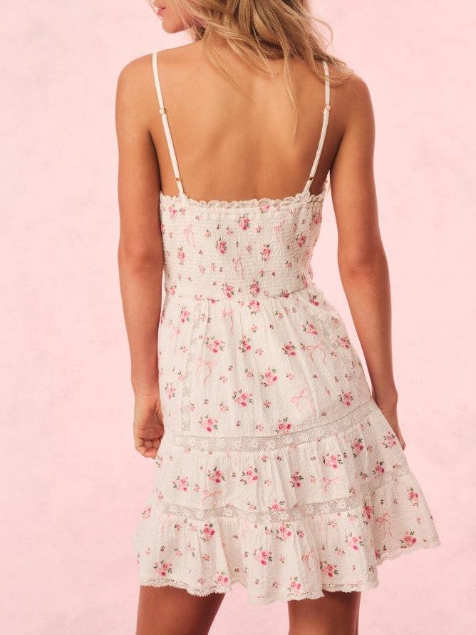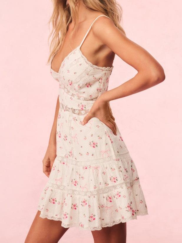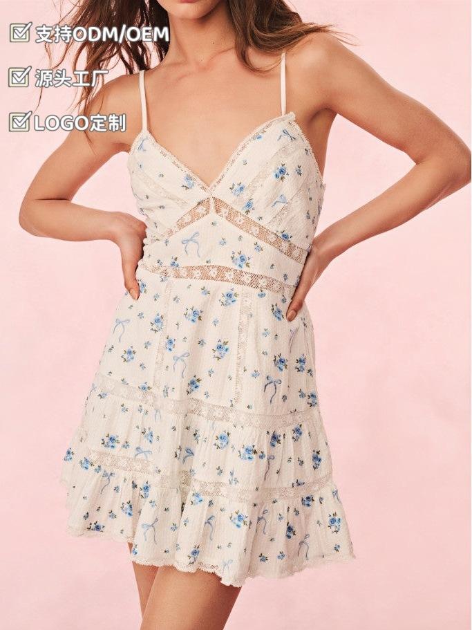 Vestido Europeo y Americano de Encaje con Tirantes para Mujer Verano Casual de Alta Gama Falda Vacacional Estampado Floral Sexy Falda Corta Estilo Francés