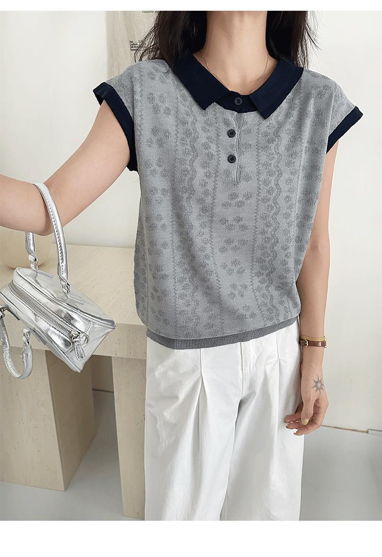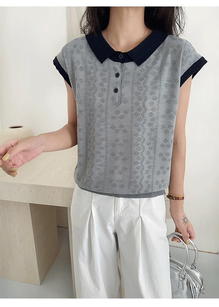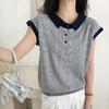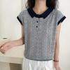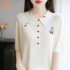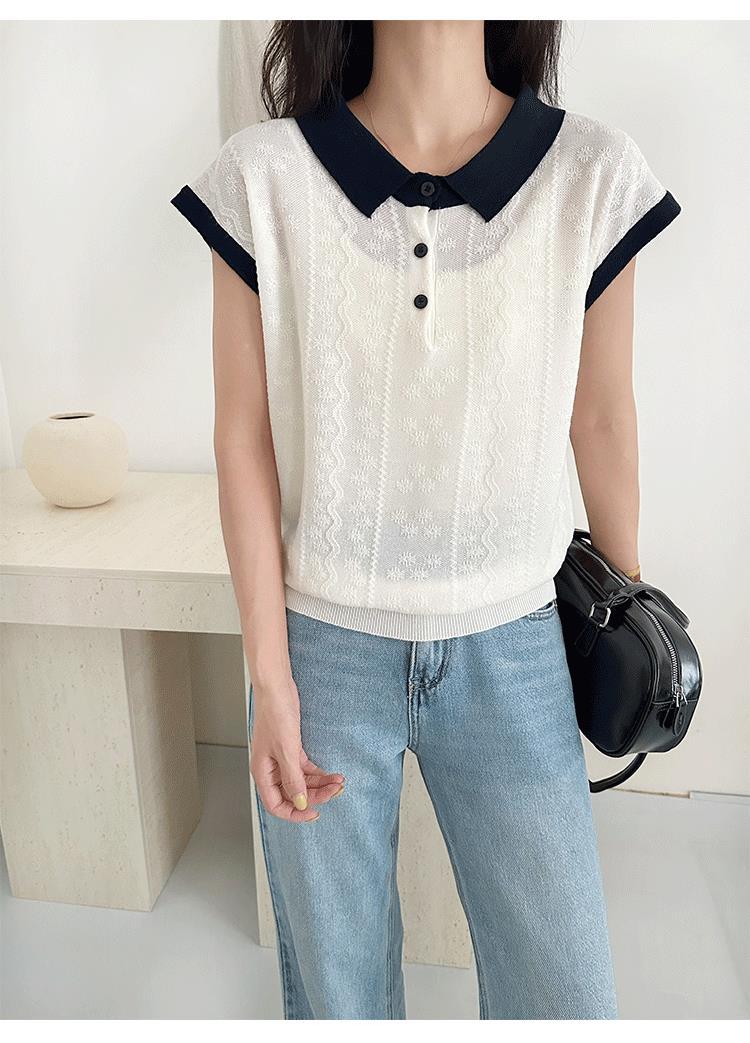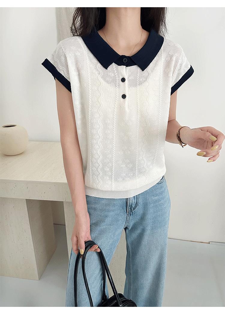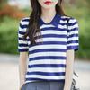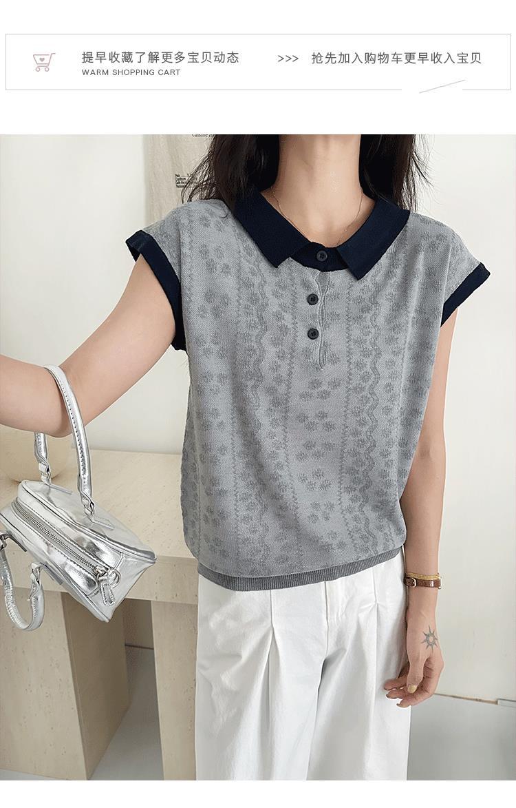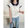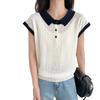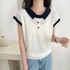 Camiseta de Punto de Manga Corta con Cuello Polo para Mujer 2025 Nuevo Verano Delgada Estilo Coreano Holgada Moda Top Básico