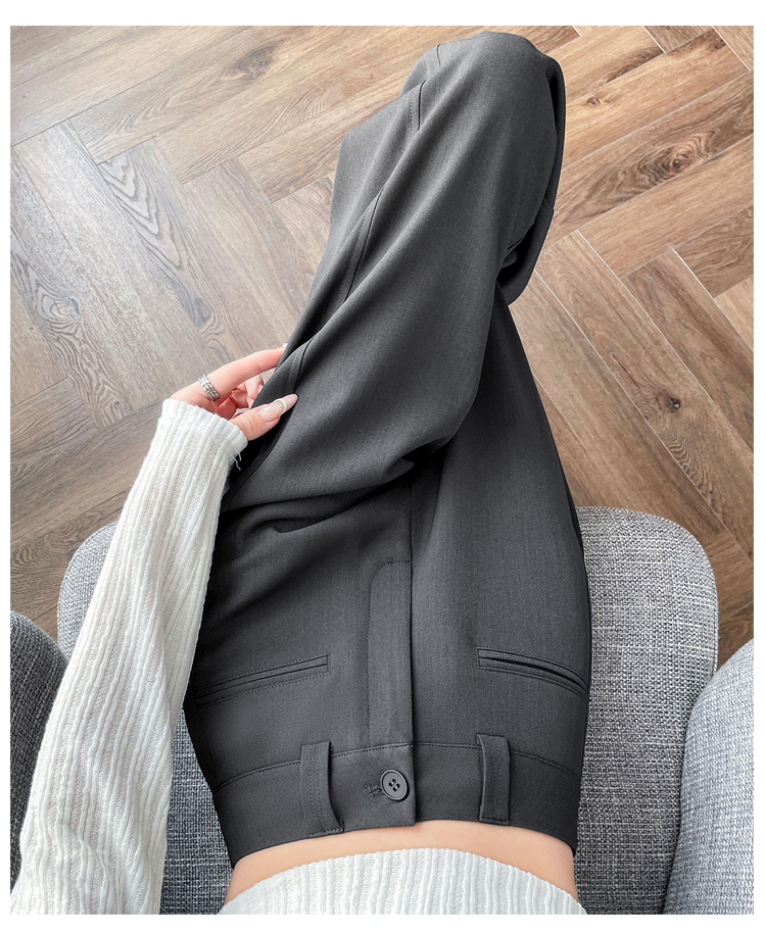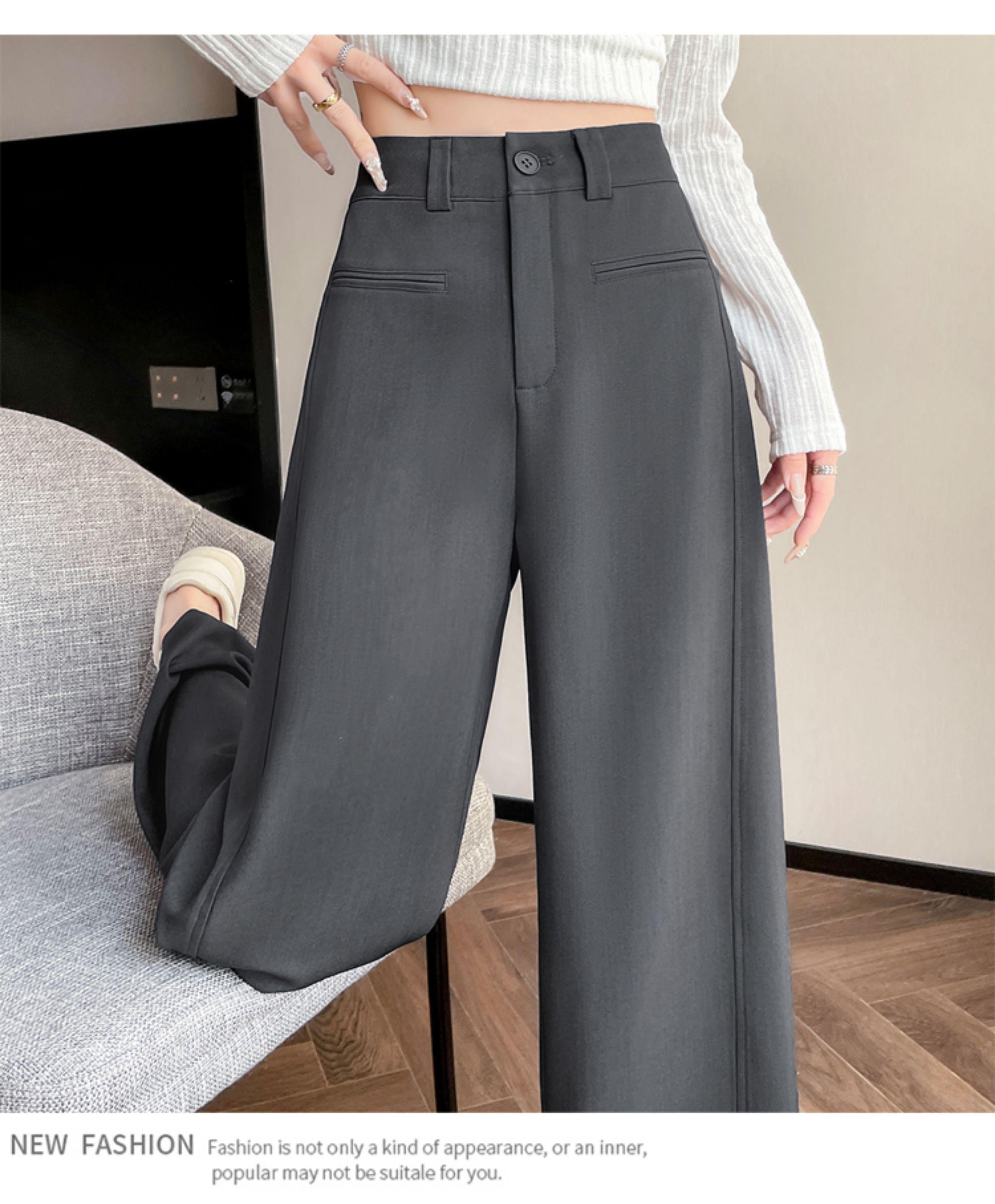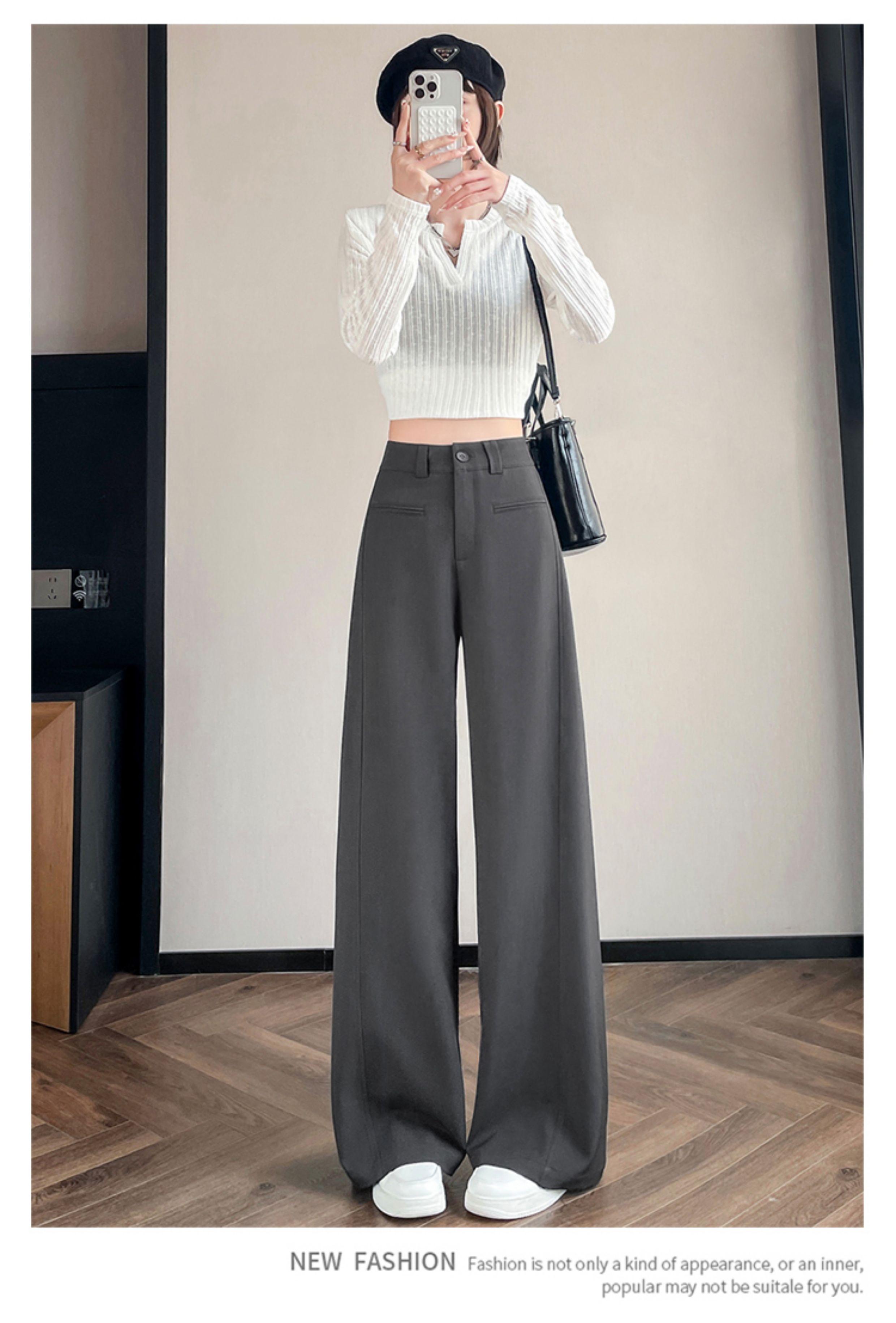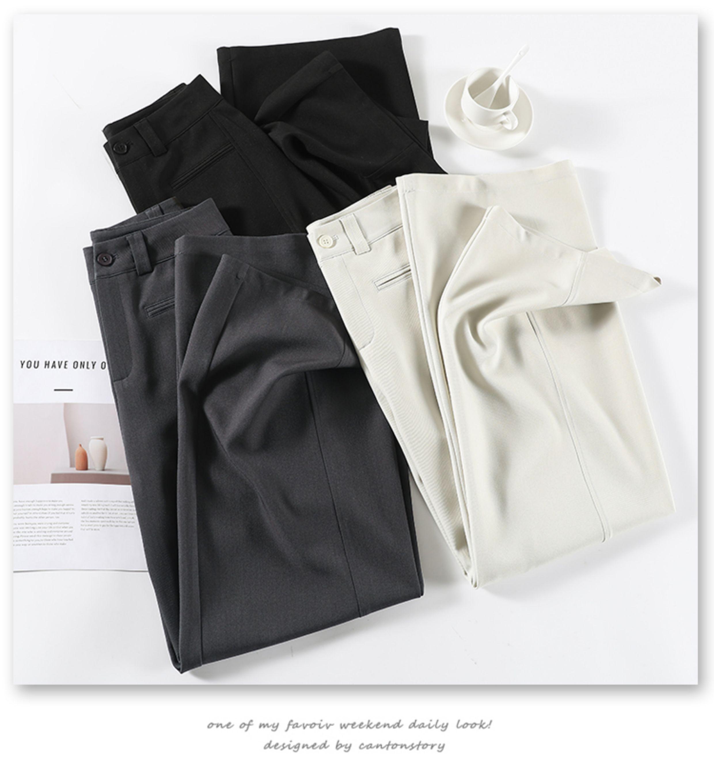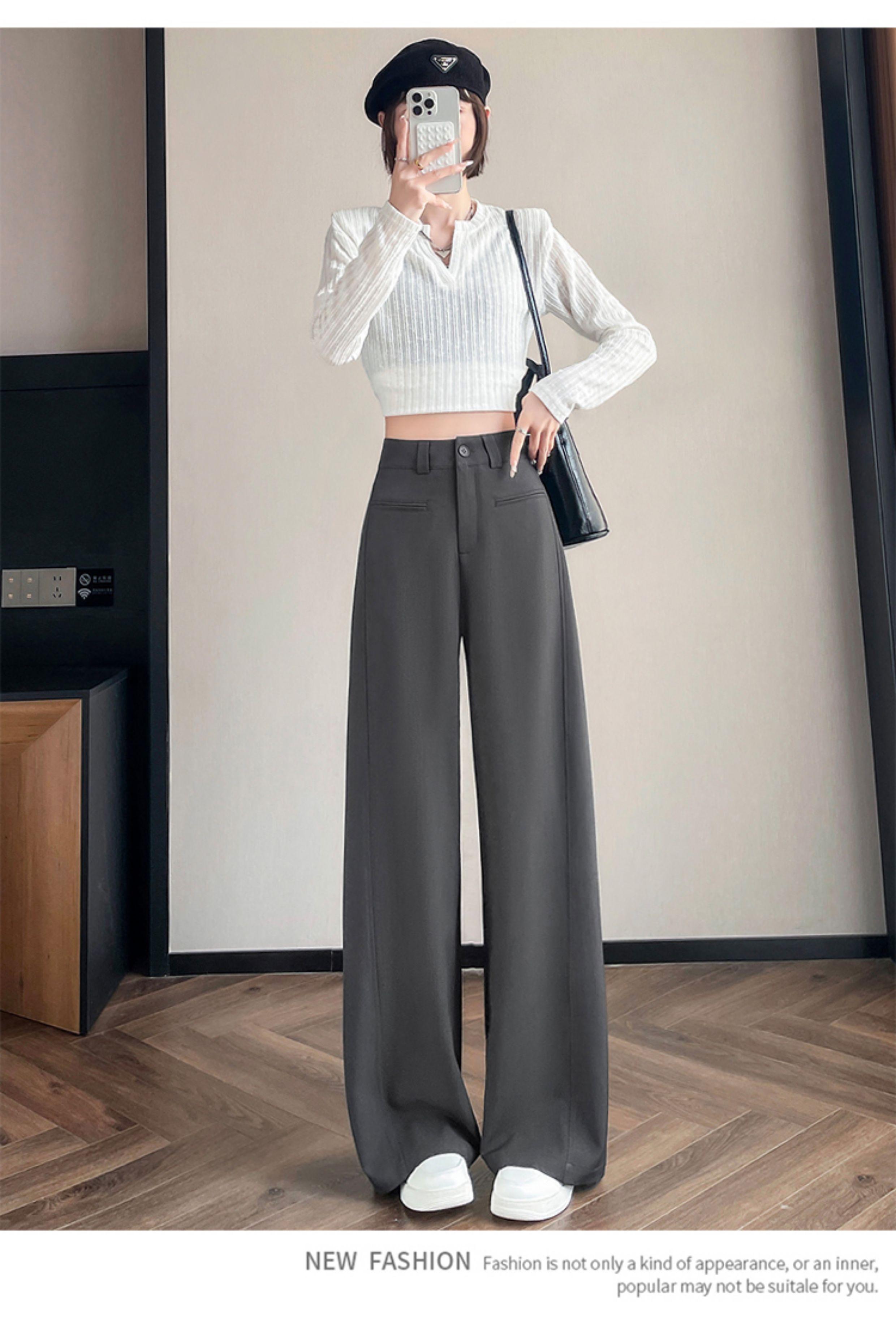 Pantalones de Traje Slim-Fit Grises para Mujer, Nuevo Estilo Primavera/Verano 2025, Caída de Alta Gama, Pierna Recta, Pantalones de Pierna Ancha hasta el Piso