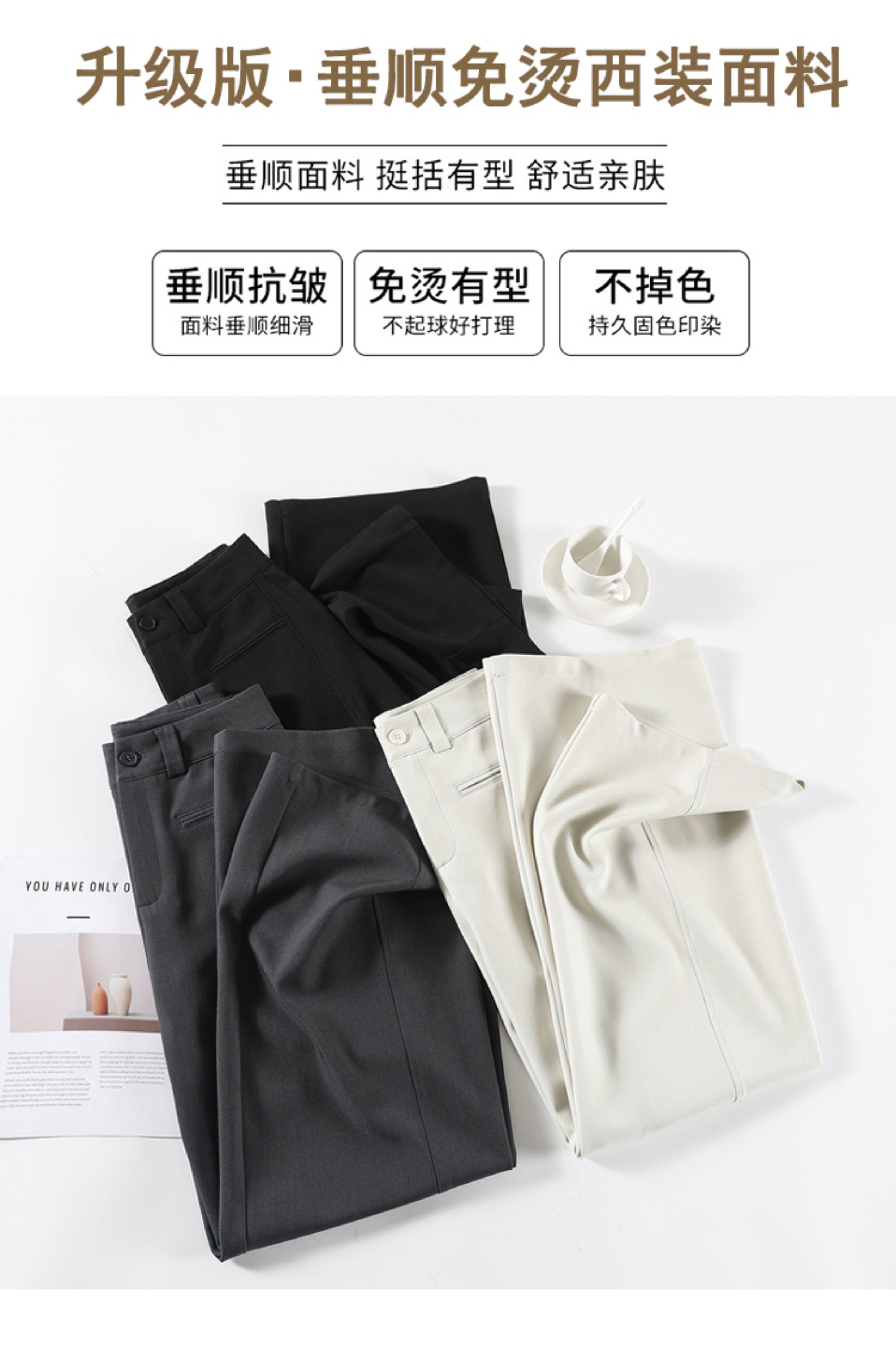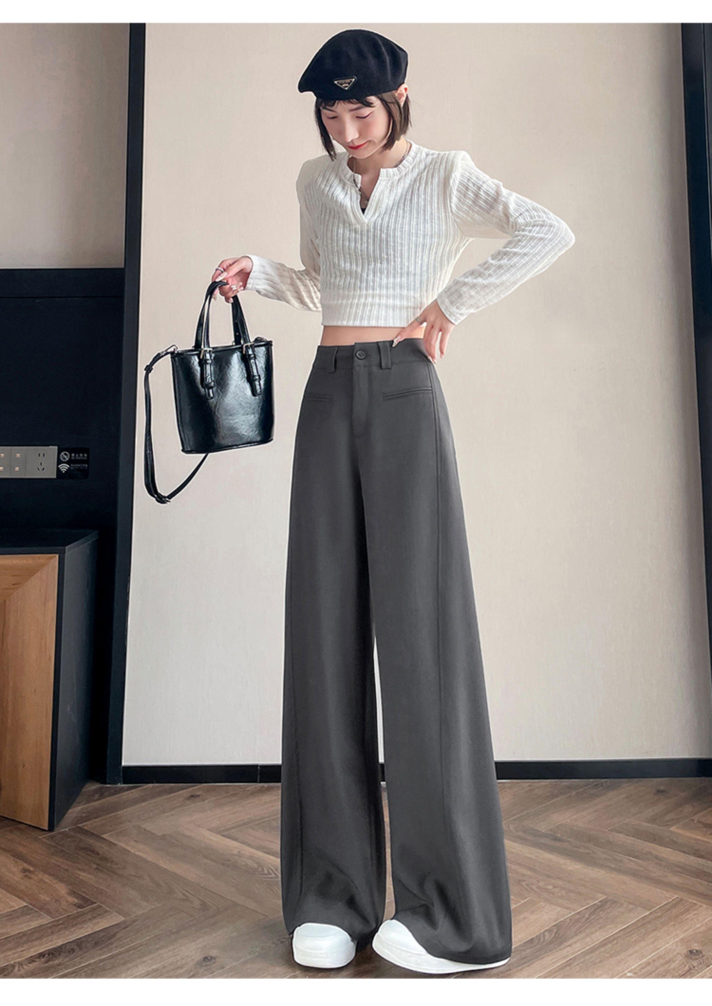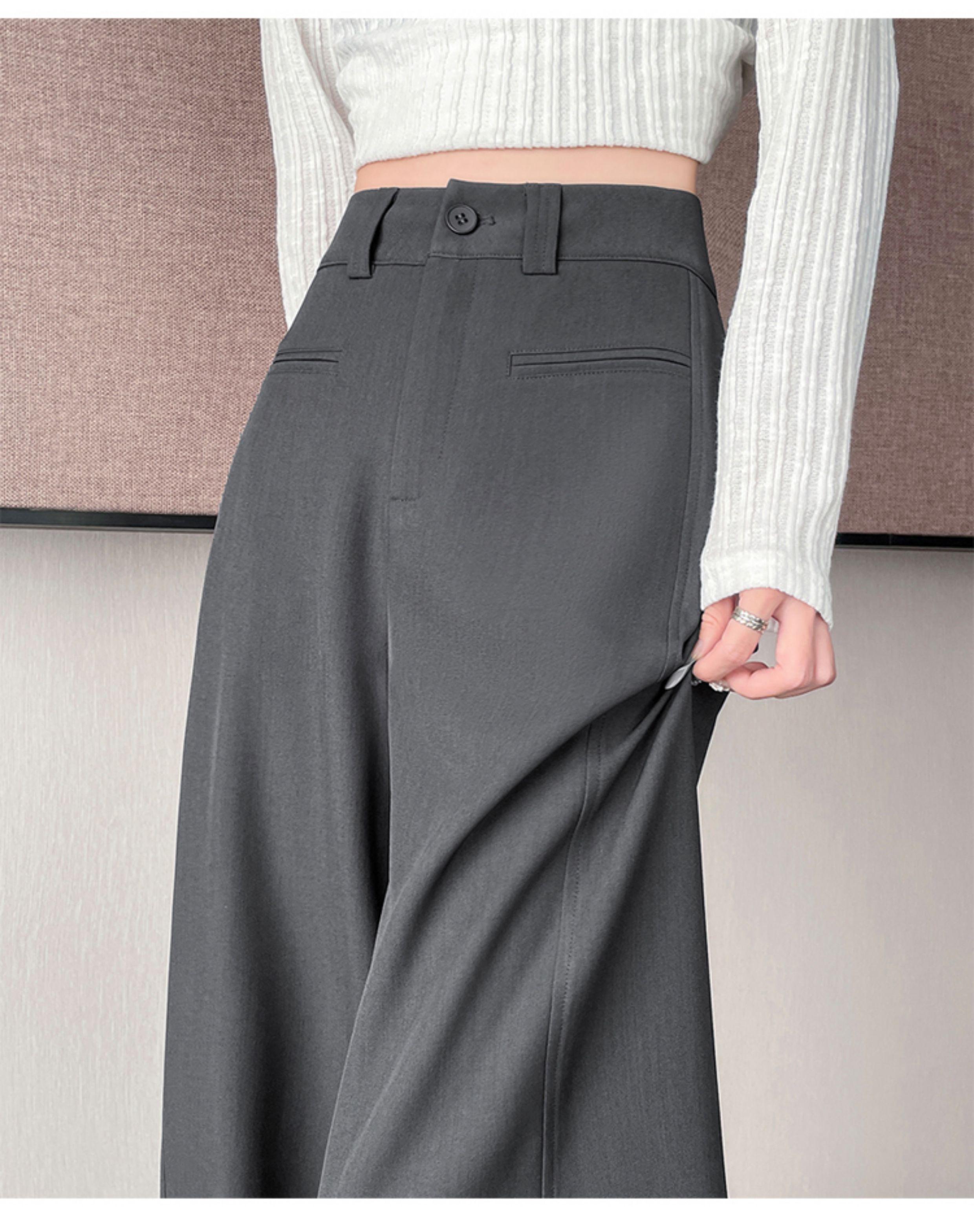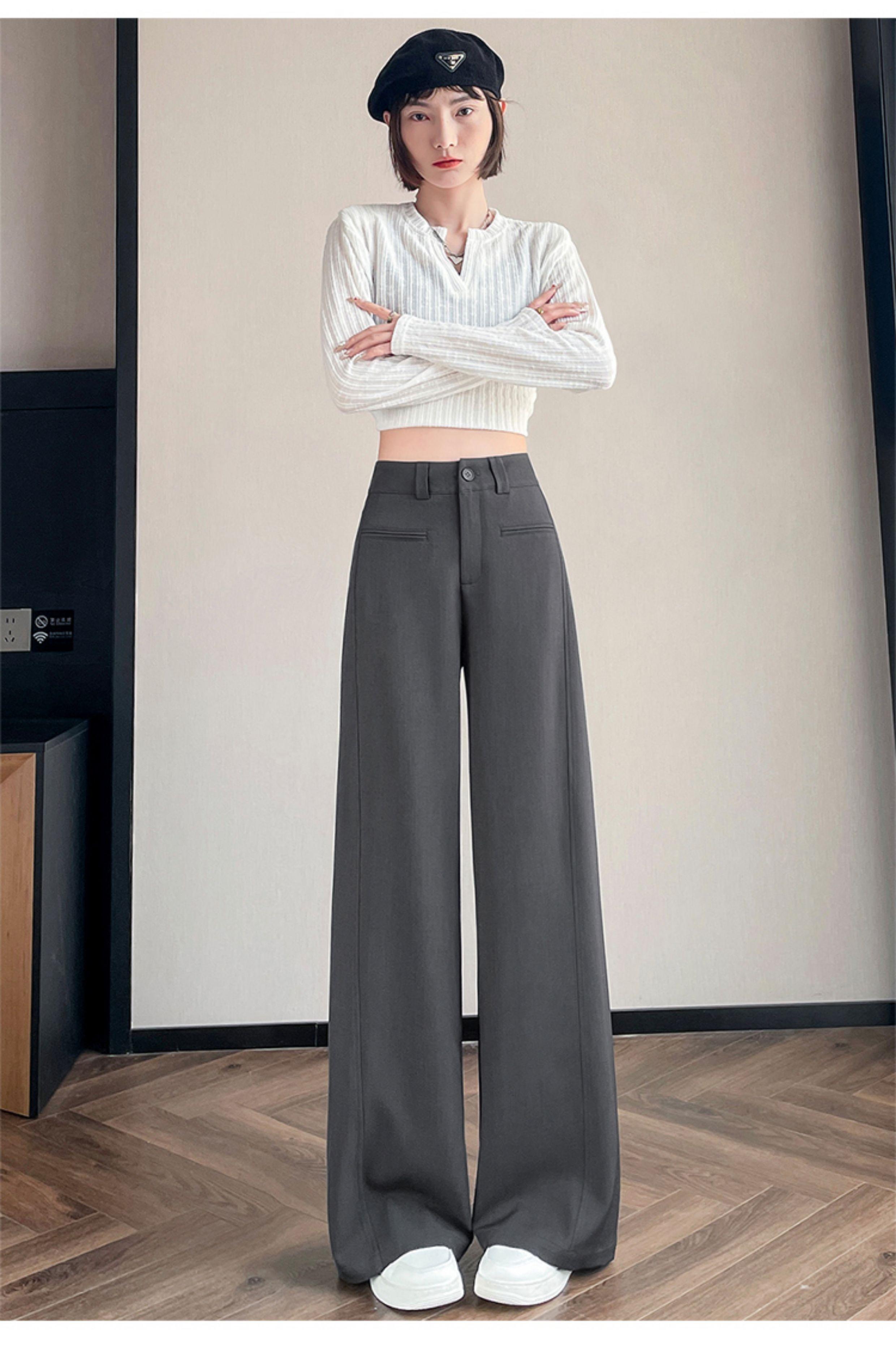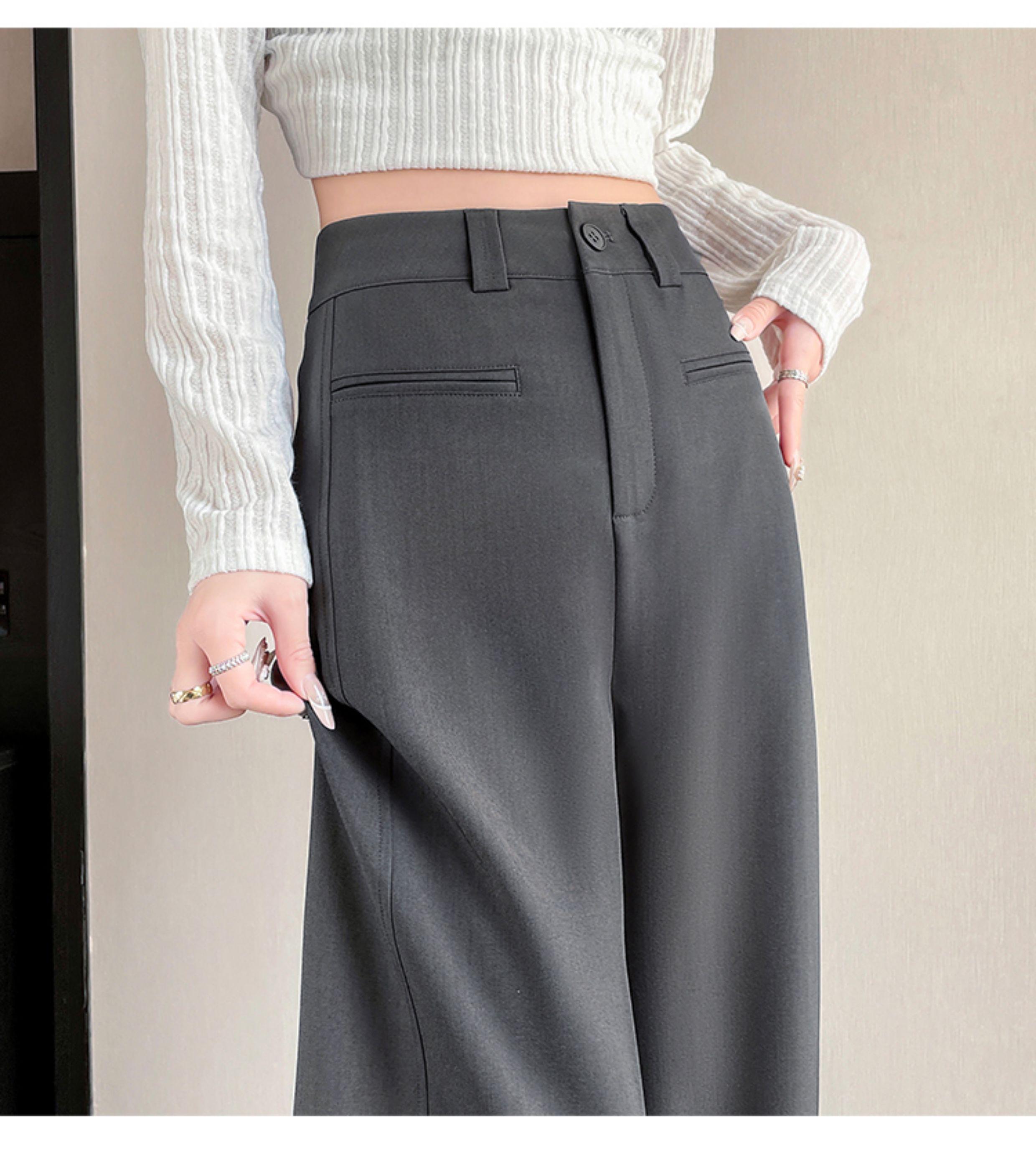 Pantalones de Traje Slim-Fit Grises para Mujer, Nuevo Estilo Primavera/Verano 2025, Caída de Alta Gama, Pierna Recta, Pantalones de Pierna Ancha hasta el Piso