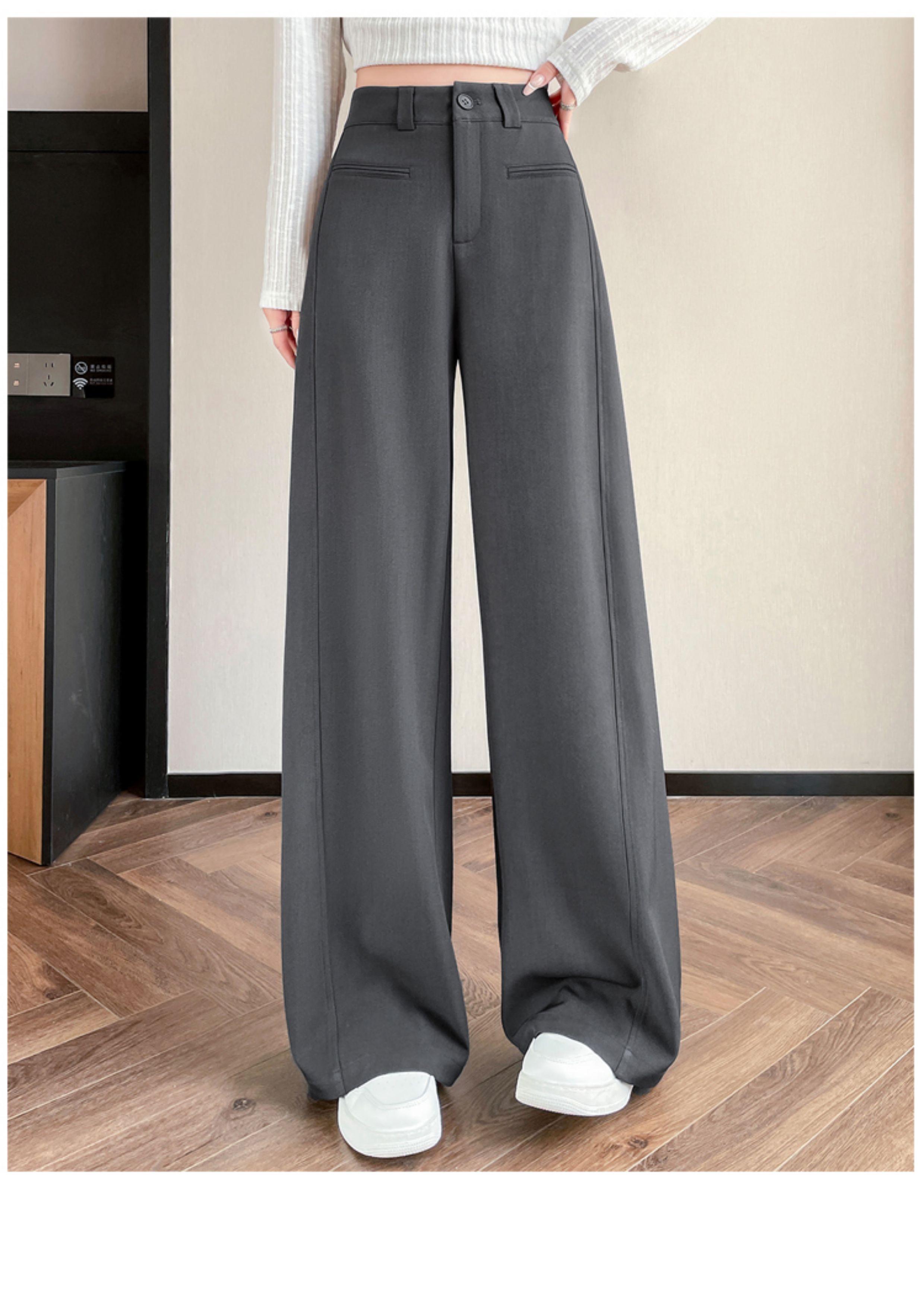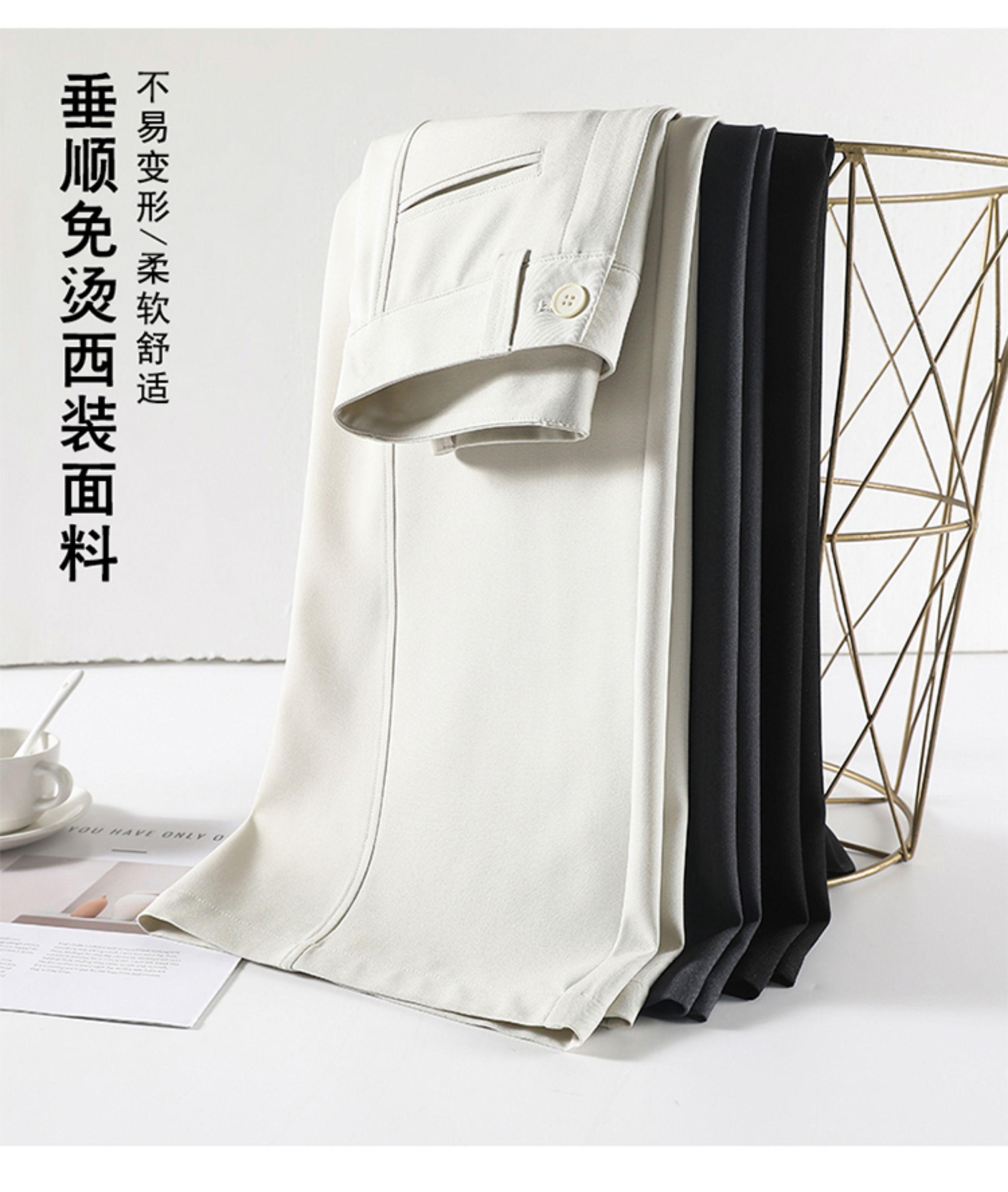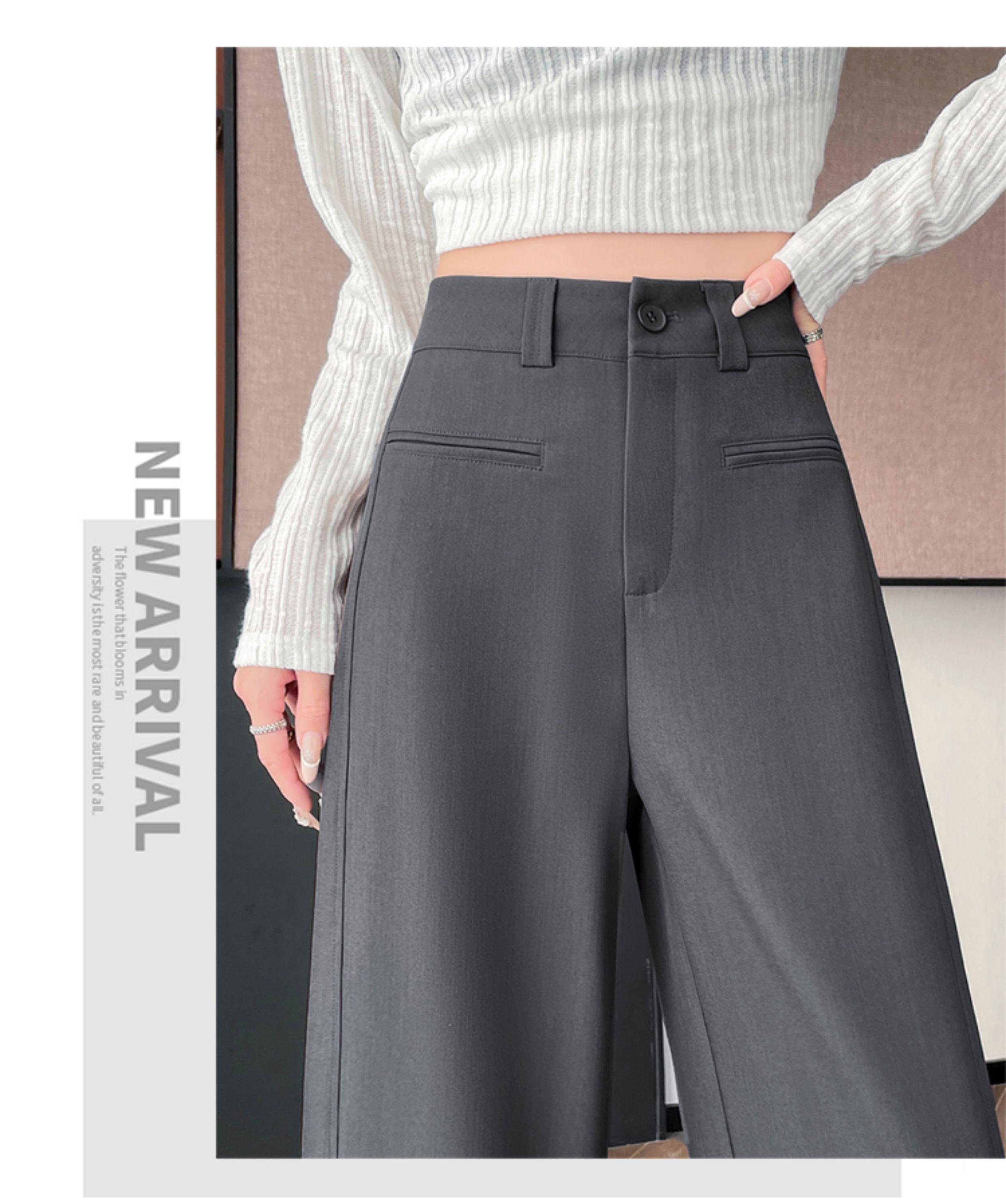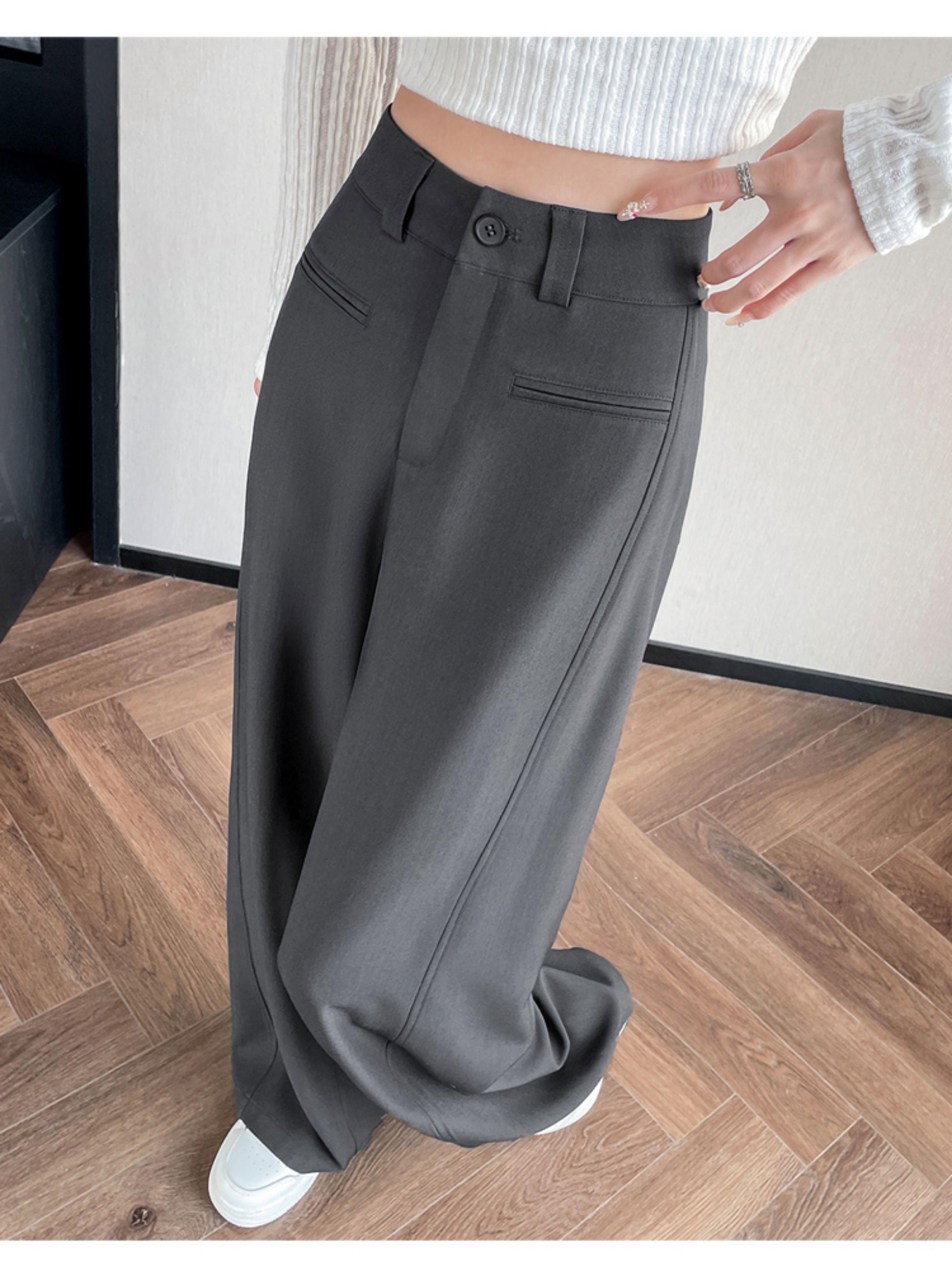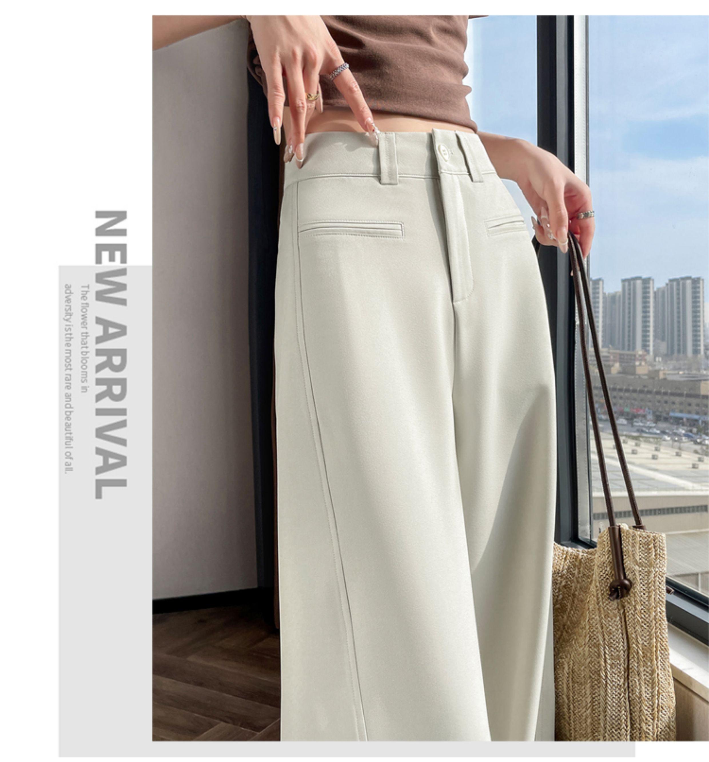 Pantalones de Traje Slim-Fit Grises para Mujer, Nuevo Estilo Primavera/Verano 2025, Caída de Alta Gama, Pierna Recta, Pantalones de Pierna Ancha hasta el Piso