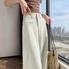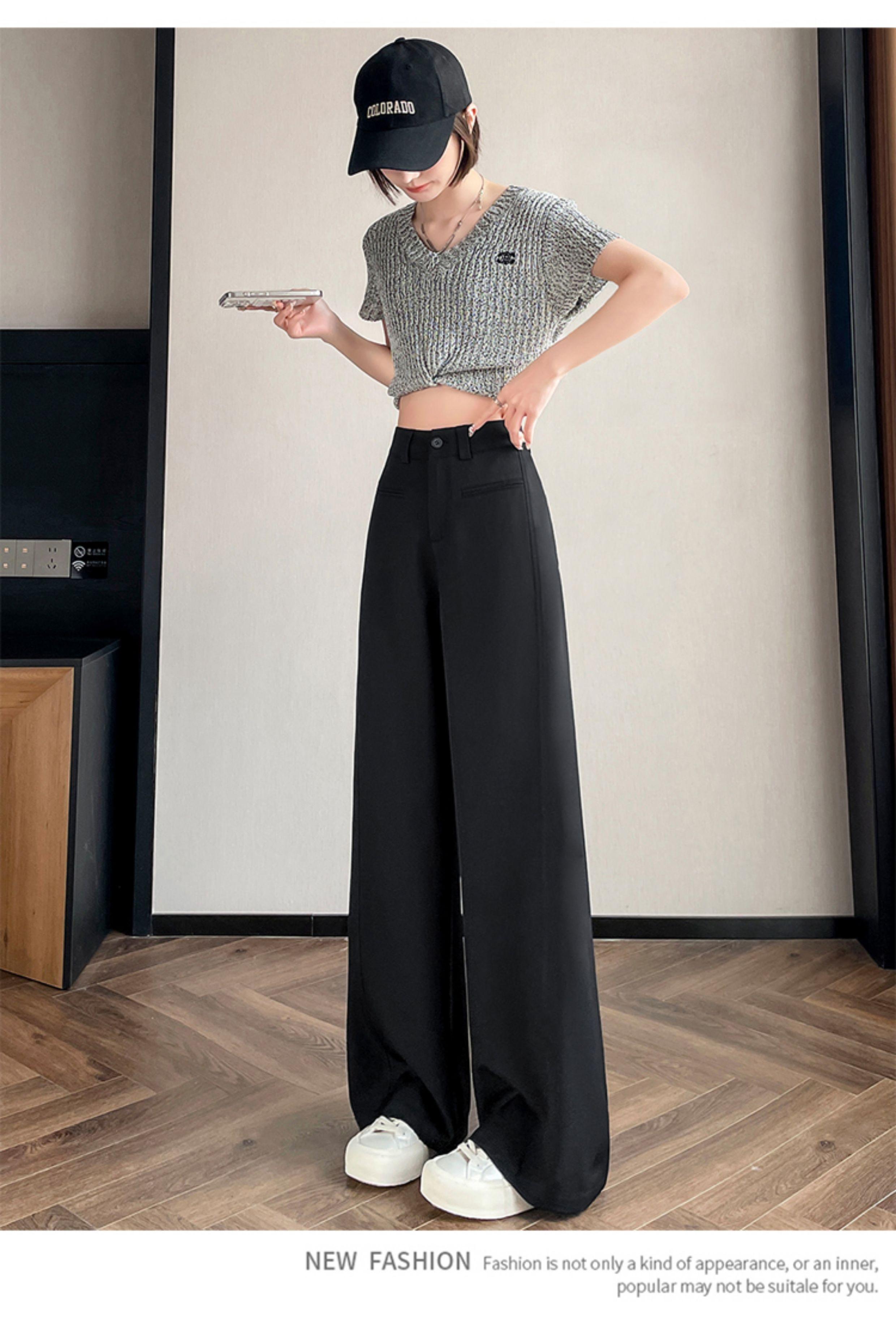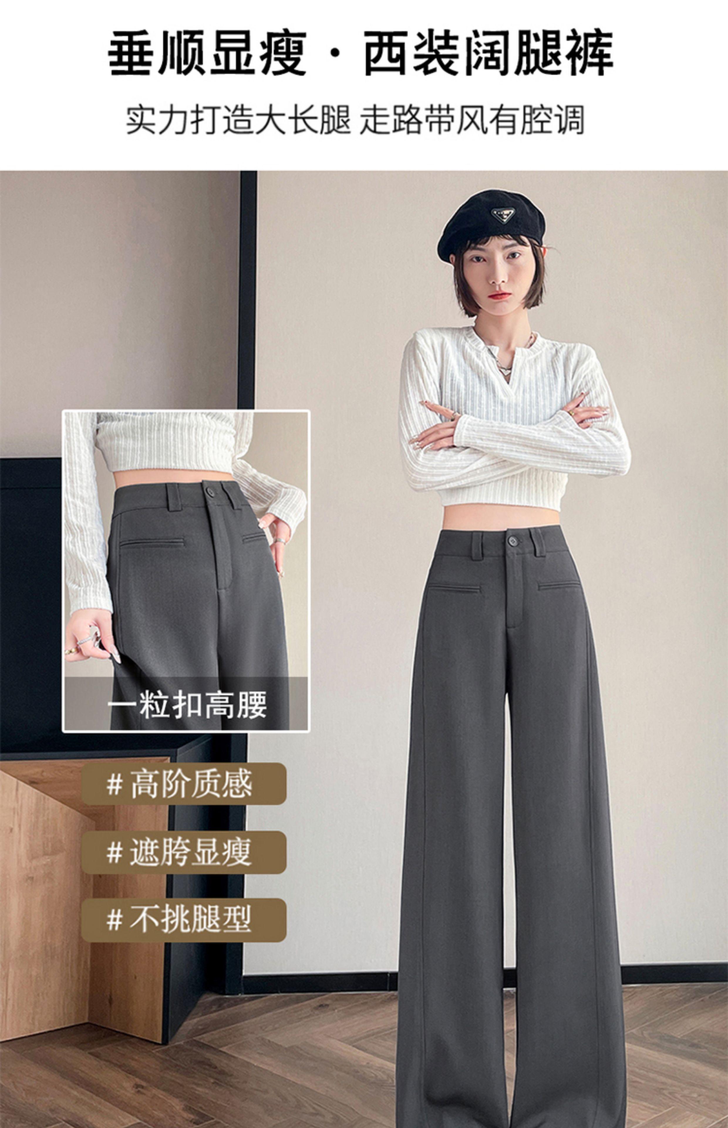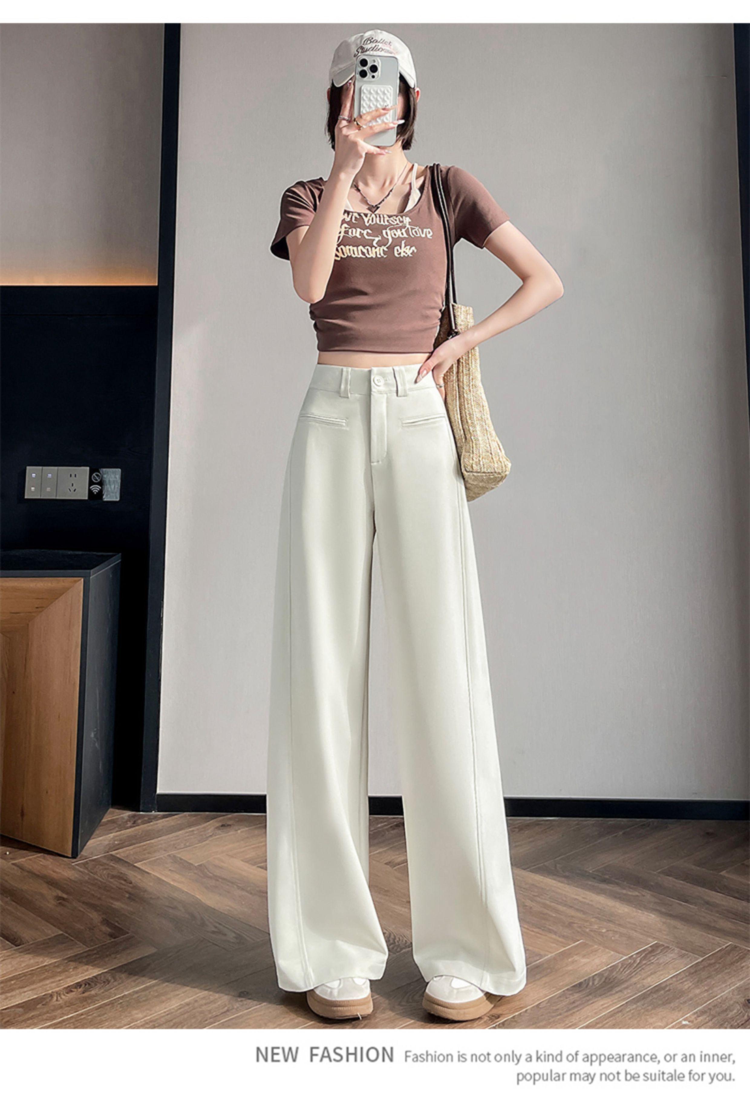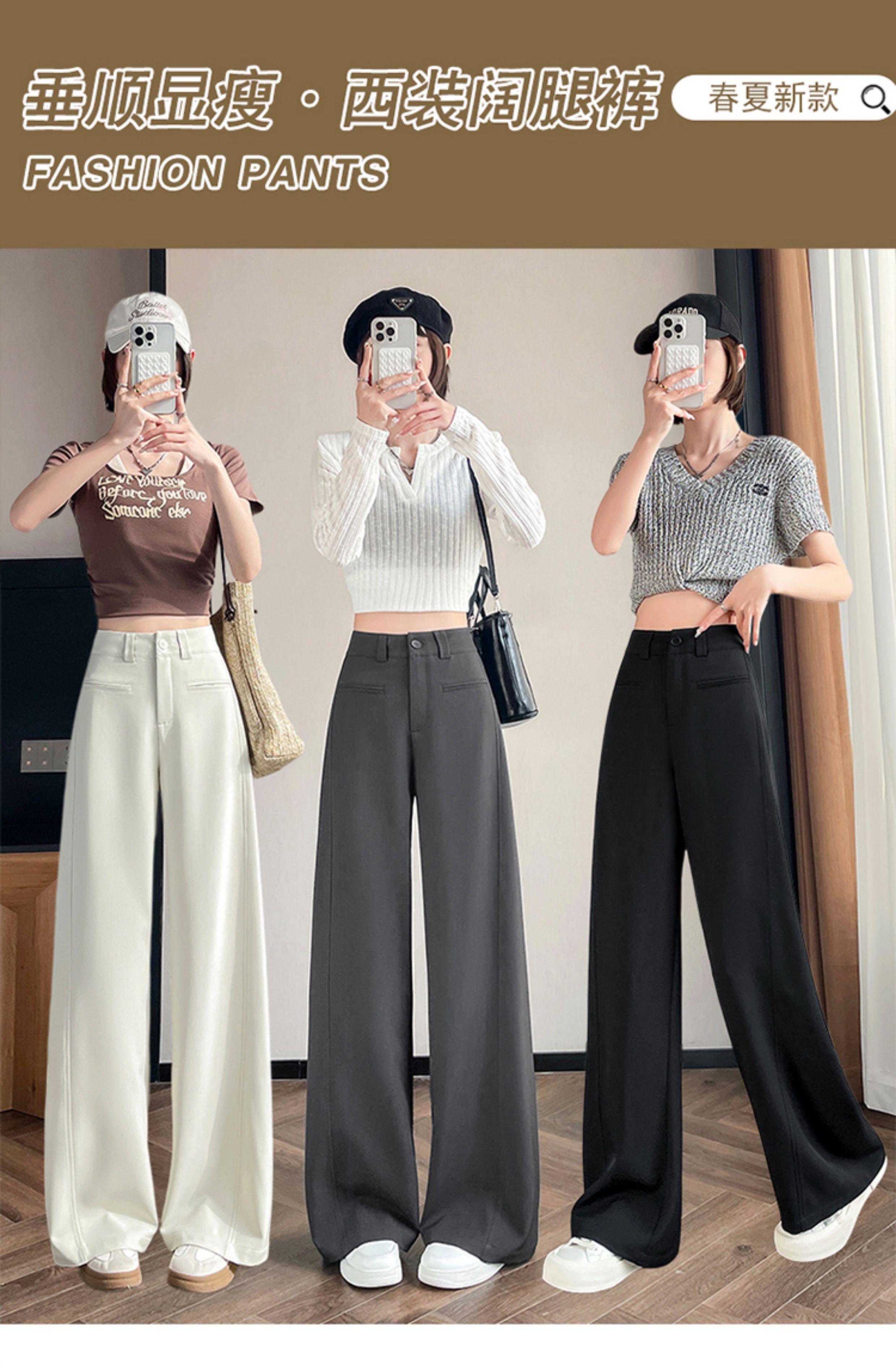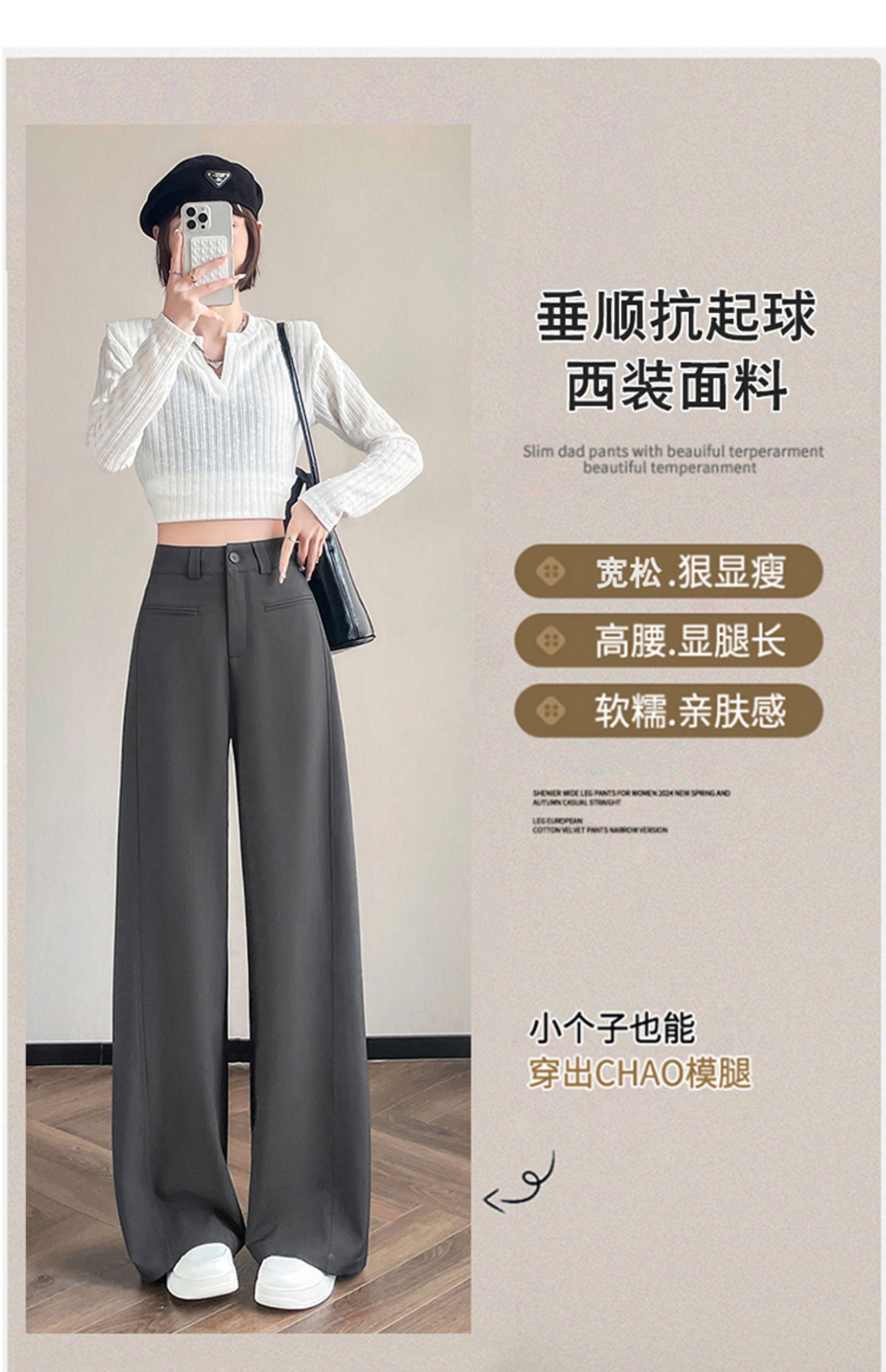Pantalones de Traje Slim-Fit Grises para Mujer, Nuevo Estilo Primavera/Verano 2025, Caída de Alta Gama, Pierna Recta, Pantalones de Pierna Ancha hasta el Piso