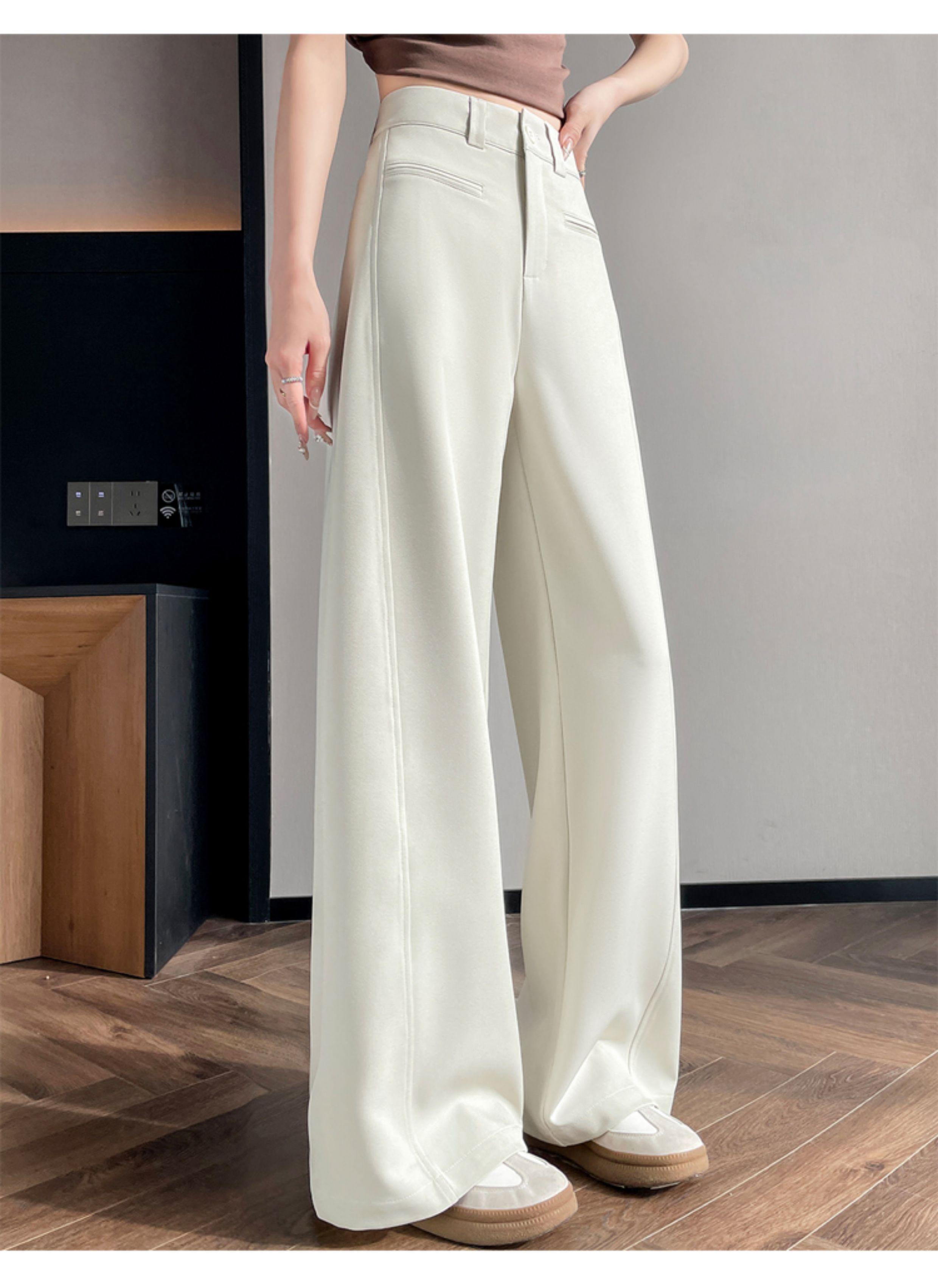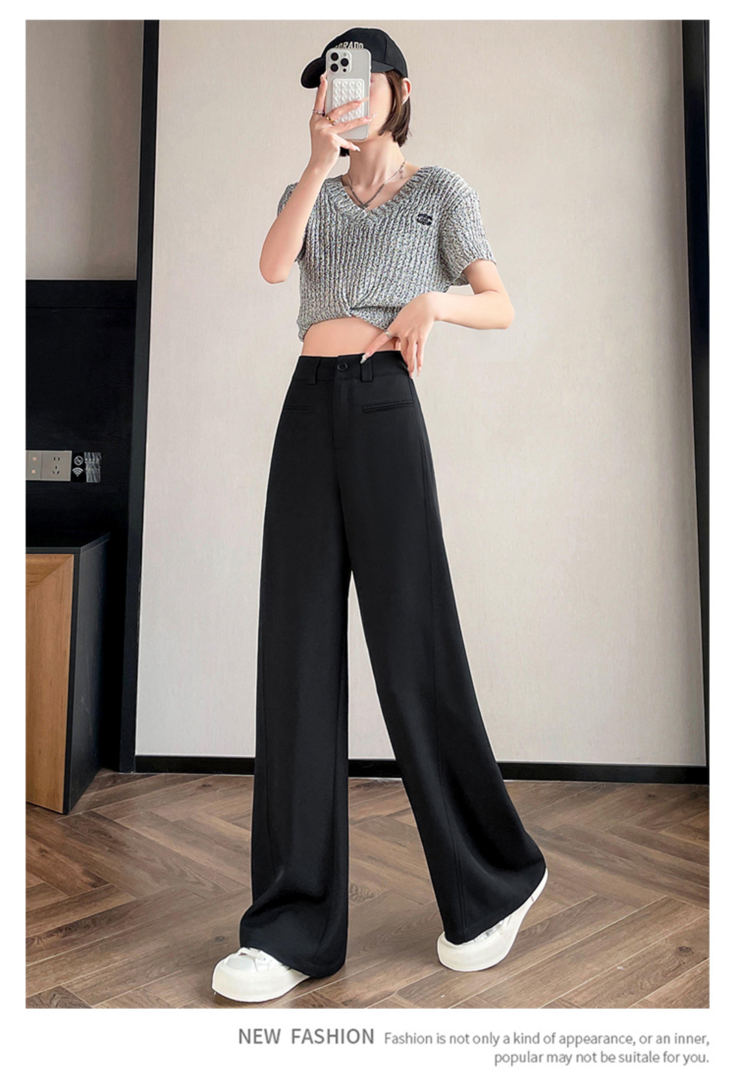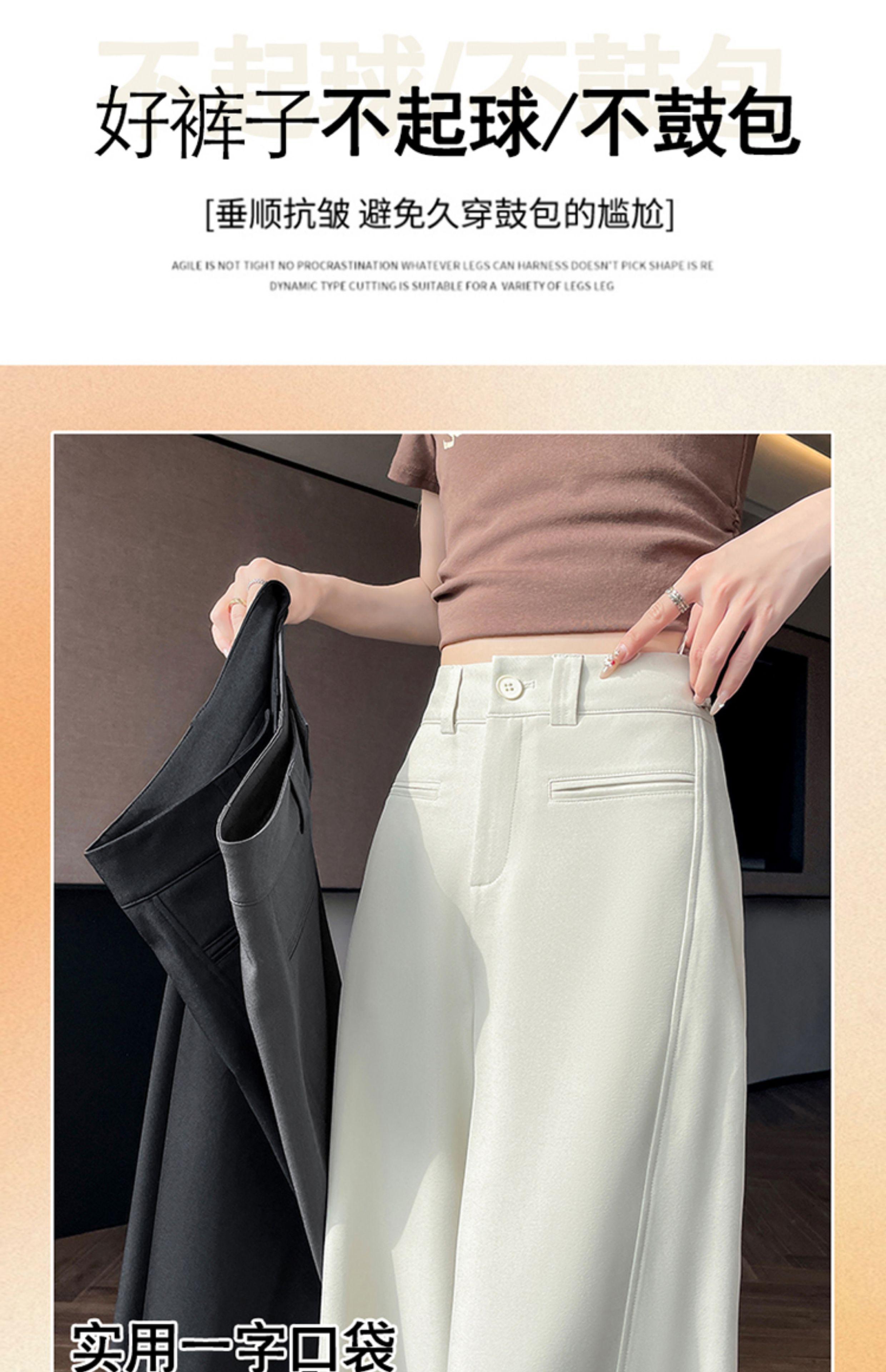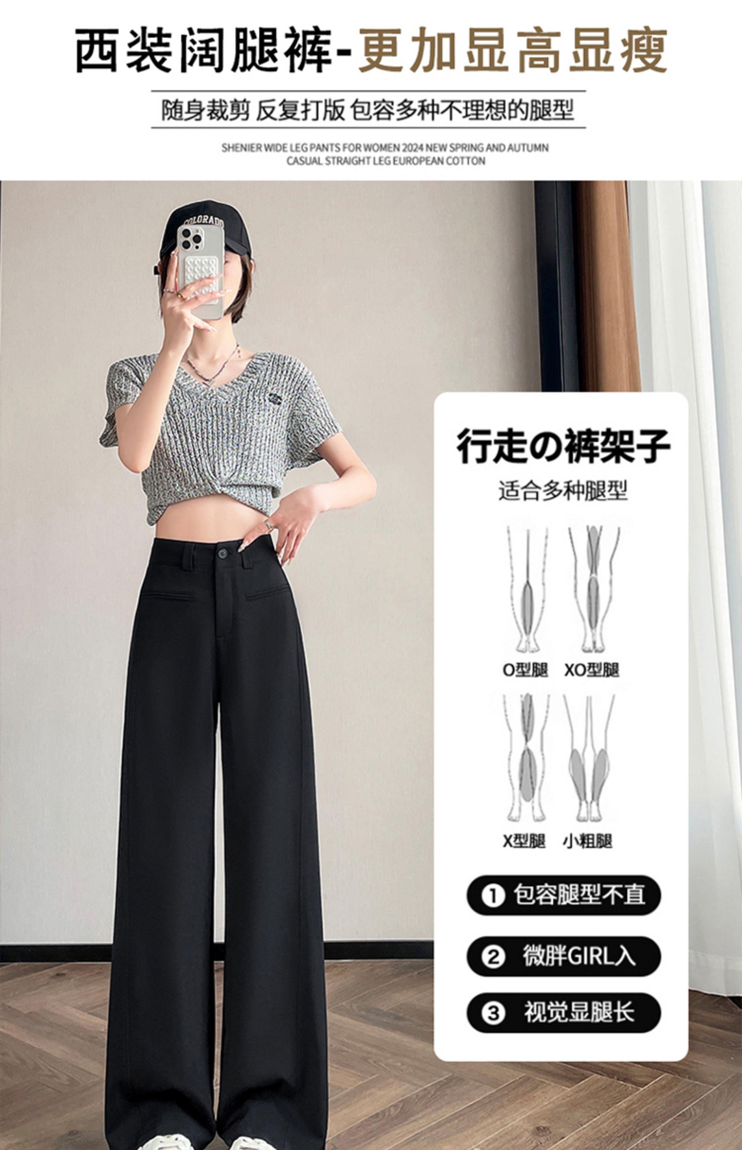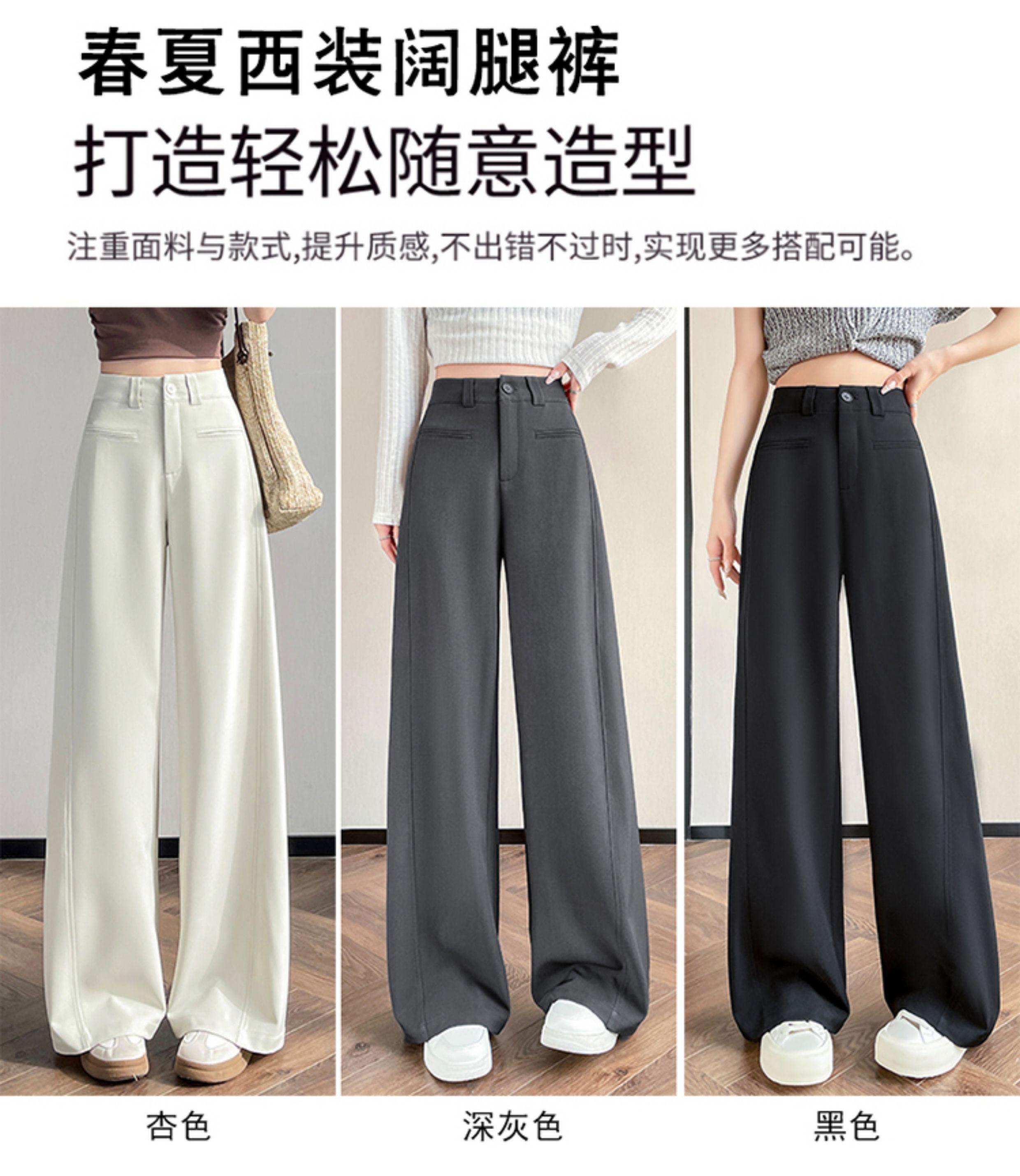 Pantalones de Traje Slim-Fit Grises para Mujer, Nuevo Estilo Primavera/Verano 2025, Caída de Alta Gama, Pierna Recta, Pantalones de Pierna Ancha hasta el Piso
