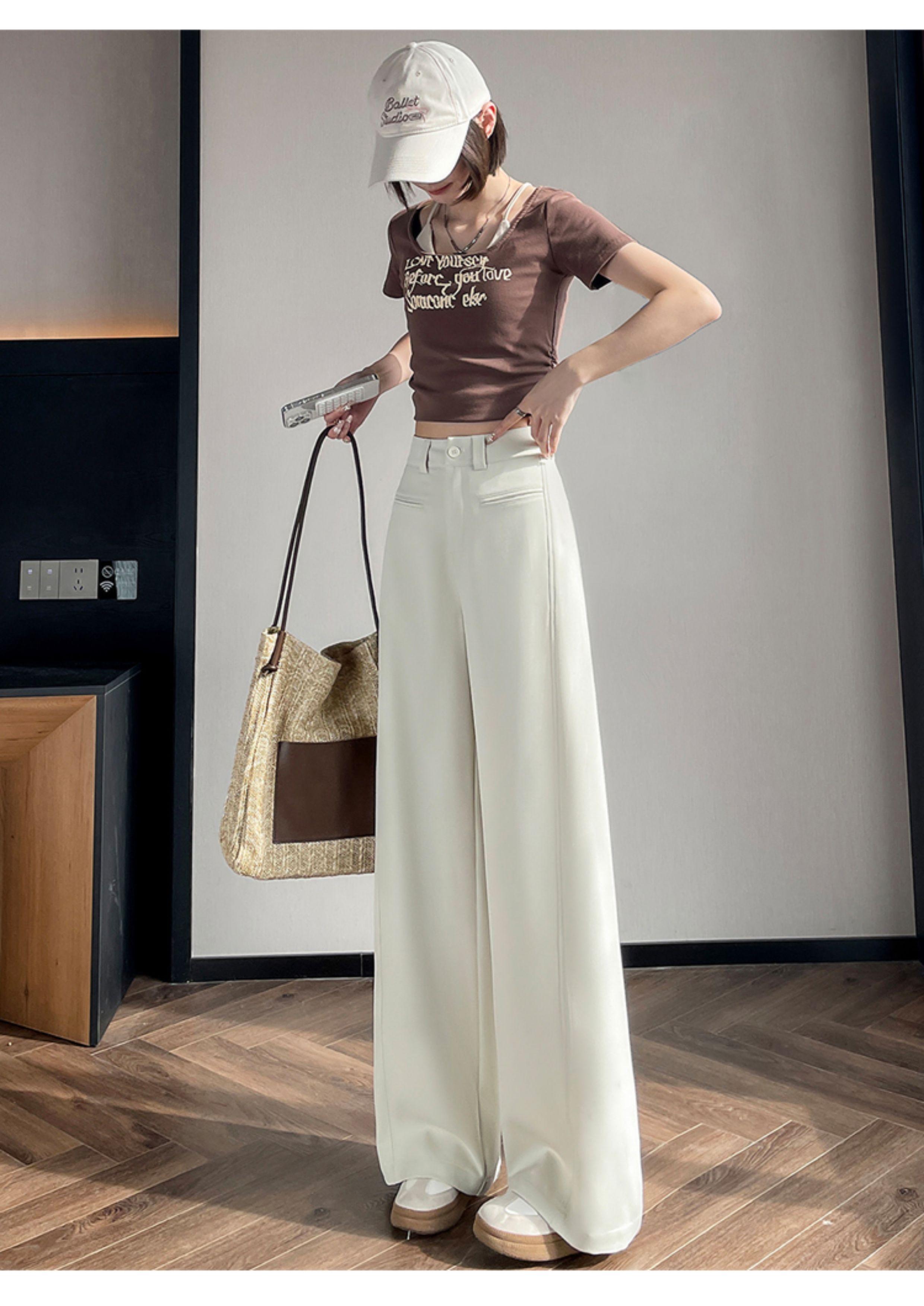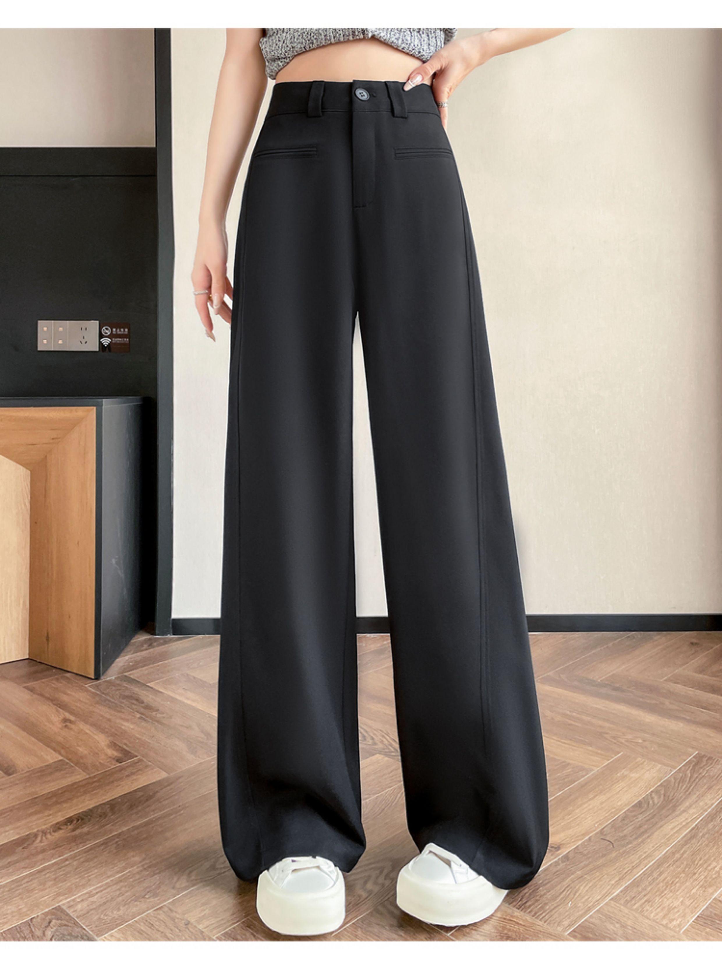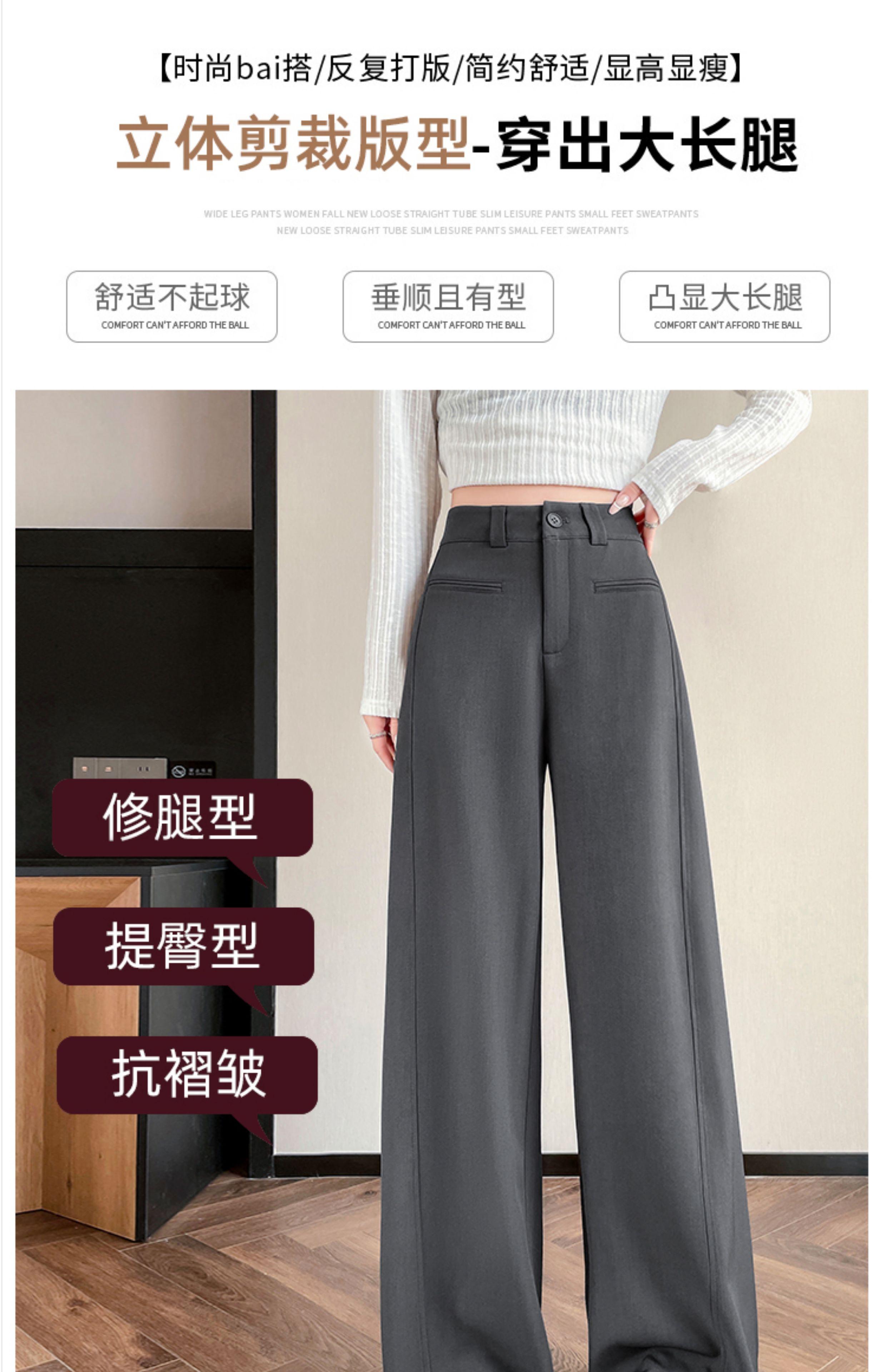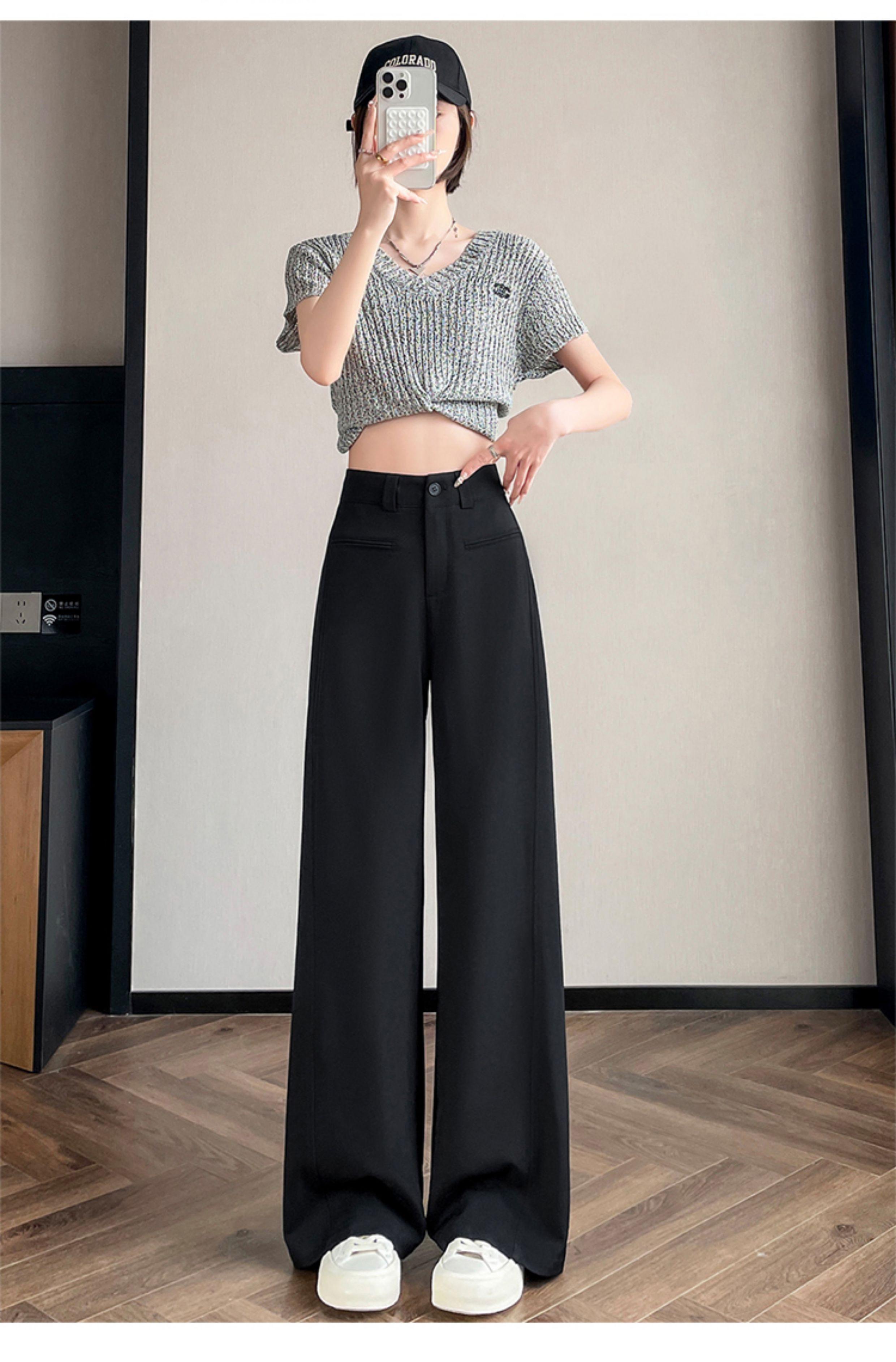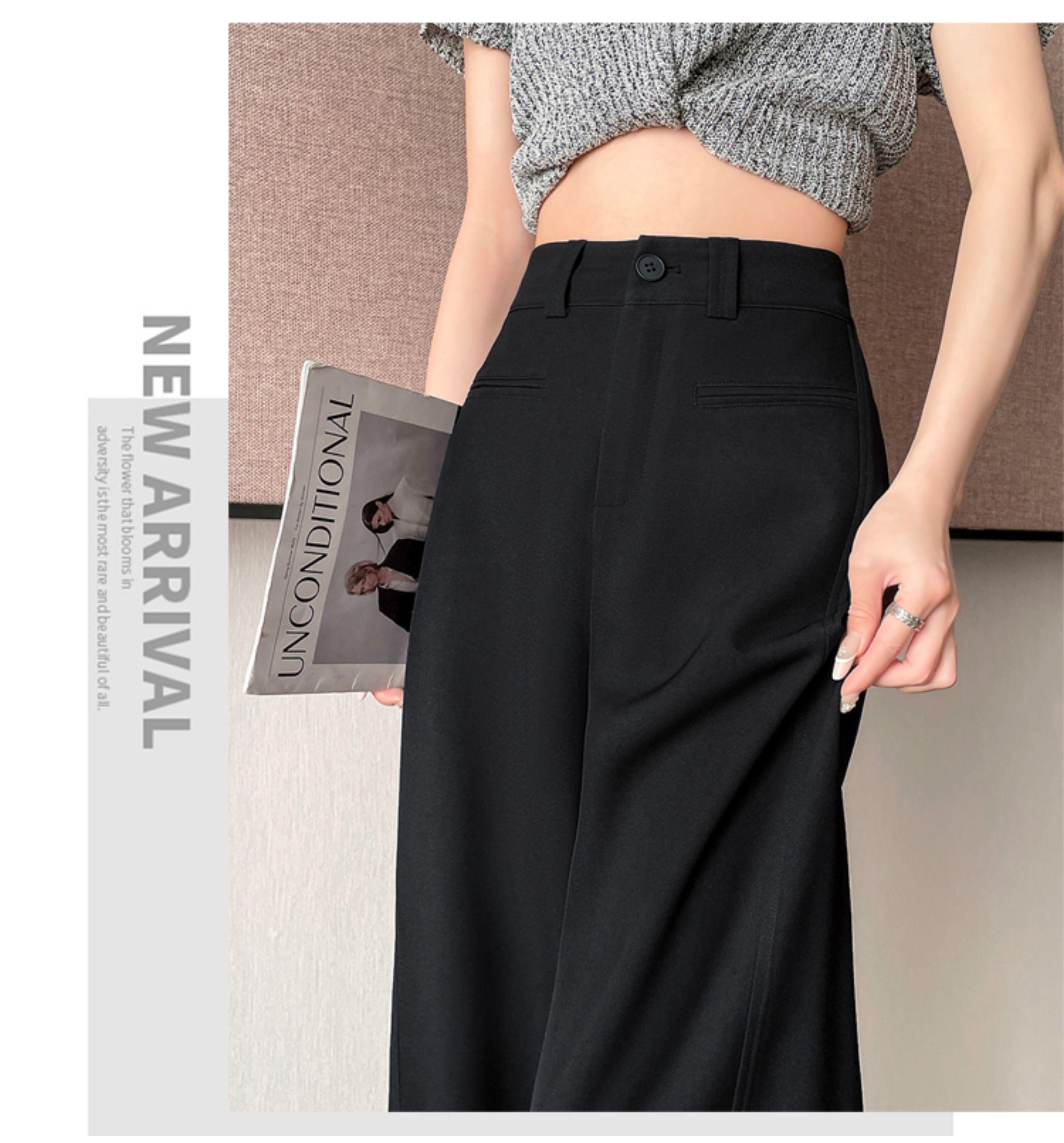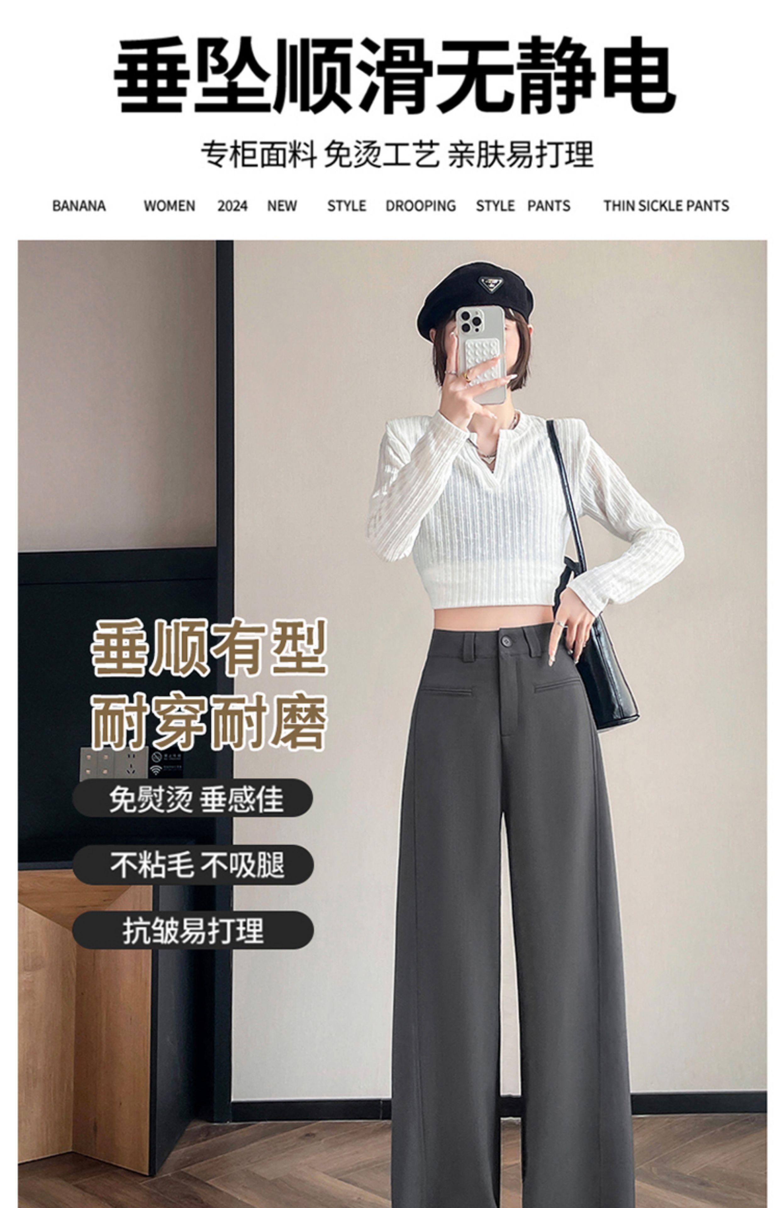 Pantalones de Traje Slim-Fit Grises para Mujer, Nuevo Estilo Primavera/Verano 2025, Caída de Alta Gama, Pierna Recta, Pantalones de Pierna Ancha hasta el Piso
