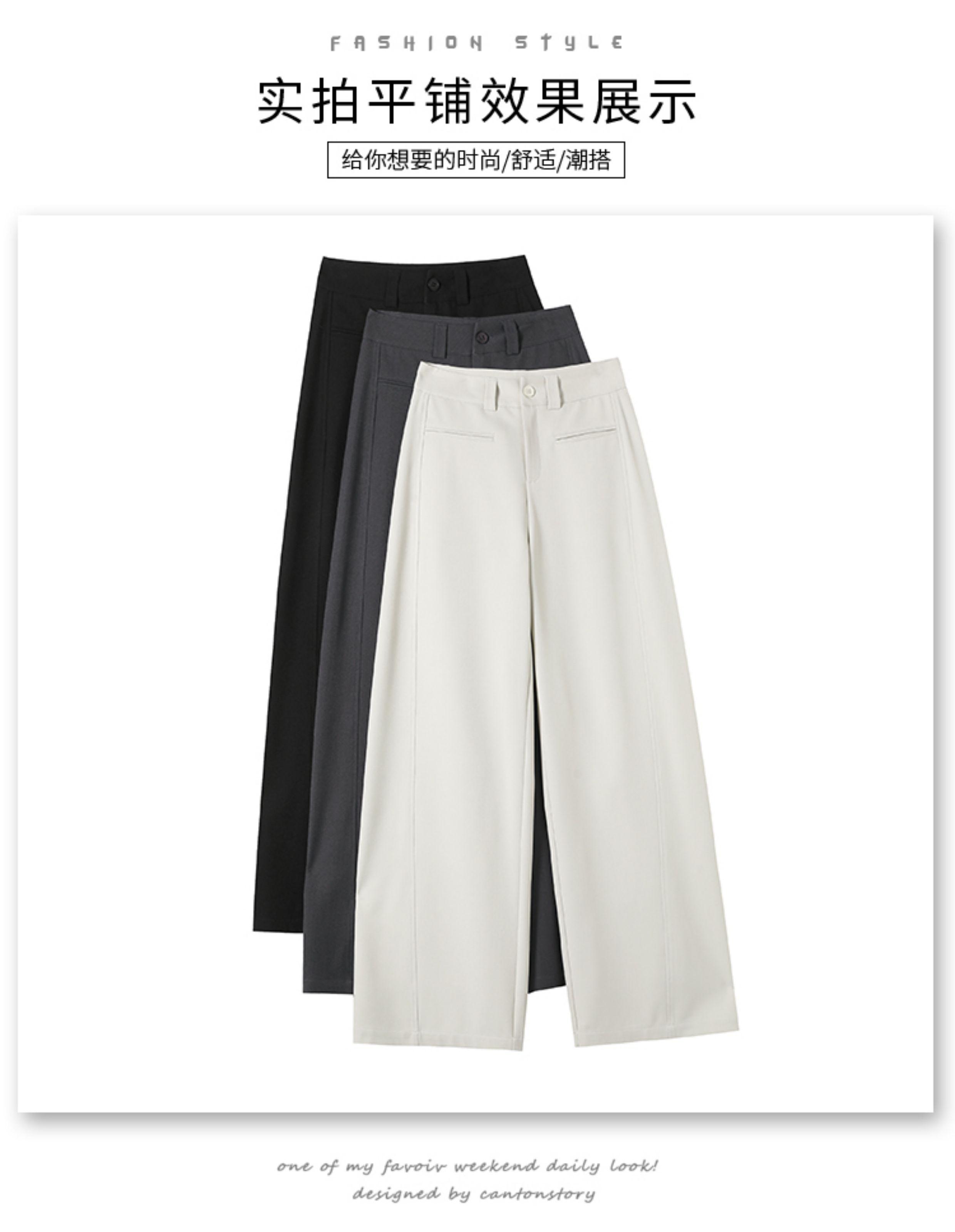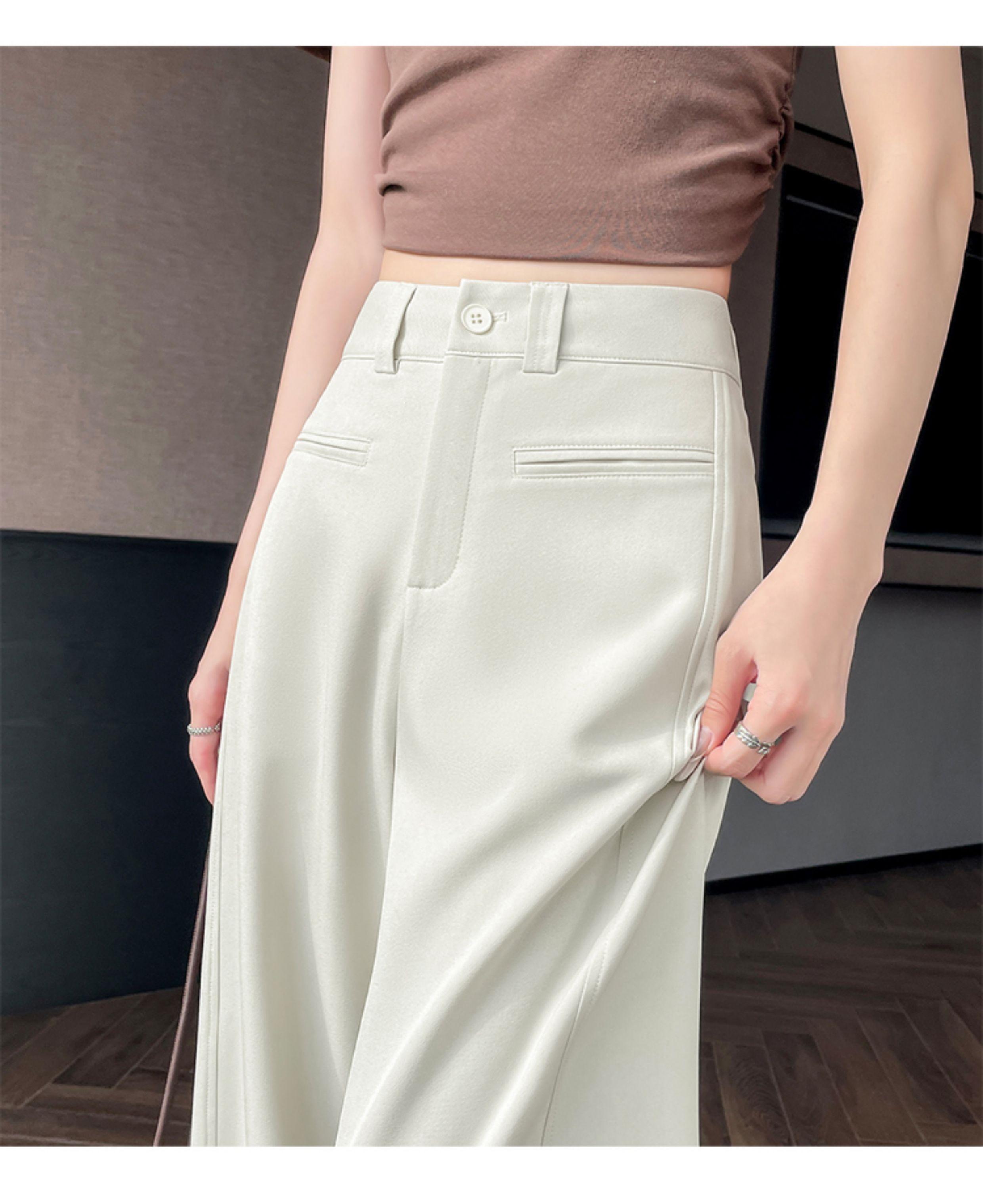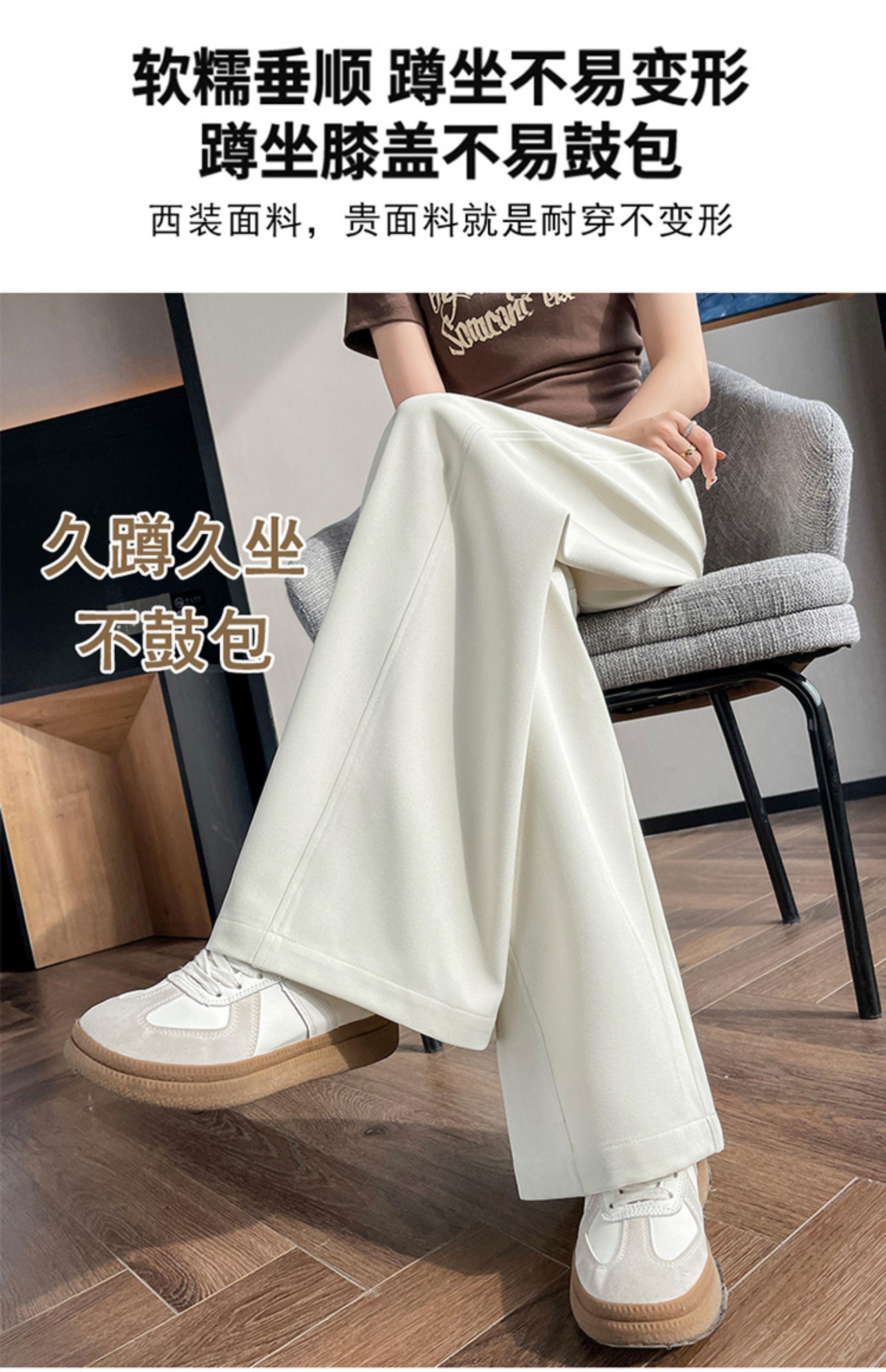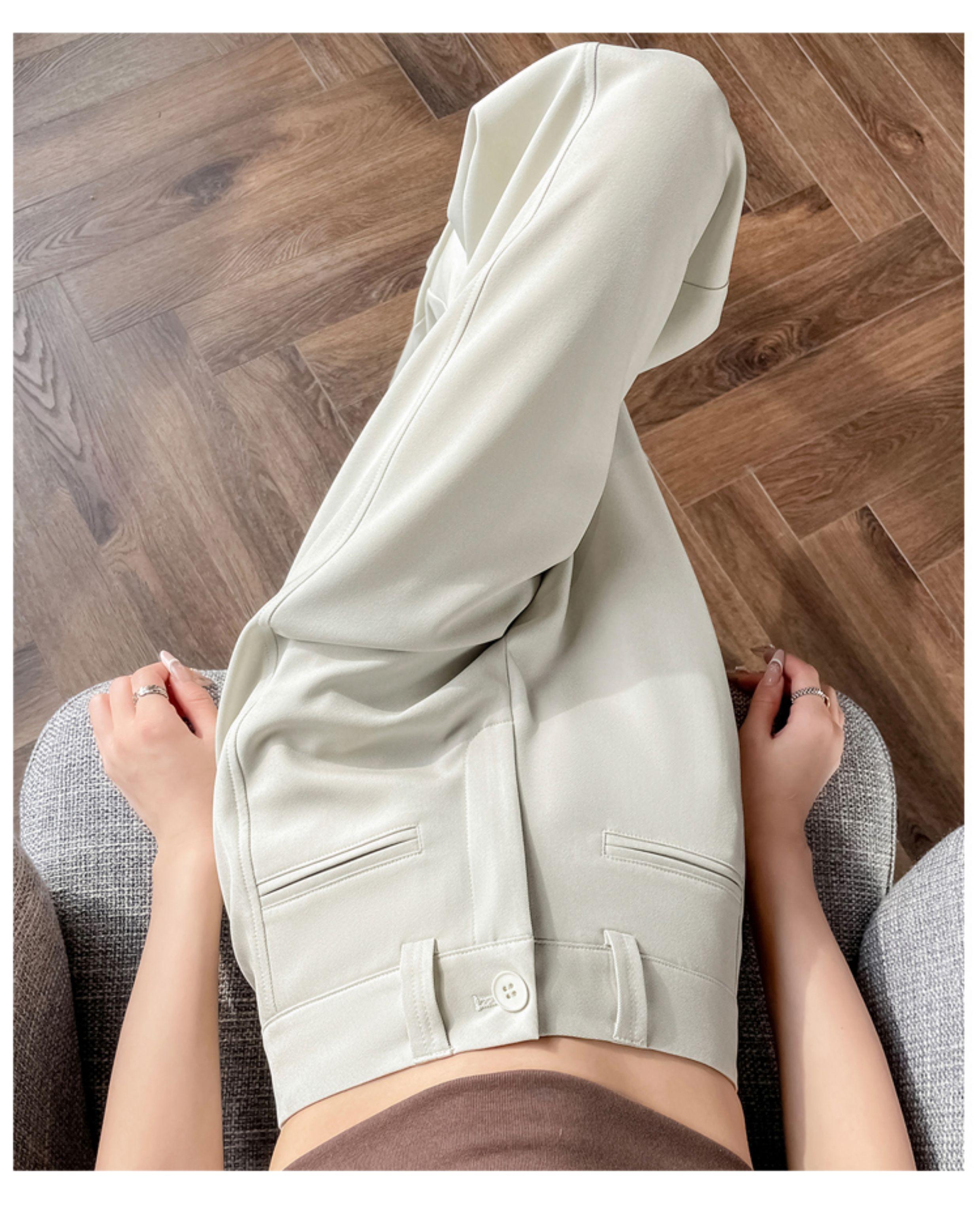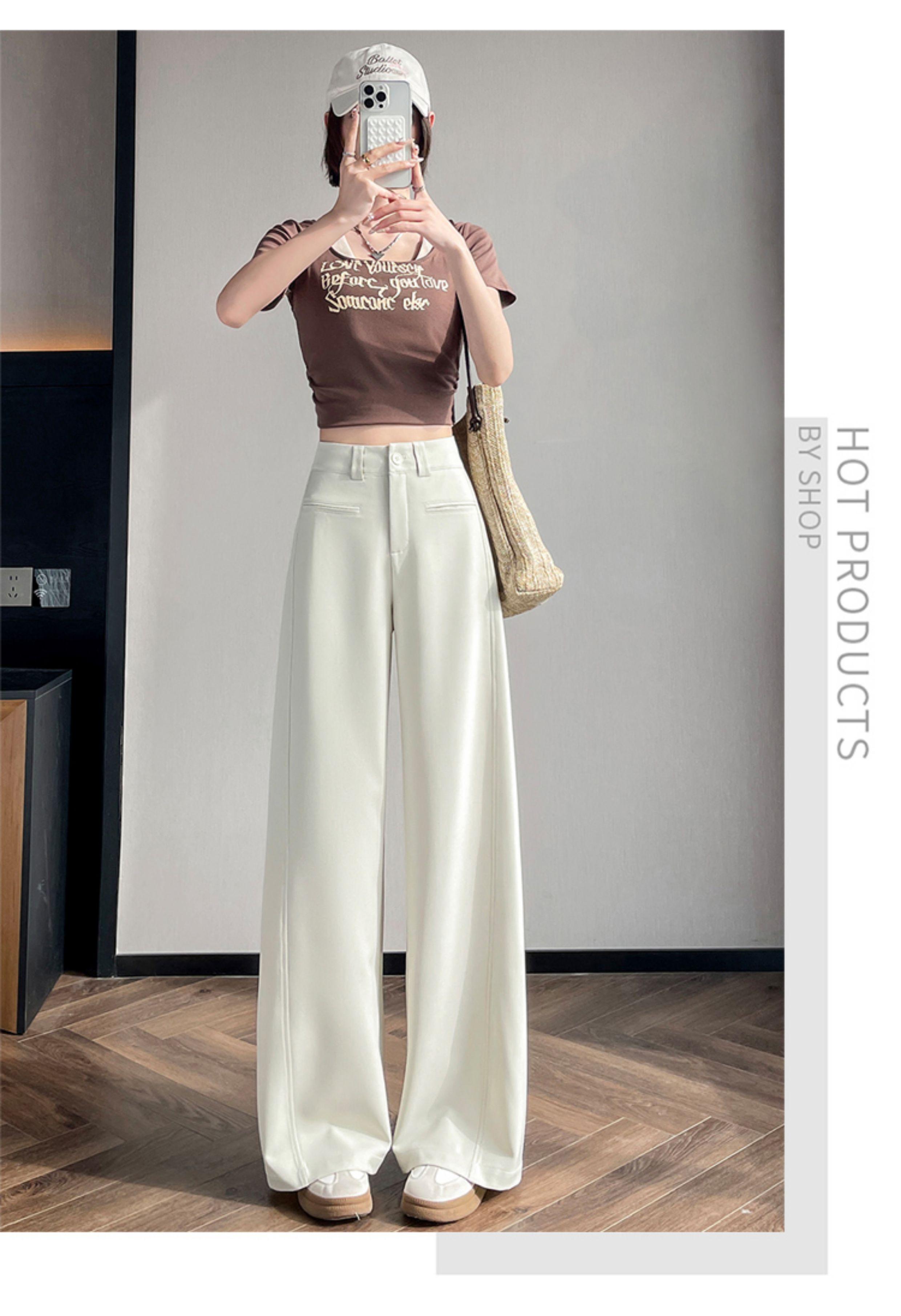 Pantalones de Traje Slim-Fit Grises para Mujer, Nuevo Estilo Primavera/Verano 2025, Caída de Alta Gama, Pierna Recta, Pantalones de Pierna Ancha hasta el Piso