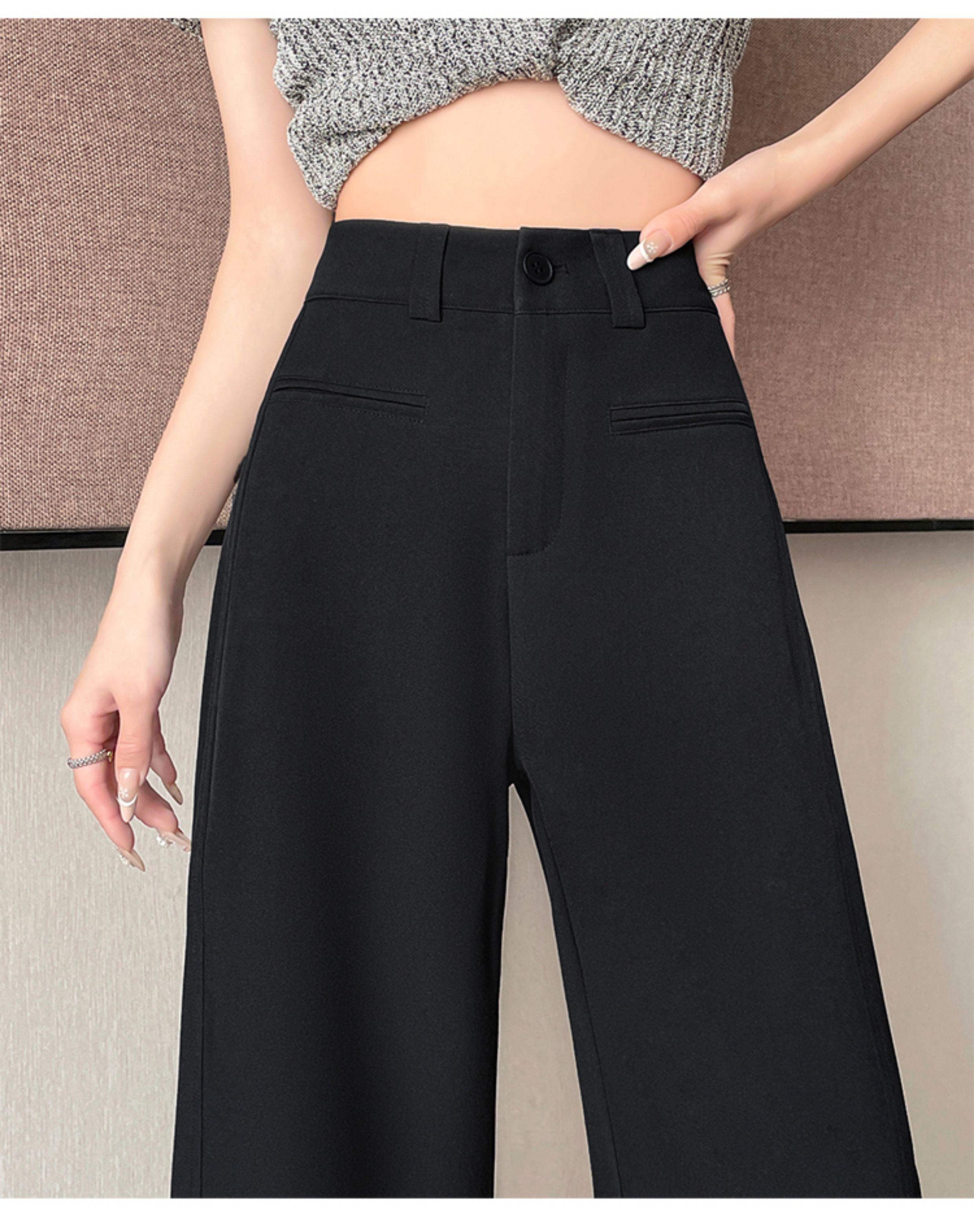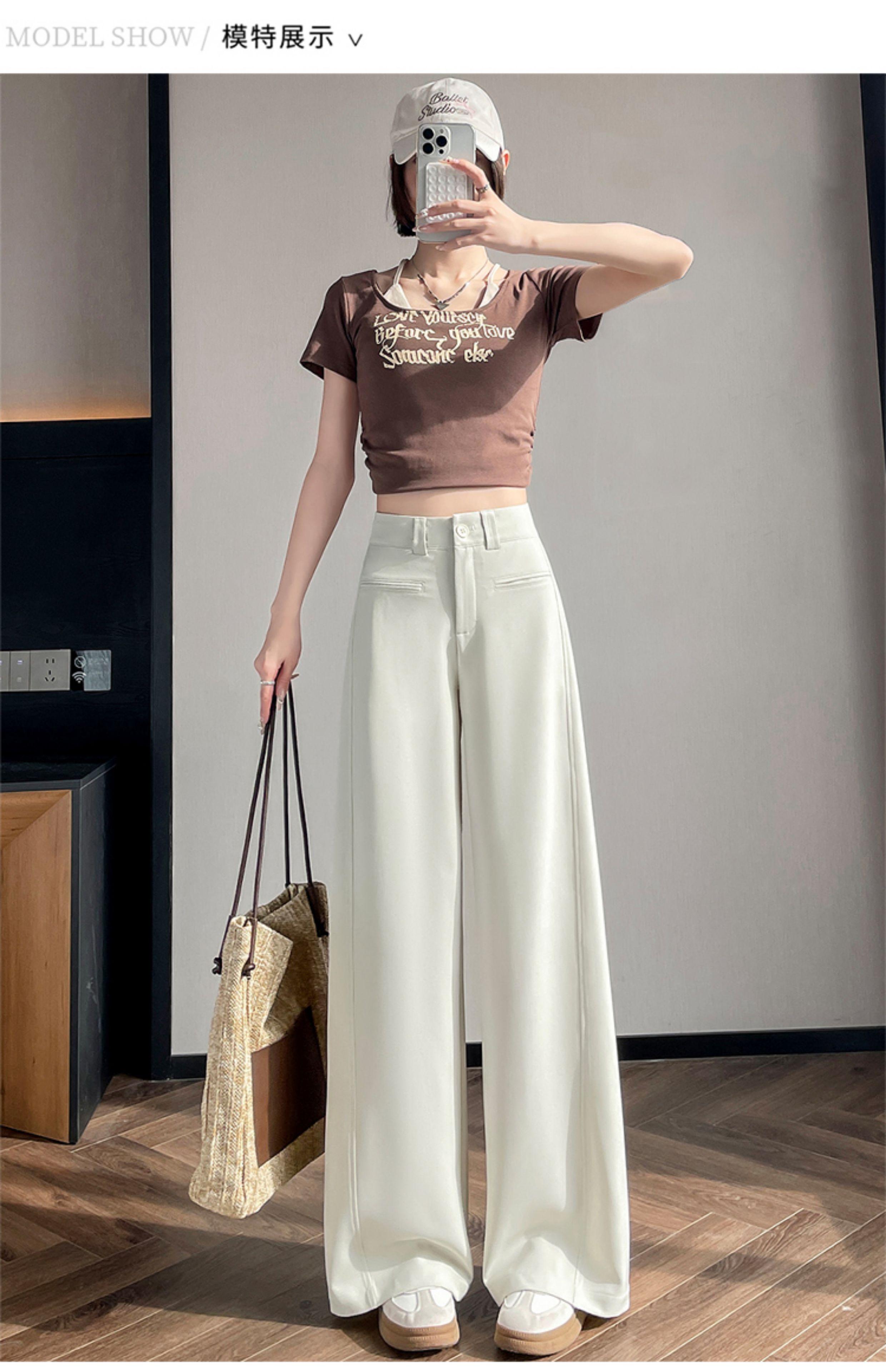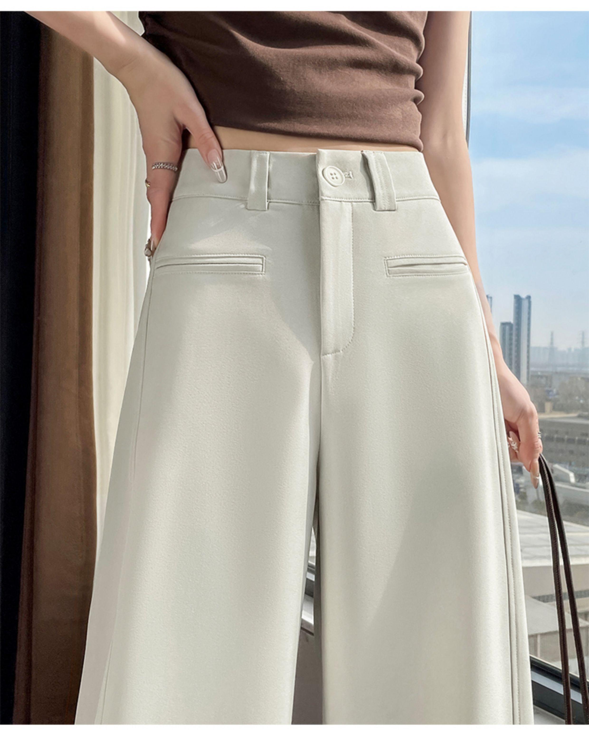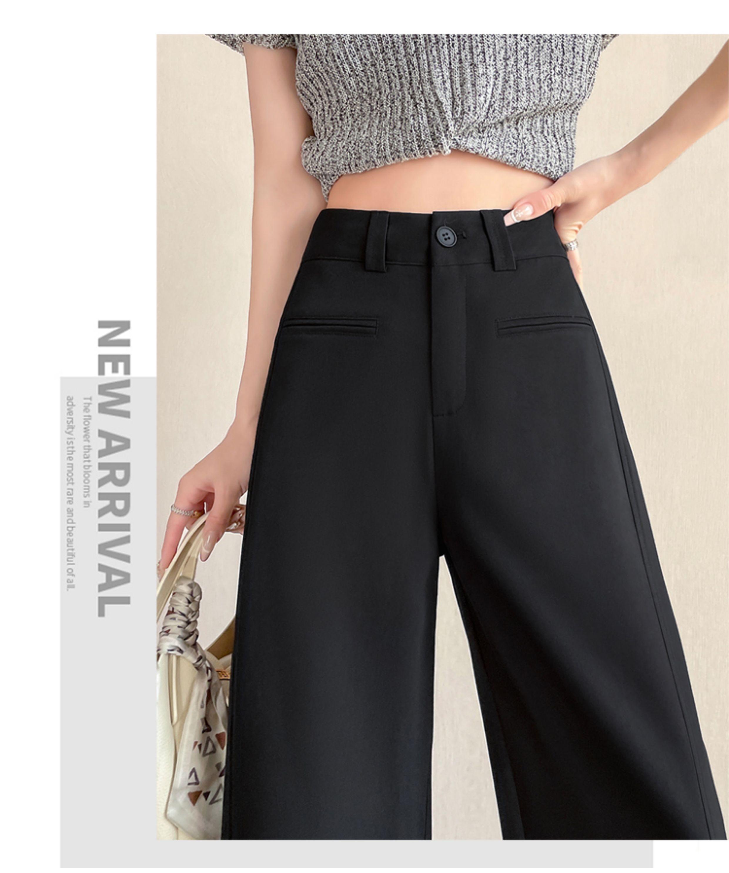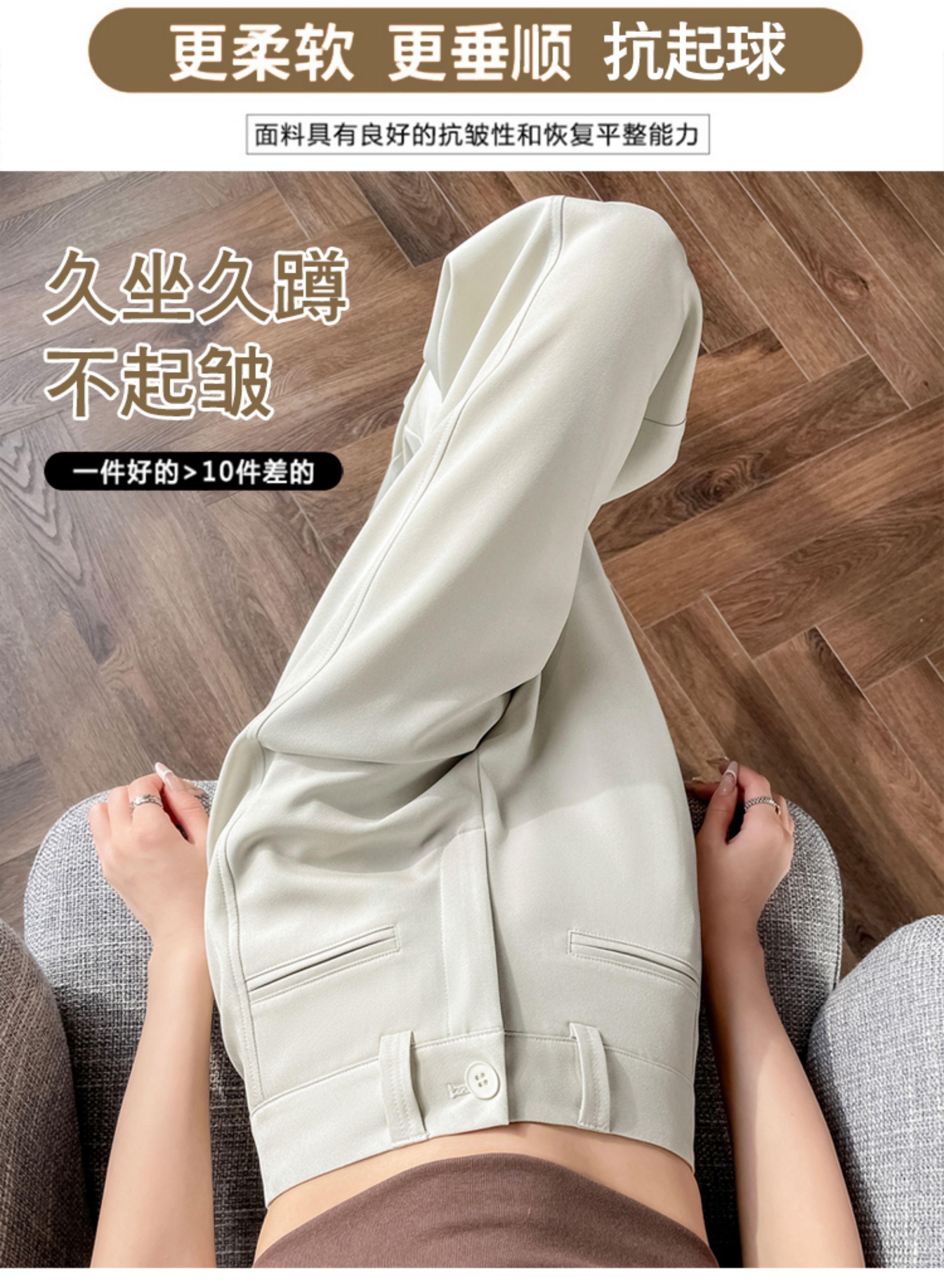 Pantalones de Traje Slim-Fit Grises para Mujer, Nuevo Estilo Primavera/Verano 2025, Caída de Alta Gama, Pierna Recta, Pantalones de Pierna Ancha hasta el Piso