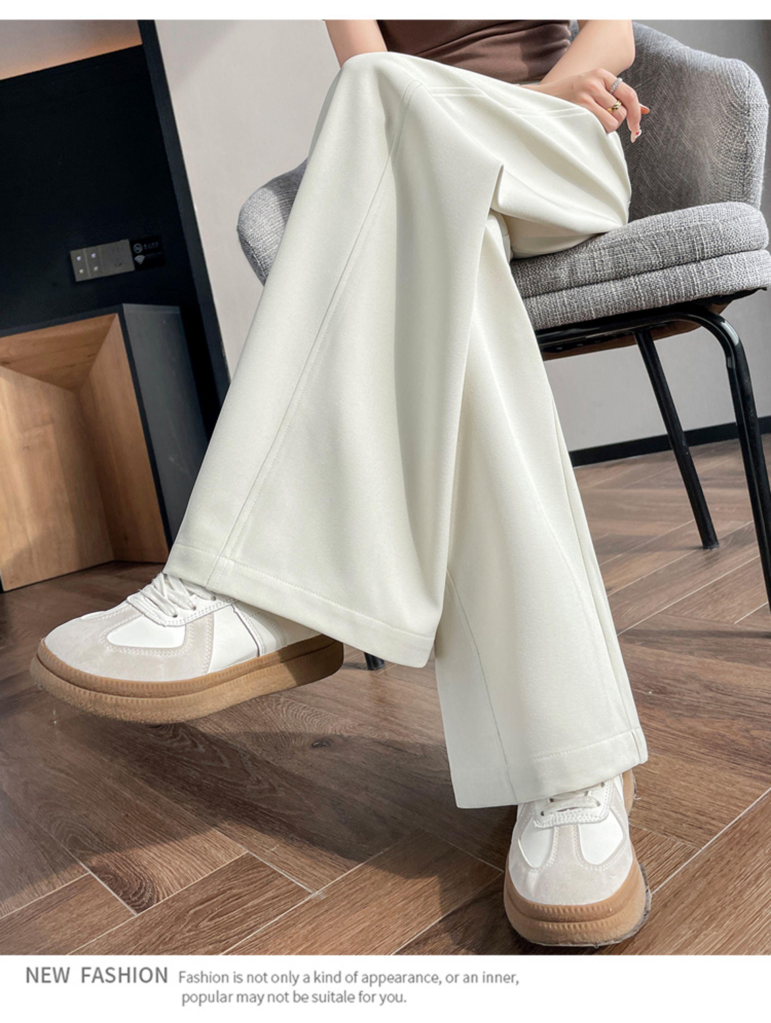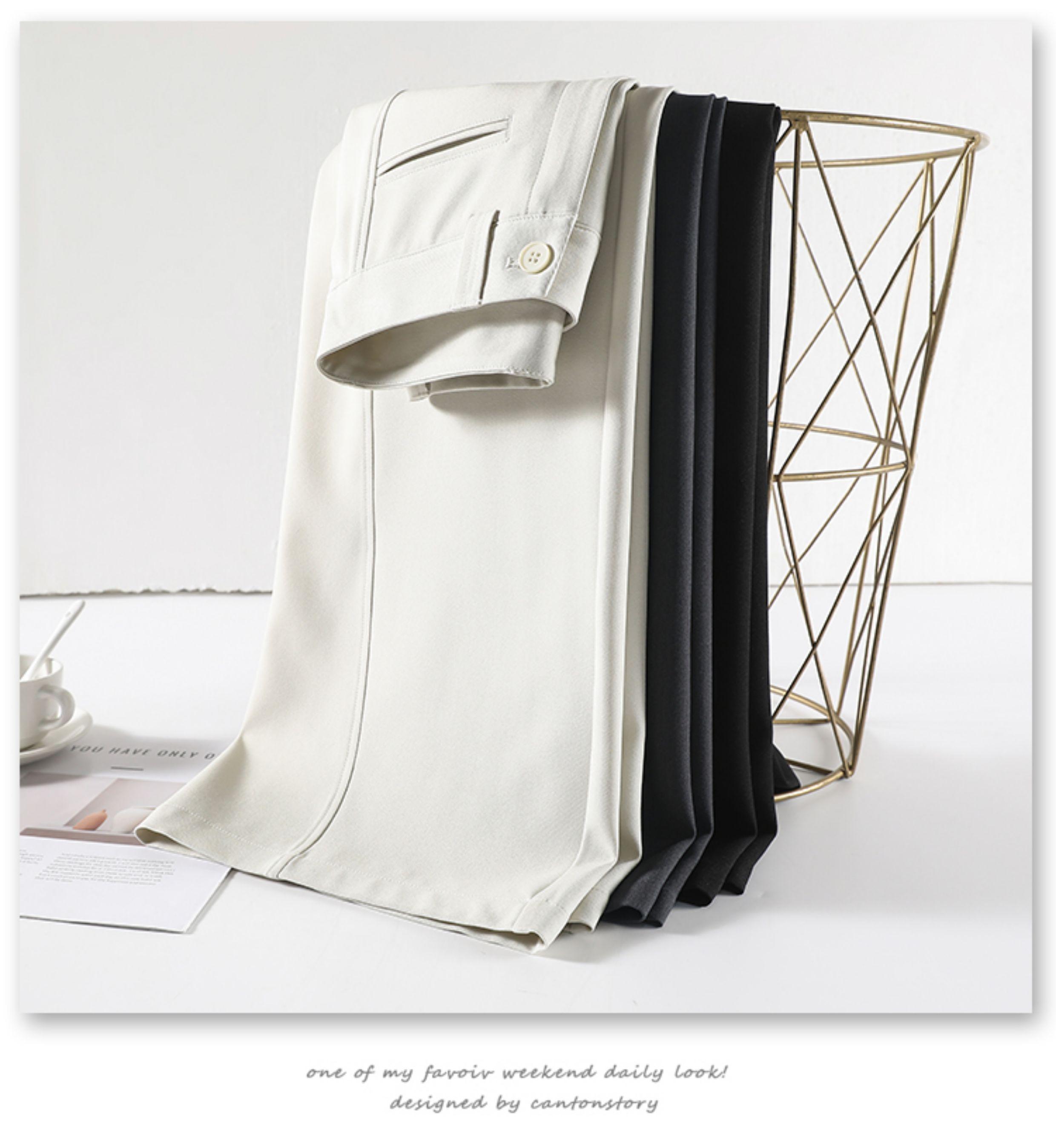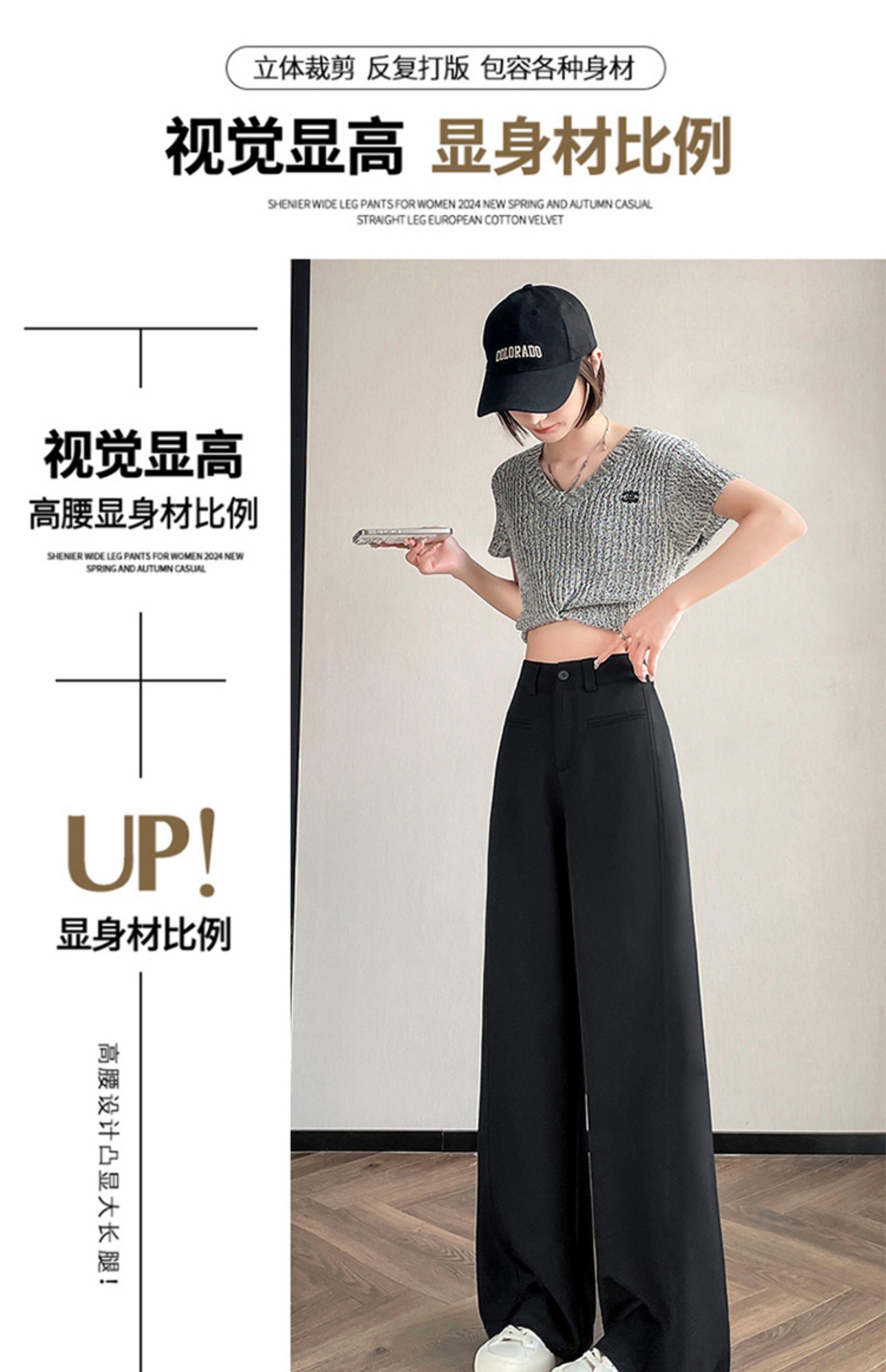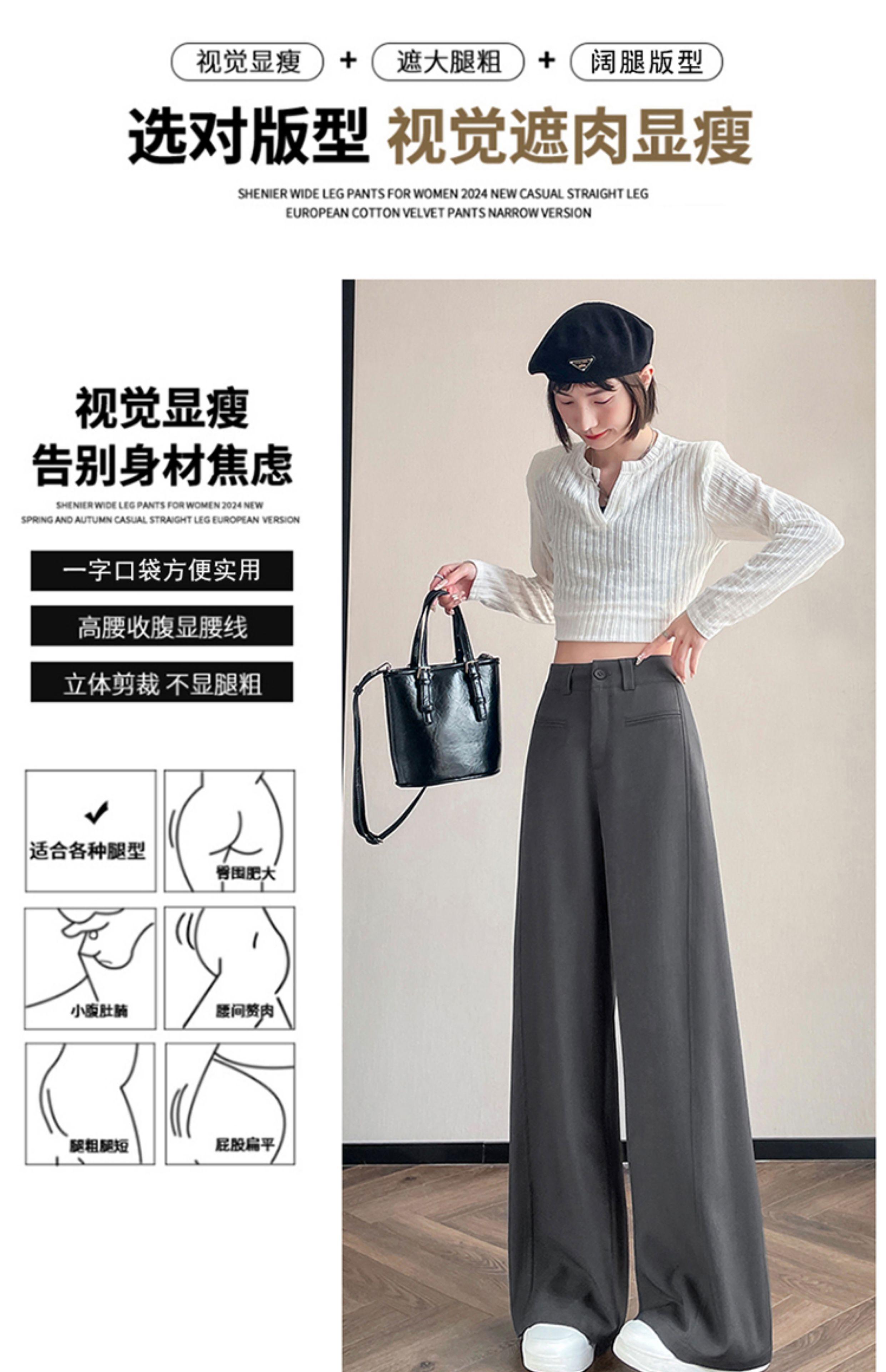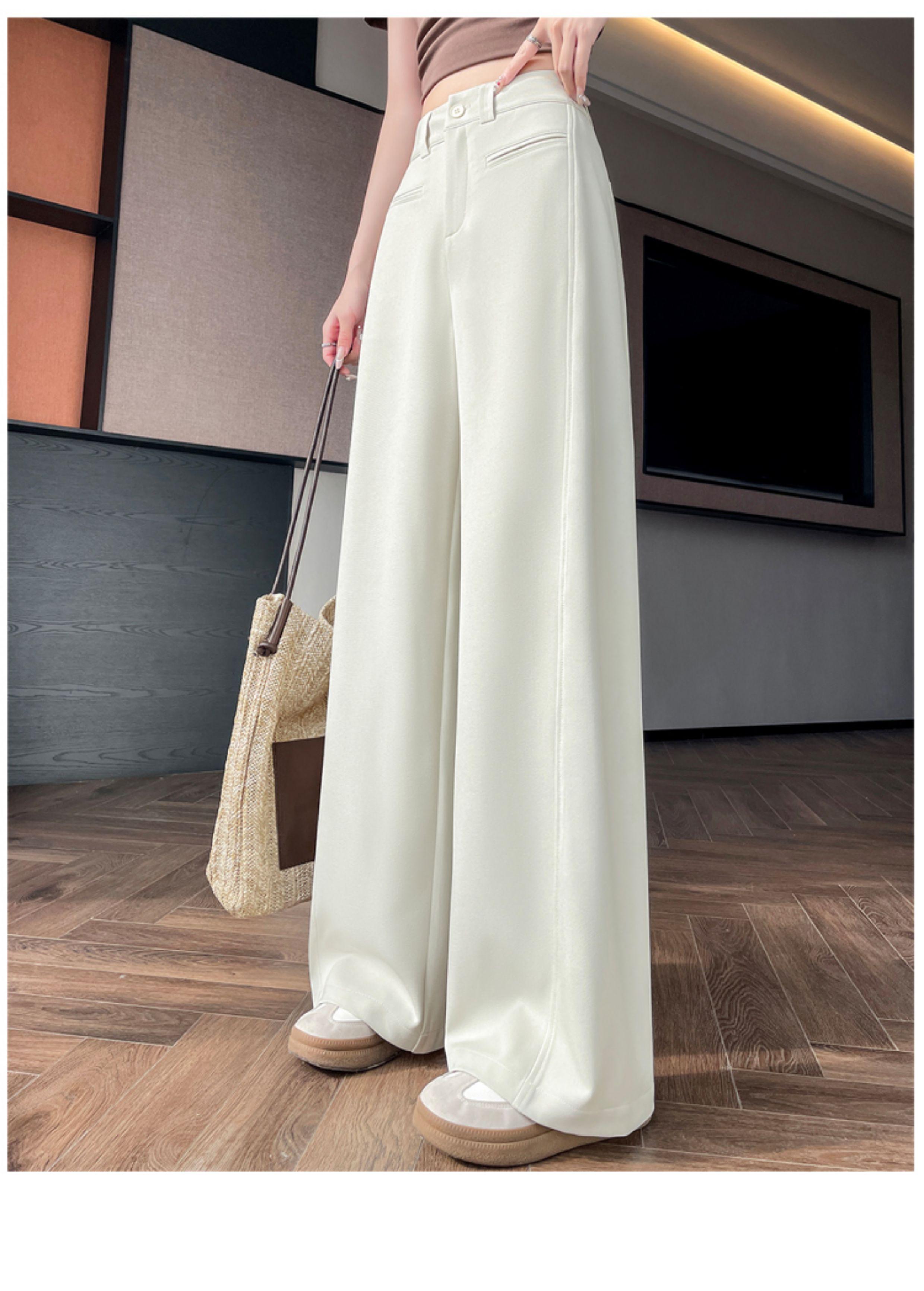 Pantalones de Traje Slim-Fit Grises para Mujer, Nuevo Estilo Primavera/Verano 2025, Caída de Alta Gama, Pierna Recta, Pantalones de Pierna Ancha hasta el Piso