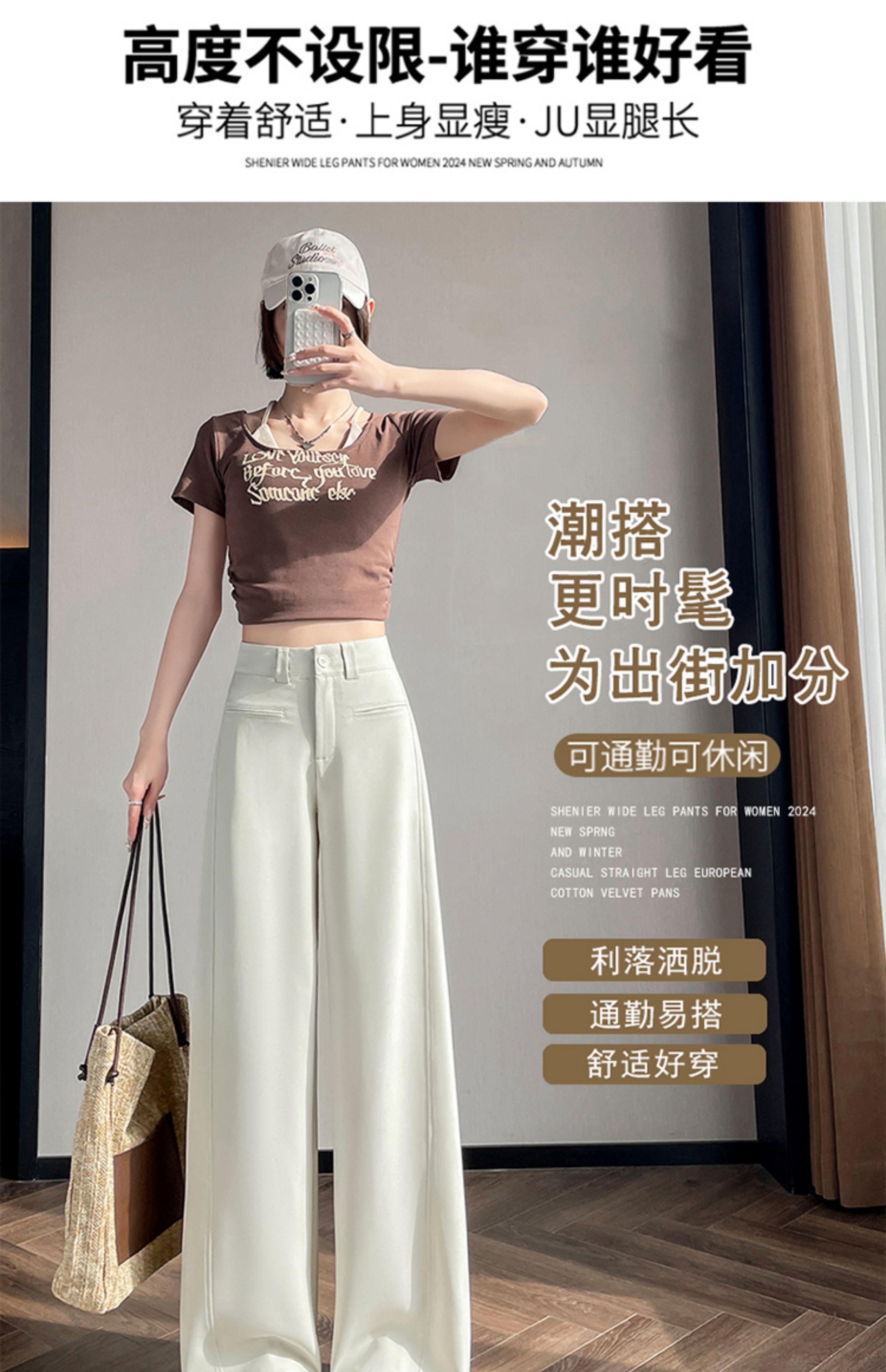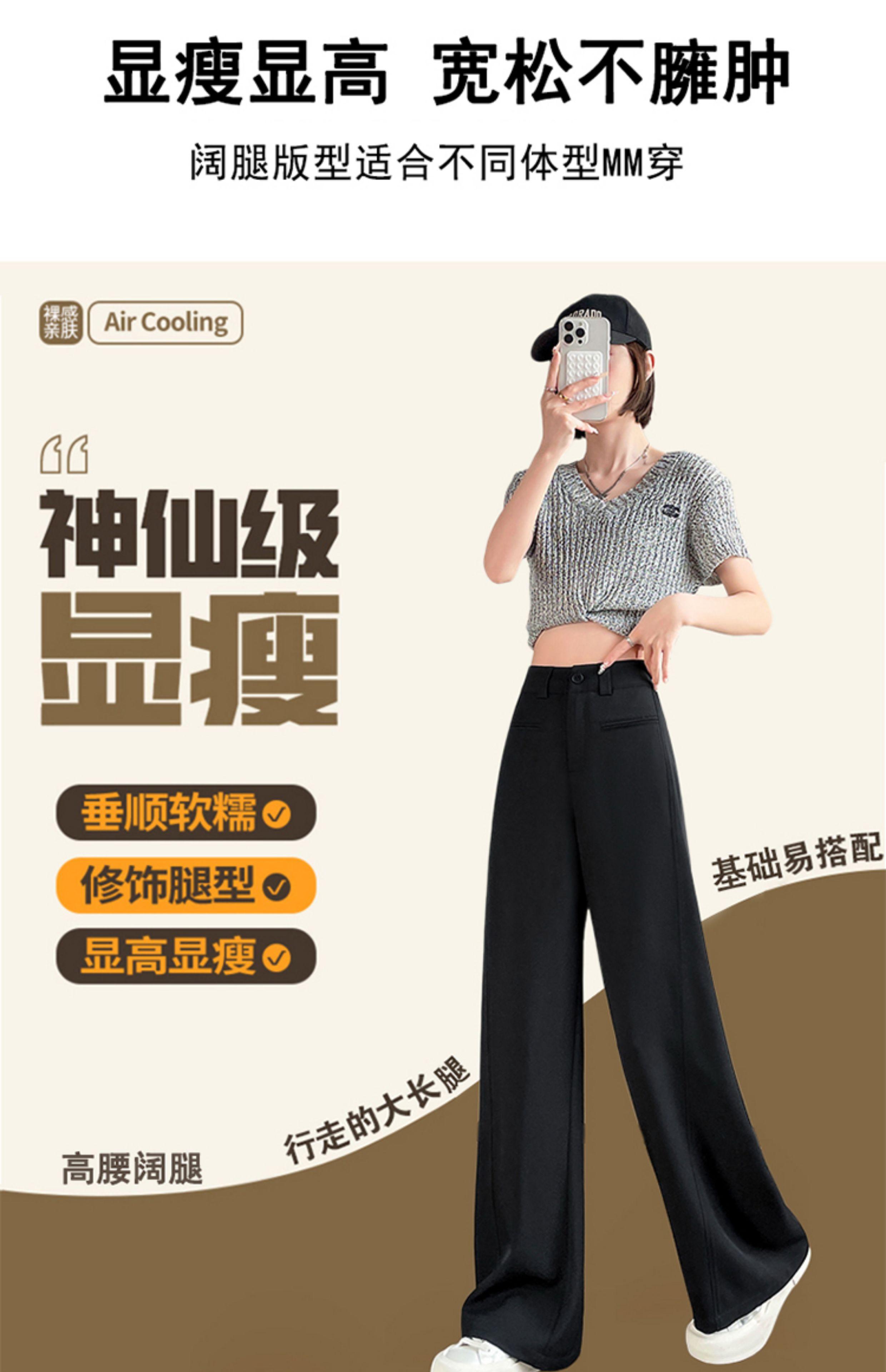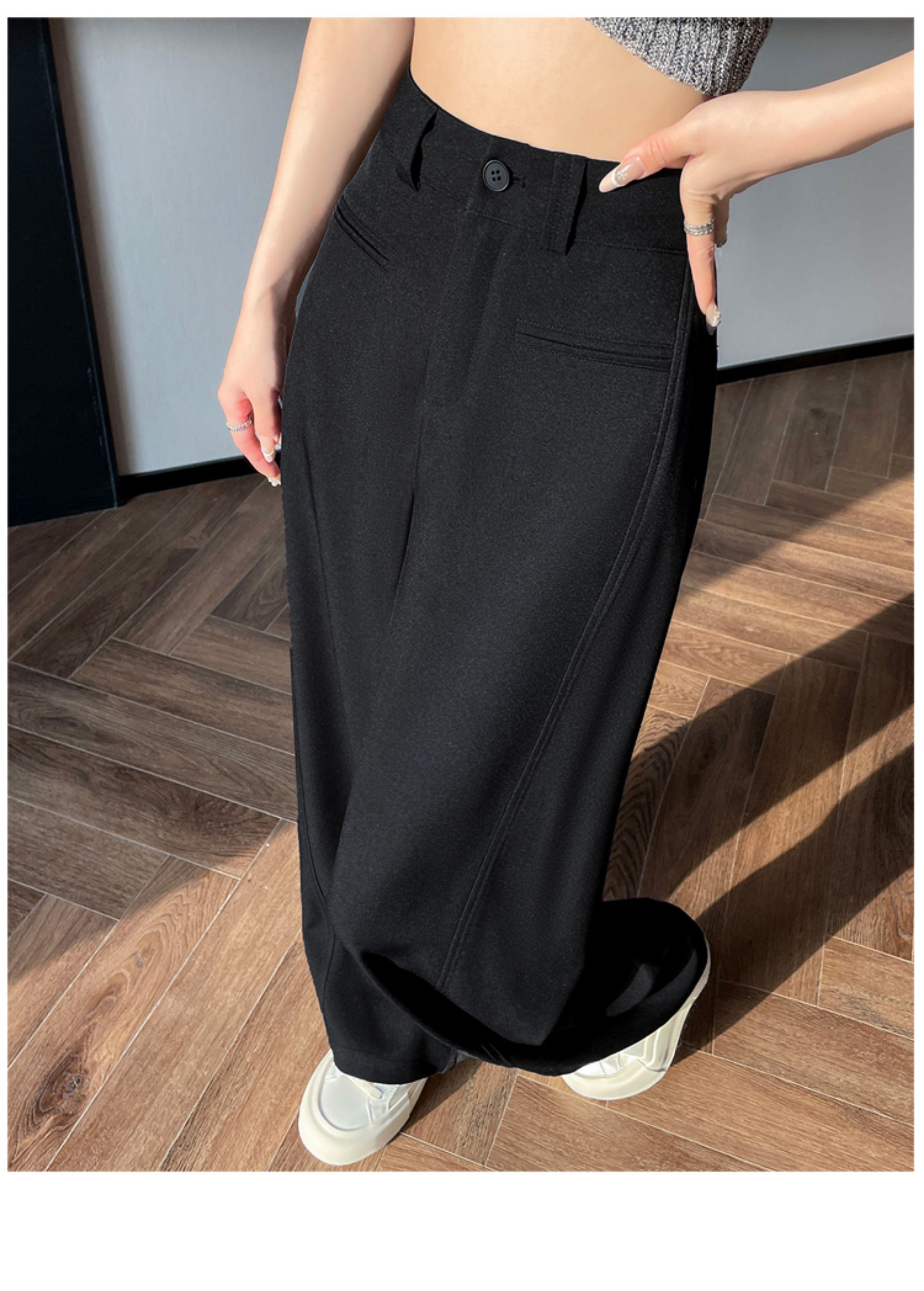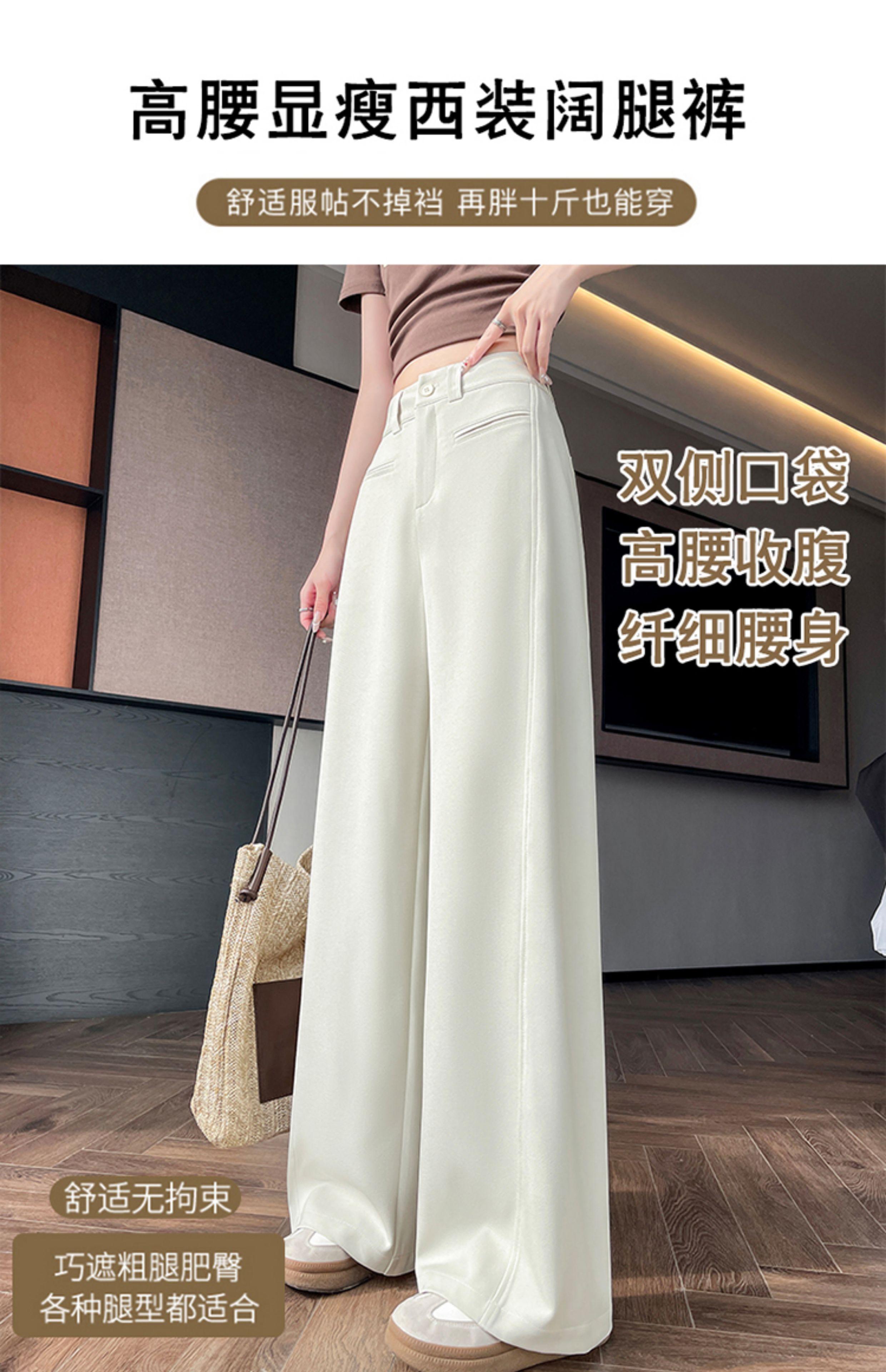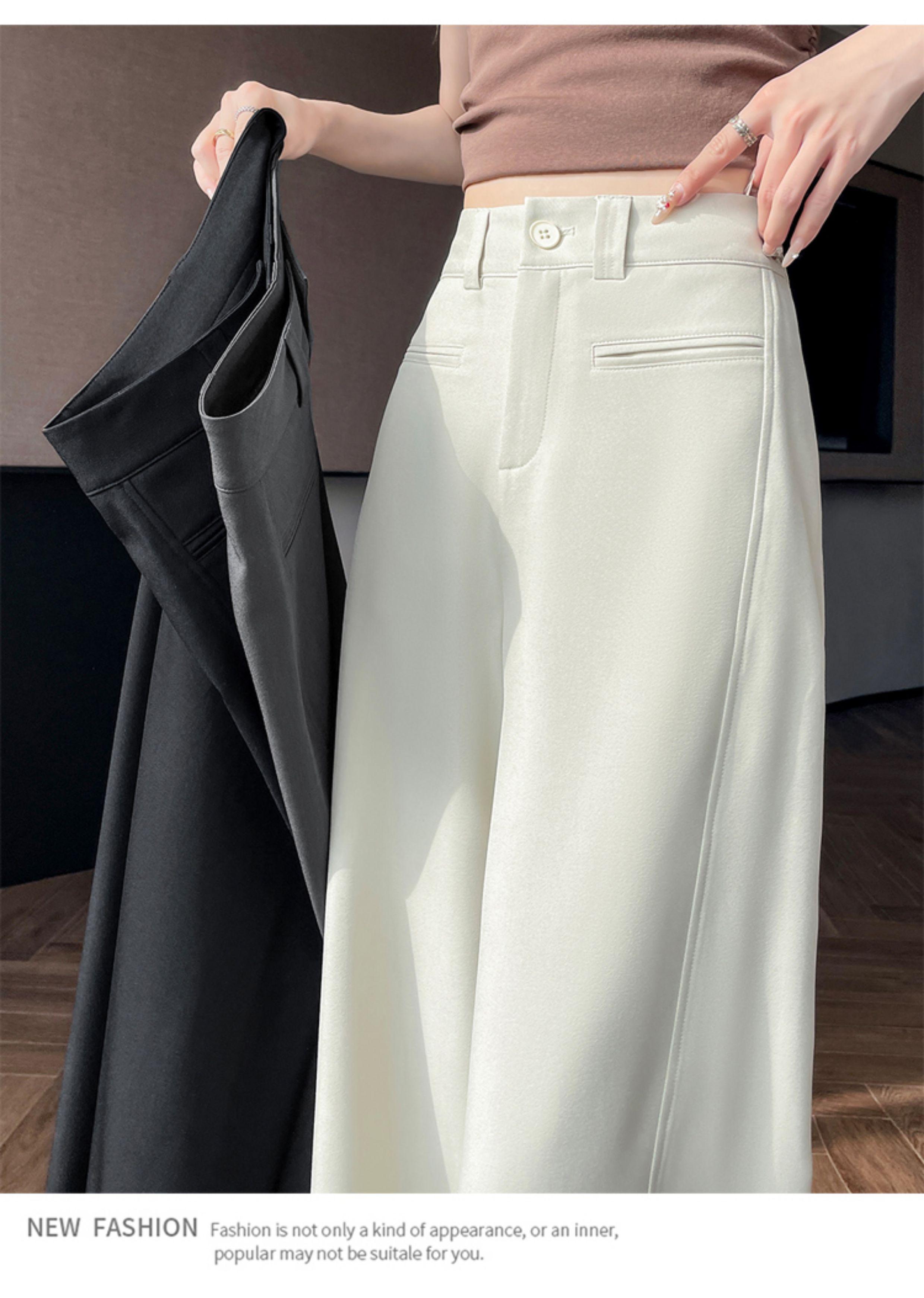 Pantalones de Traje Slim-Fit Grises para Mujer, Nuevo Estilo Primavera/Verano 2025, Caída de Alta Gama, Pierna Recta, Pantalones de Pierna Ancha hasta el Piso