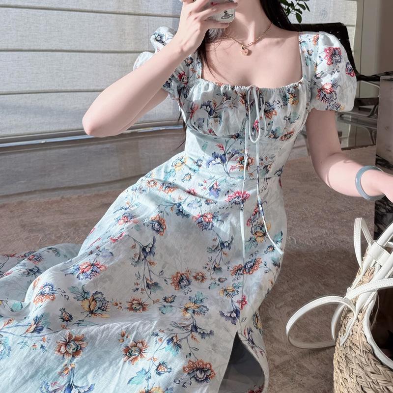 En Existencia P.Tre "Sirena de Sri Lanka" Vestido Clásico Francés Adelgazante de Lino Puro con Ajuste Elegante