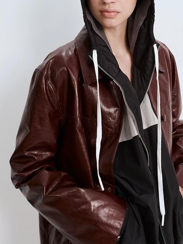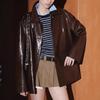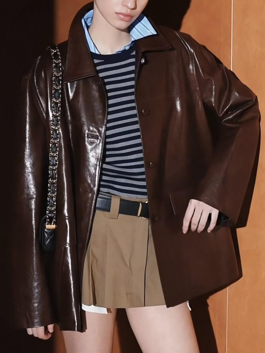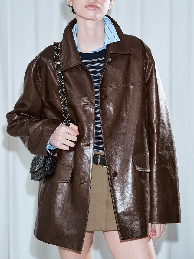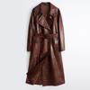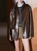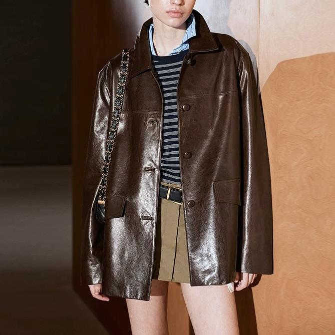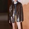 Chaqueta de Cuero Genuino Hn5176 Primavera Temprana Ligera Retro Casual Piel de Cabra Cera de Aceite Solapa a la Moda Versión Ancha Chaqueta Cortavientos para Mujer