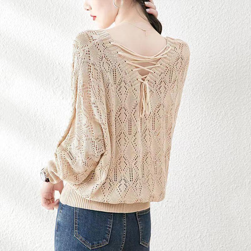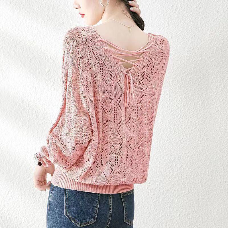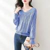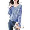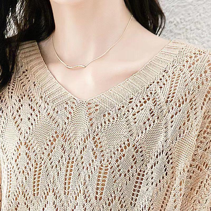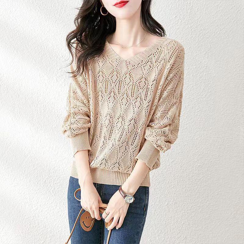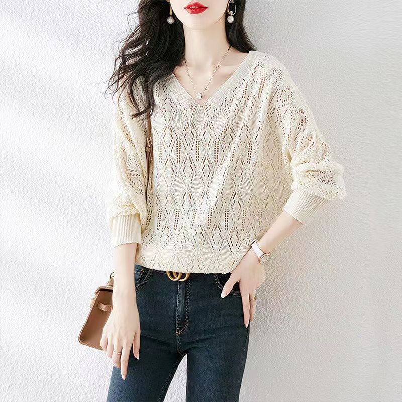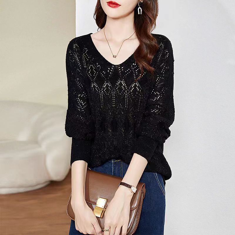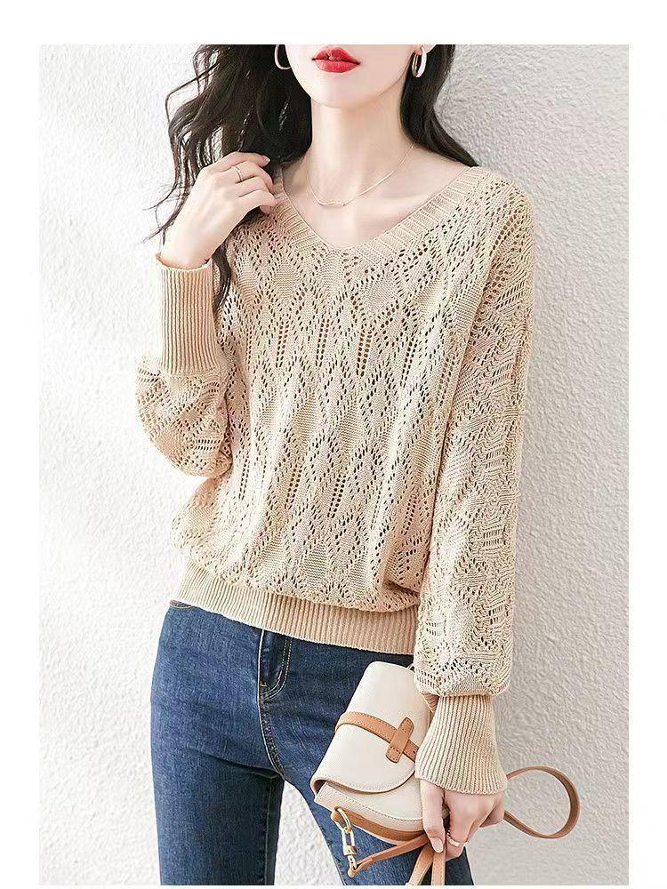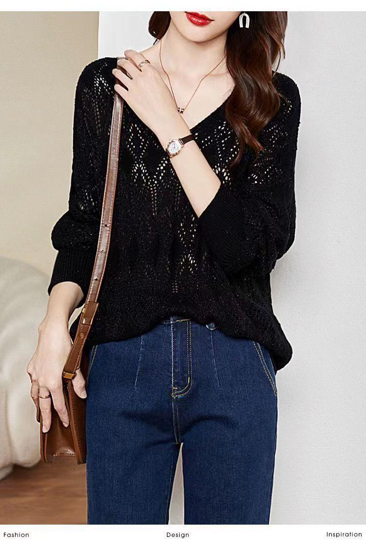 Suéter de punto fino con cuello en V para mujer, blusa holgada y cómoda con diseño de camisa para uso exterior, a principios de otoño