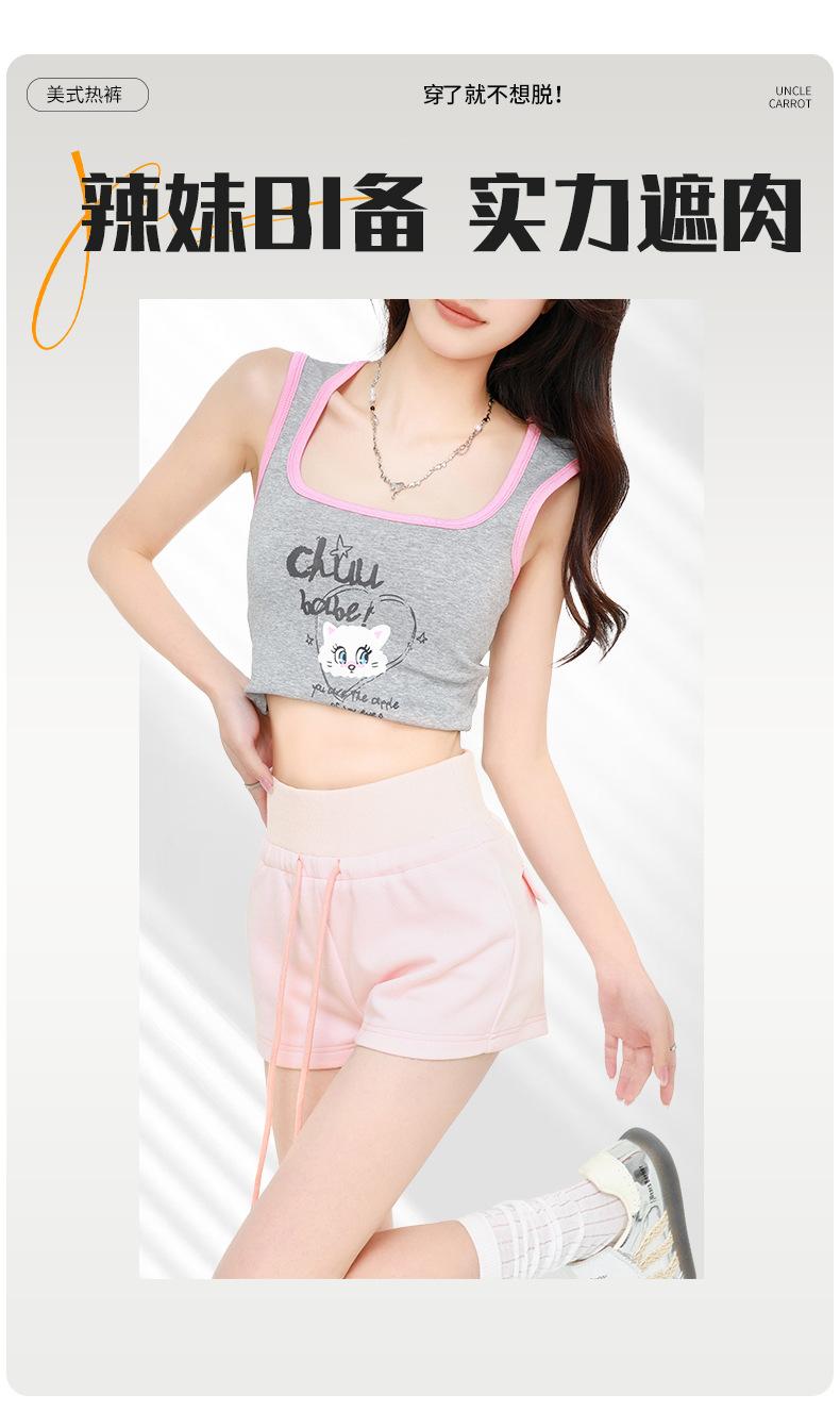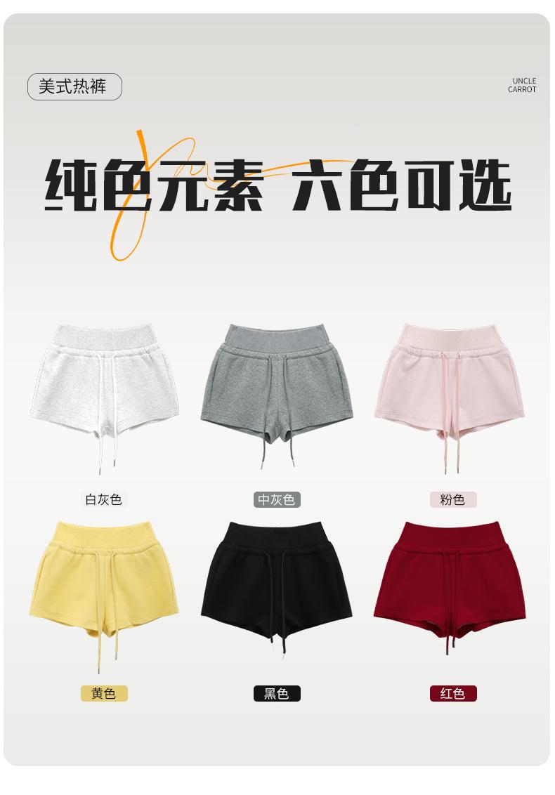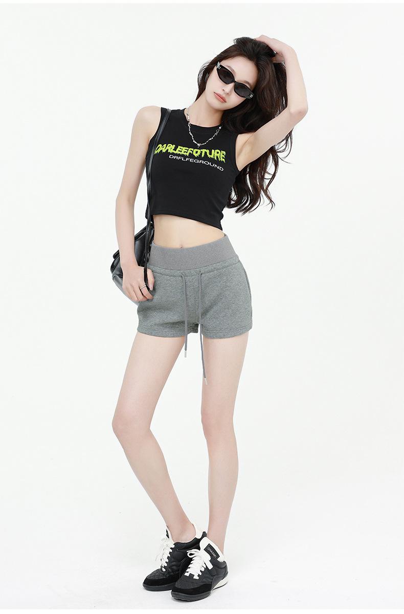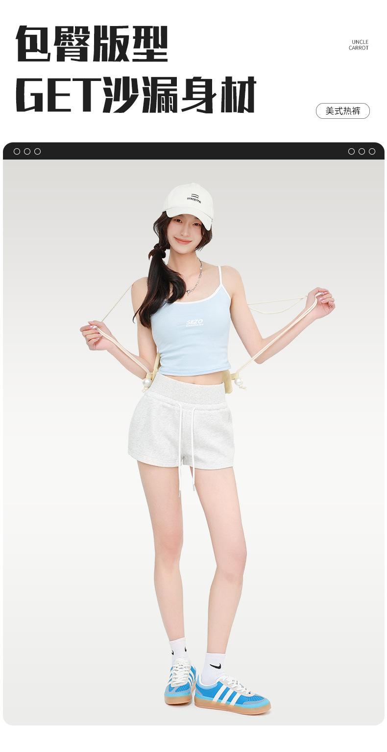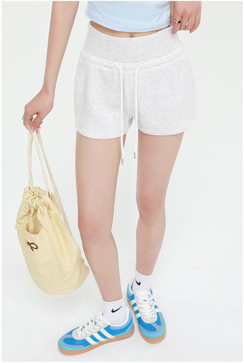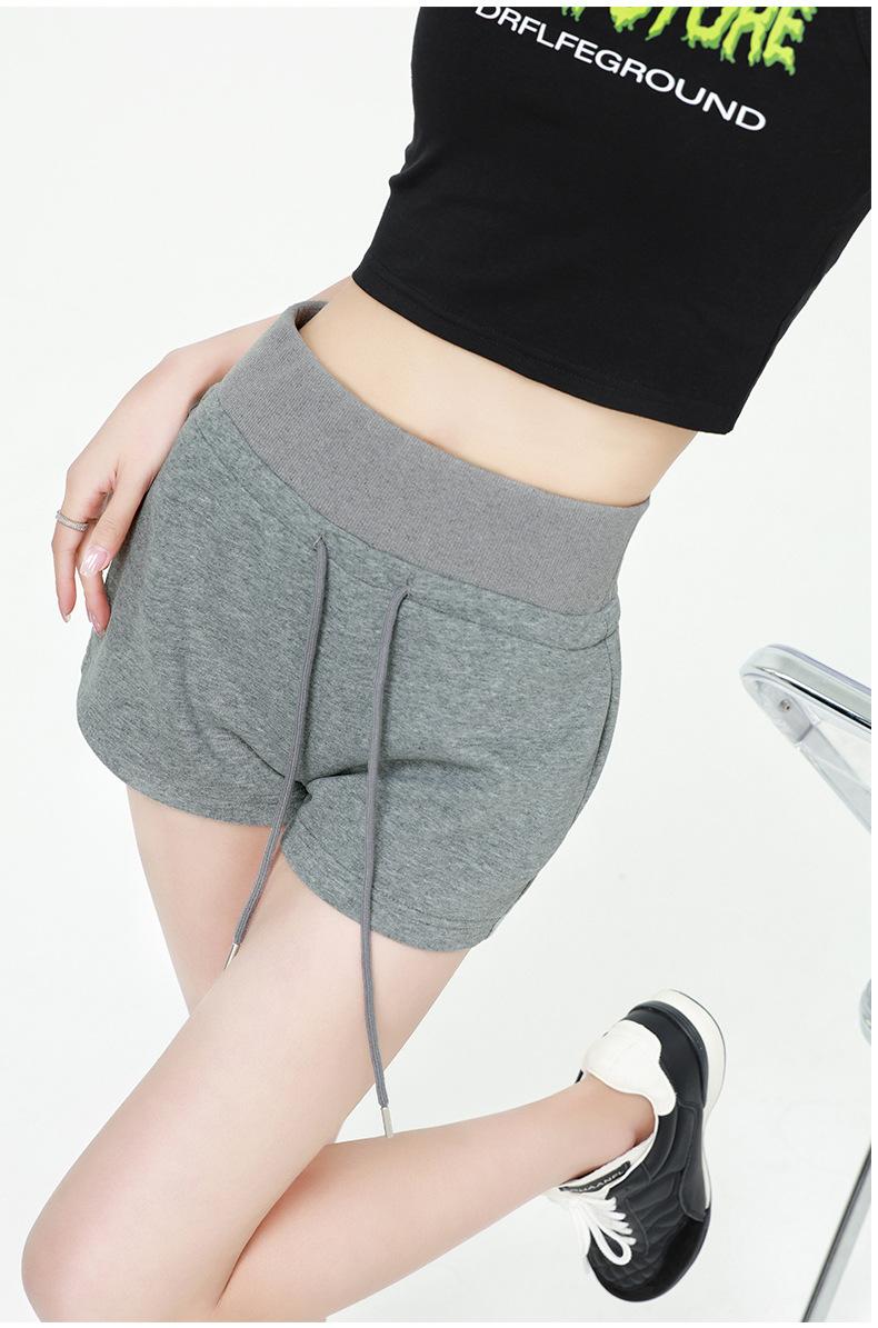 Shorts Deportivos Grises para Mujer 2025 Verano Nuevo Cintura Alta Cordón Pantalones de Tres Puntos American Hot Girl Cubre Caderas Casual Pantalones Cortos
