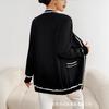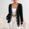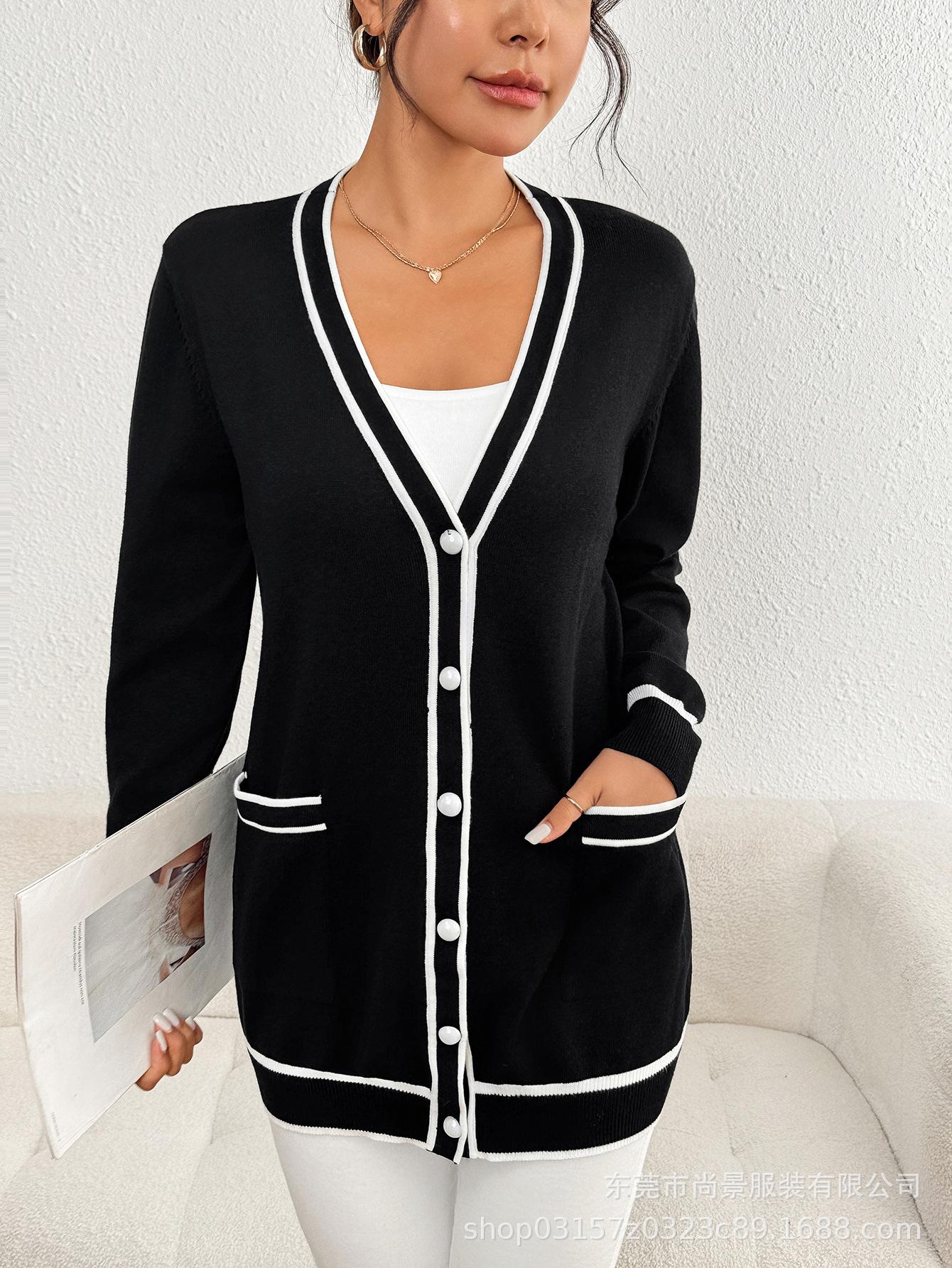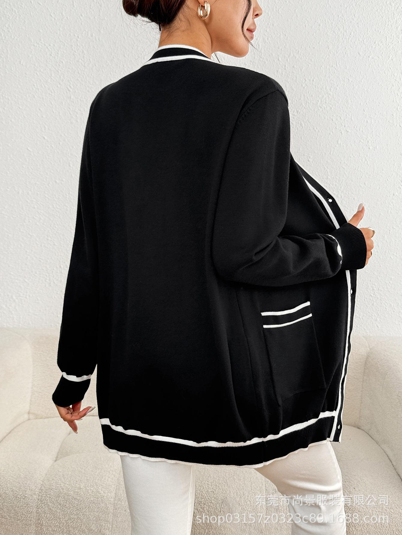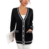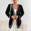 Suéter de Mujer de Cuello en V Transfronterizo Europeo y Americano Otoño e Invierno Chaqueta de Punto Suelta Estilo Botón Cárdigan de Manga Larga de Color Puro con Bolsillo de Solapa Pantalones
