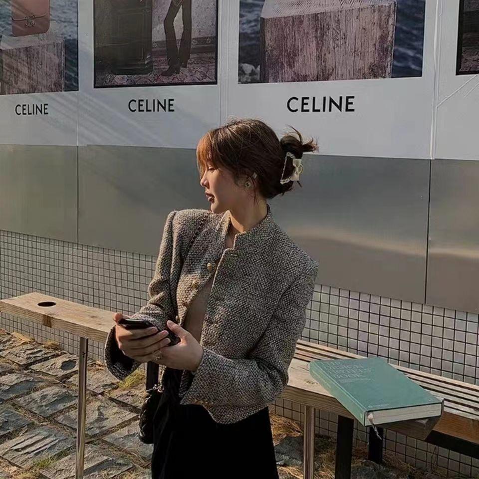 Abrigo Corto Nuevo de Estilo Vintage Fragante para Primavera y Otoño para Mujer Tops de Lana de Estilo Coreano para Madre Pequeña