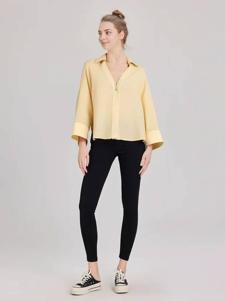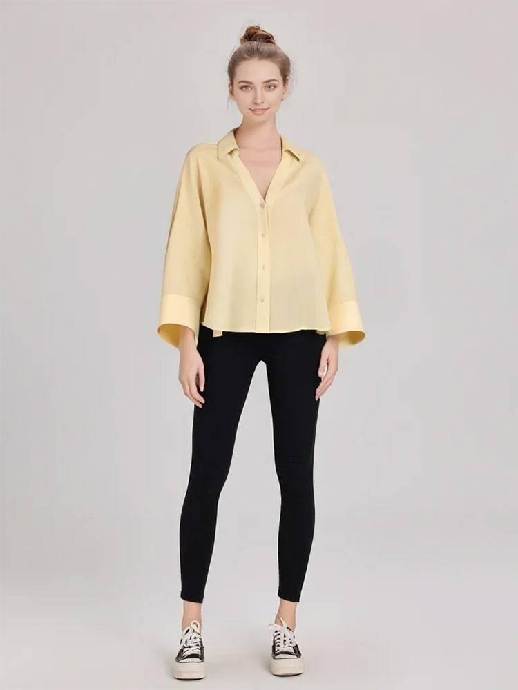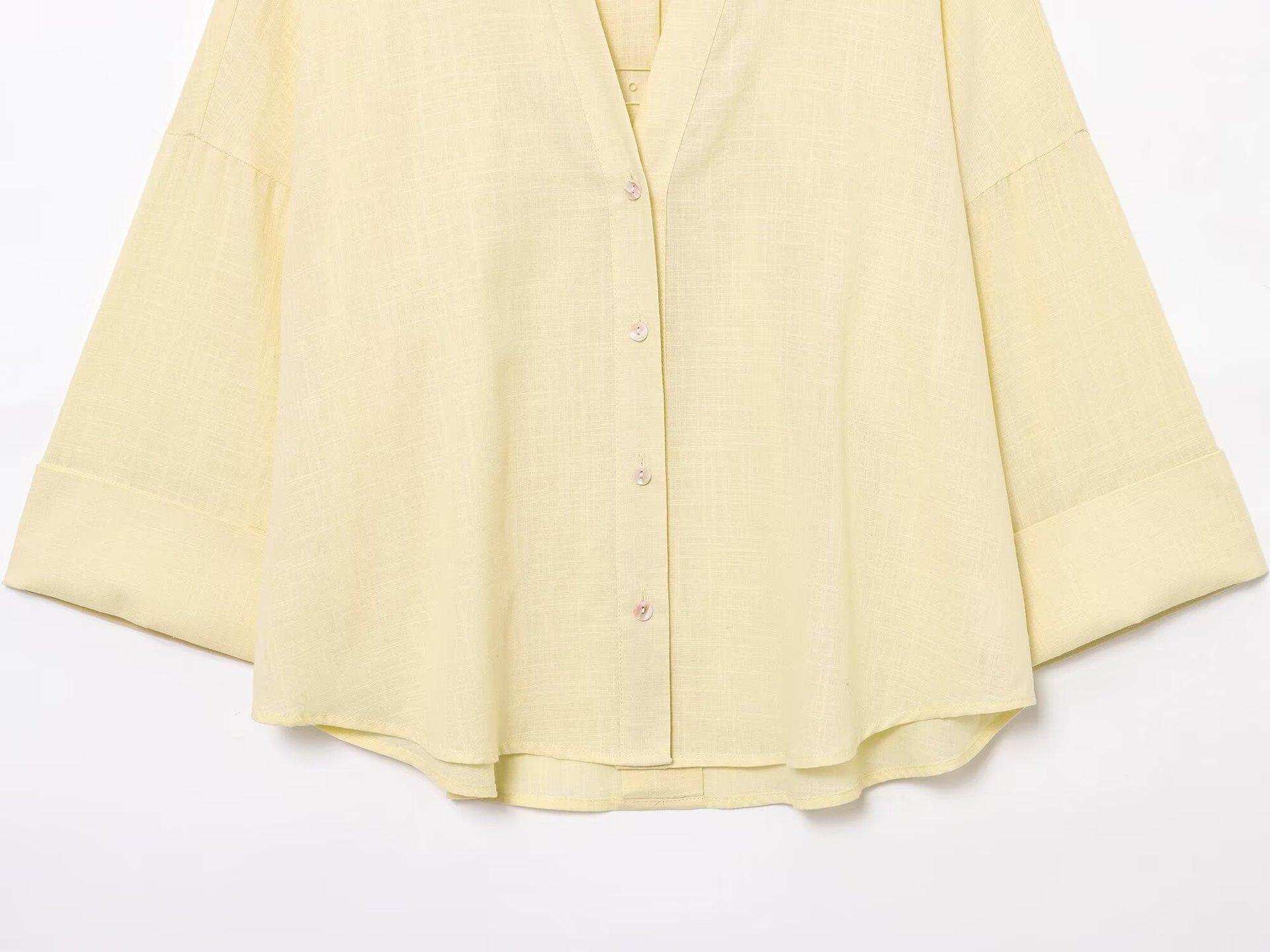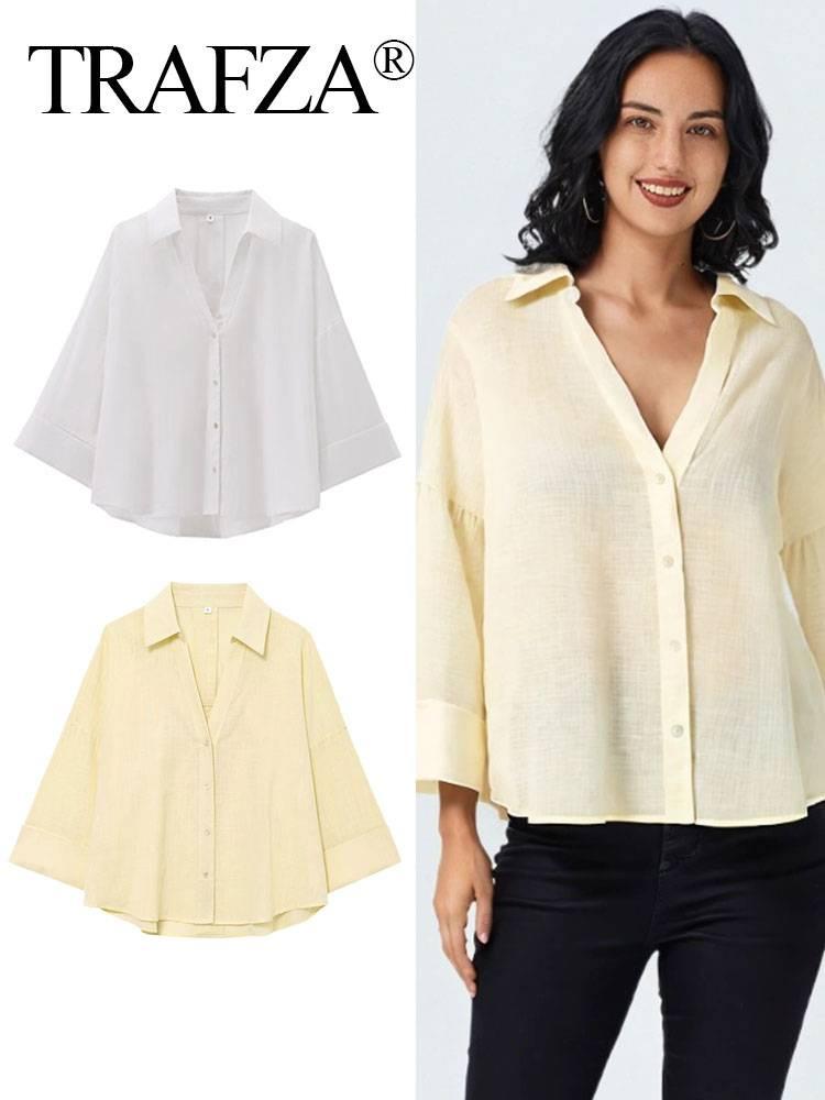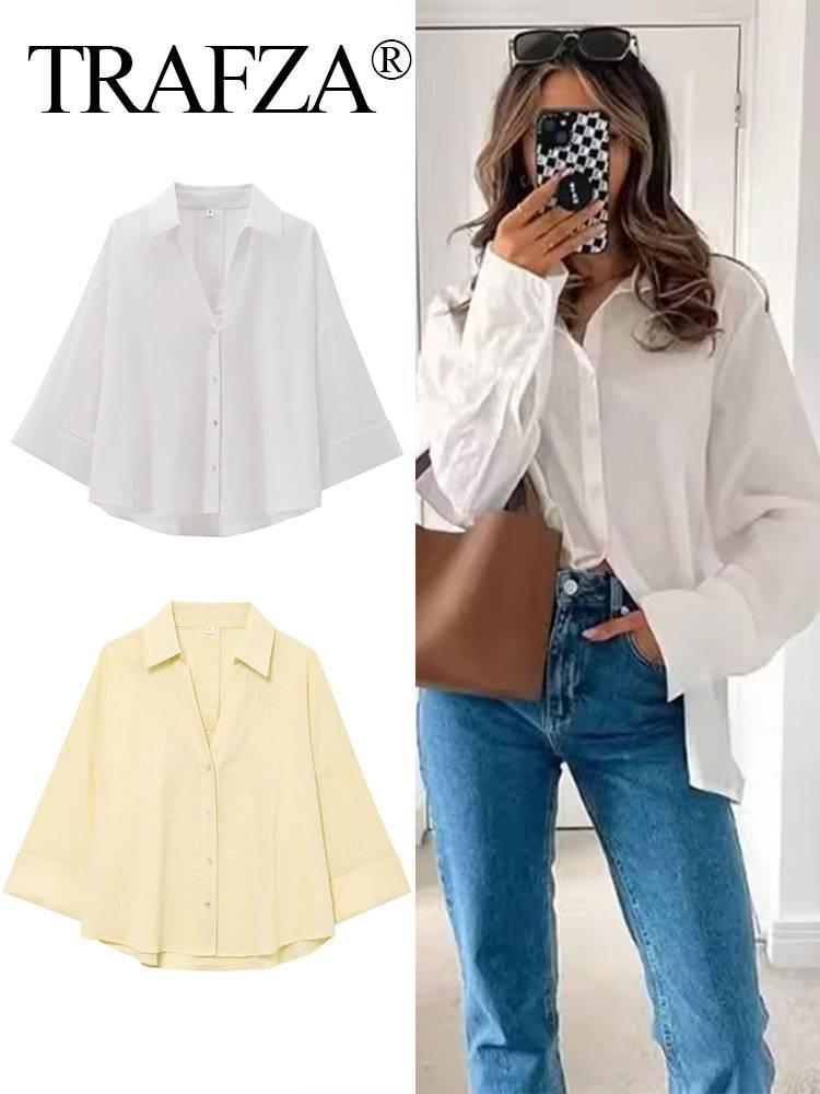 Verano Transfronterizo Nuevo Moda Casual Estilo Hermana Real Camisas de Manga Ancha Tops Versátiles para Mujer