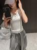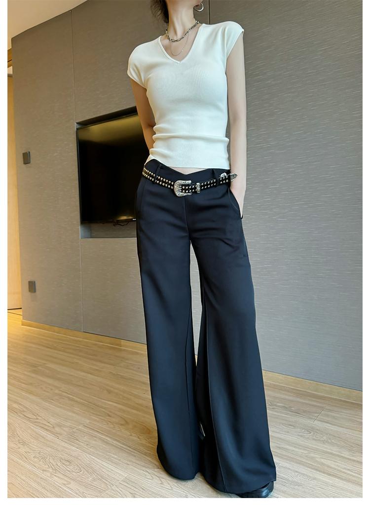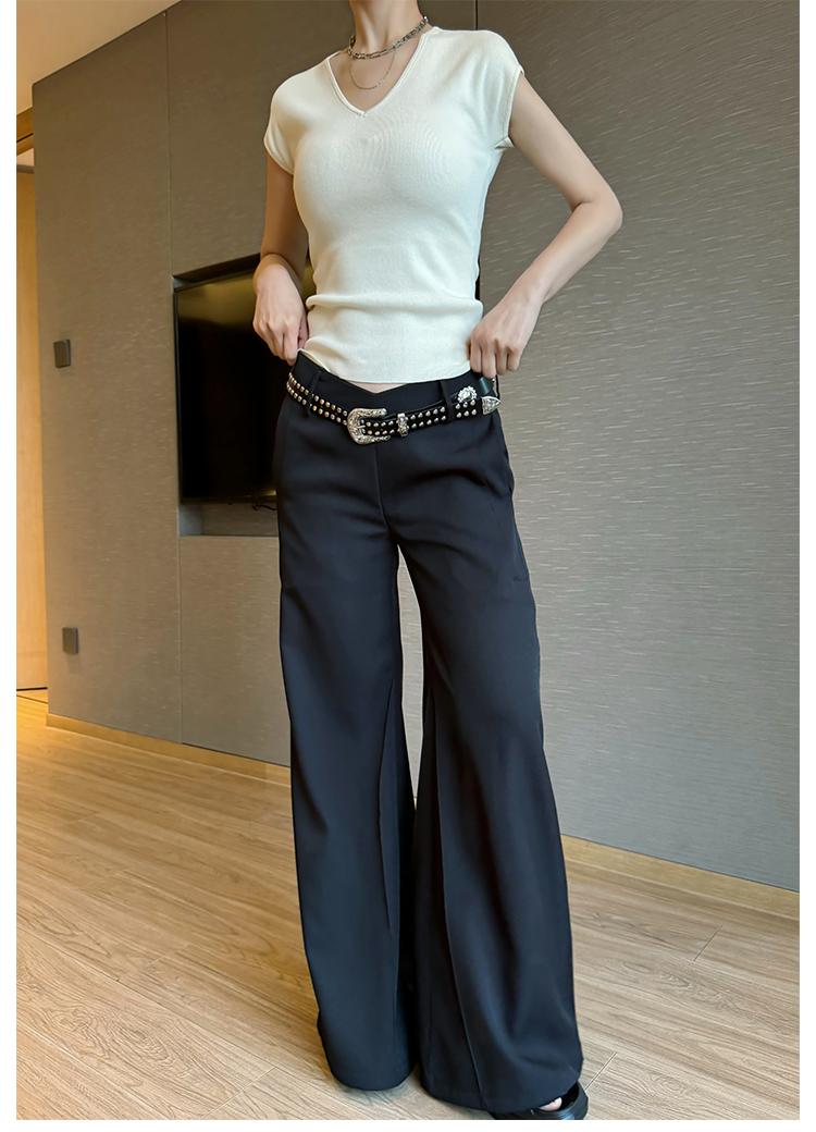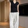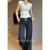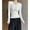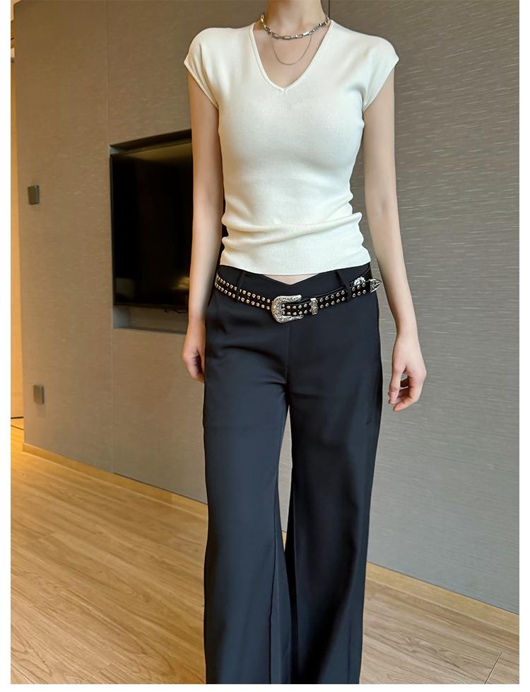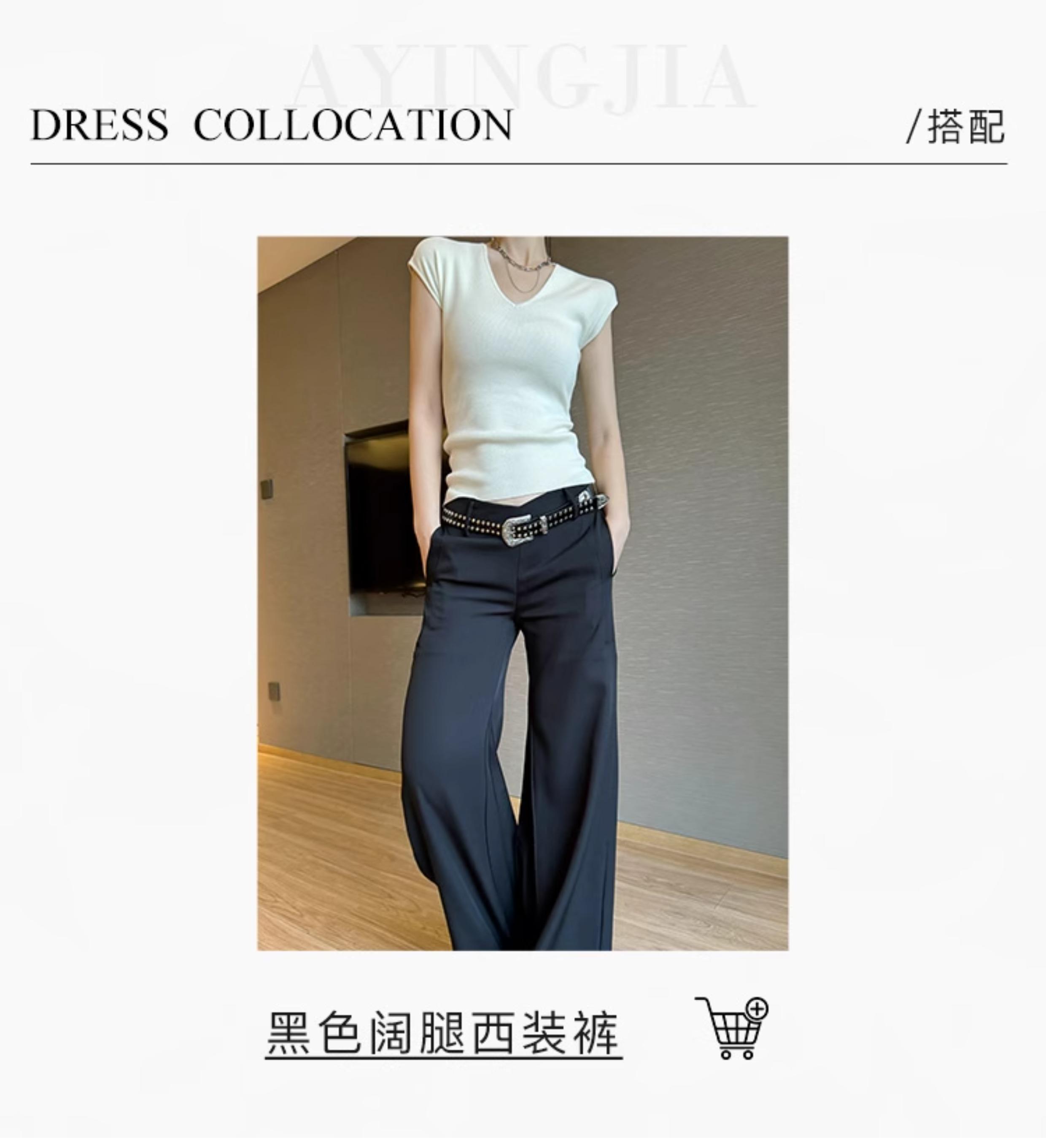Camiseta de Mujer de Manga Corta con Cuello en V Primavera Hombro Derecho Corto Mangas Cortas Volantes Tejido de Punto de Seda de Hielo Top Fino para Fondo