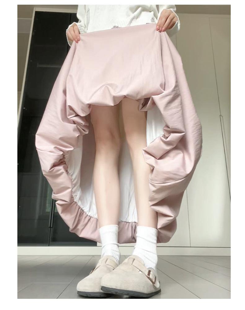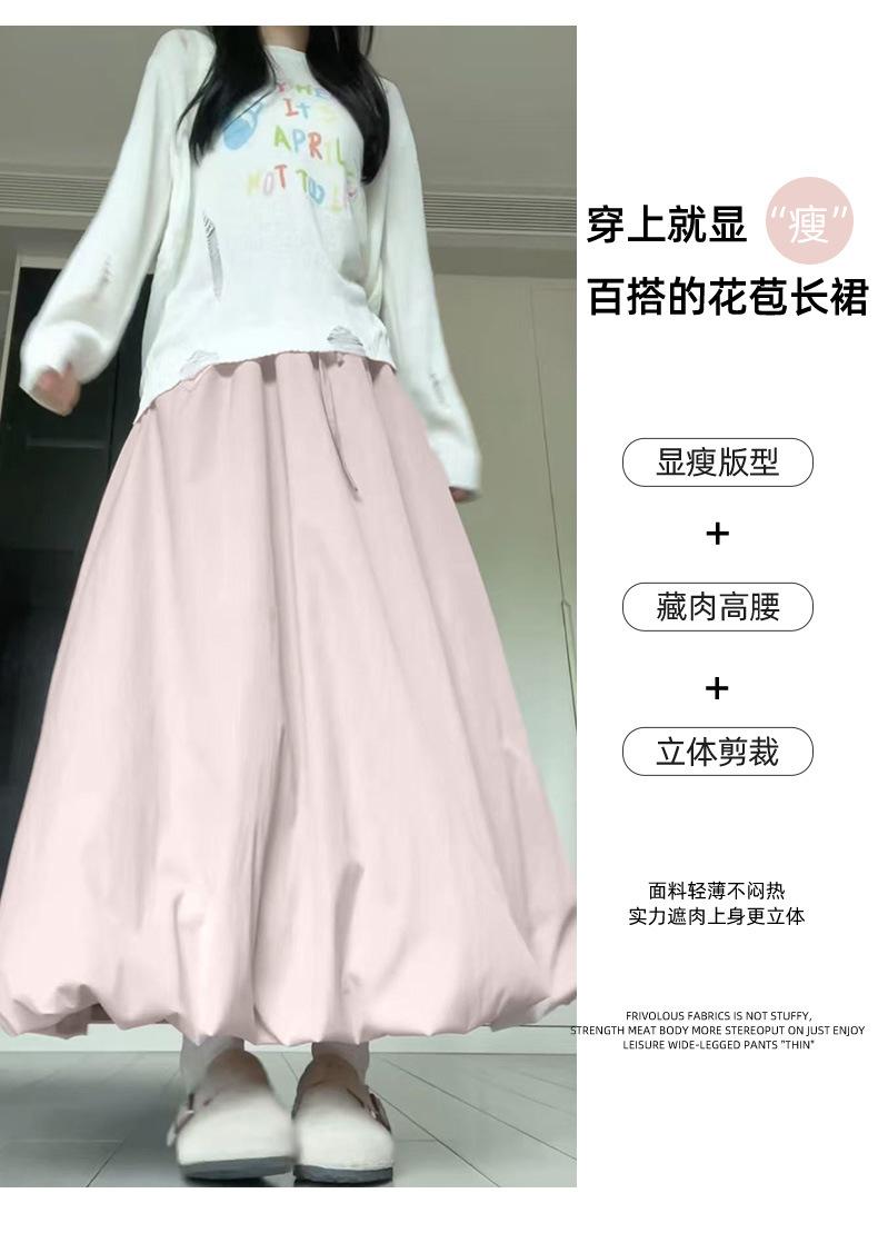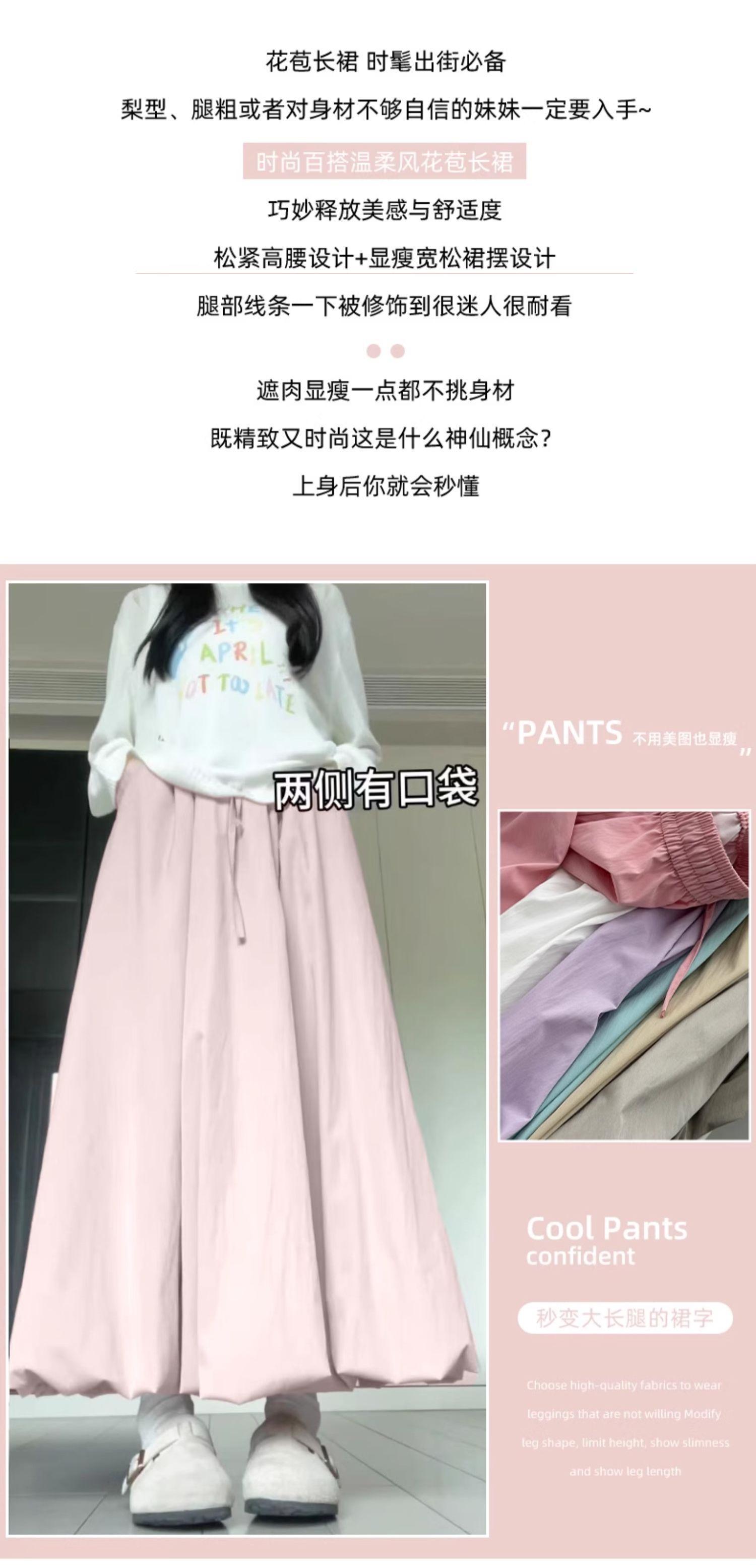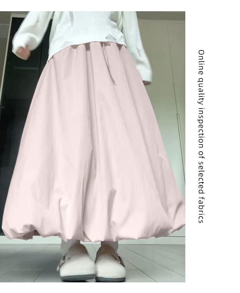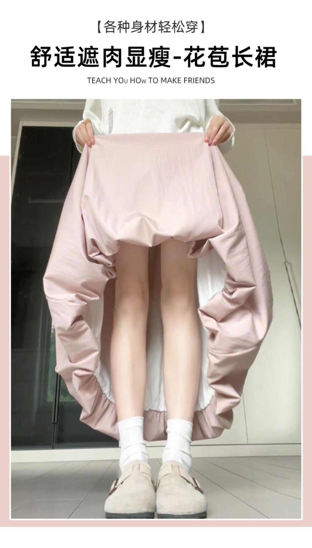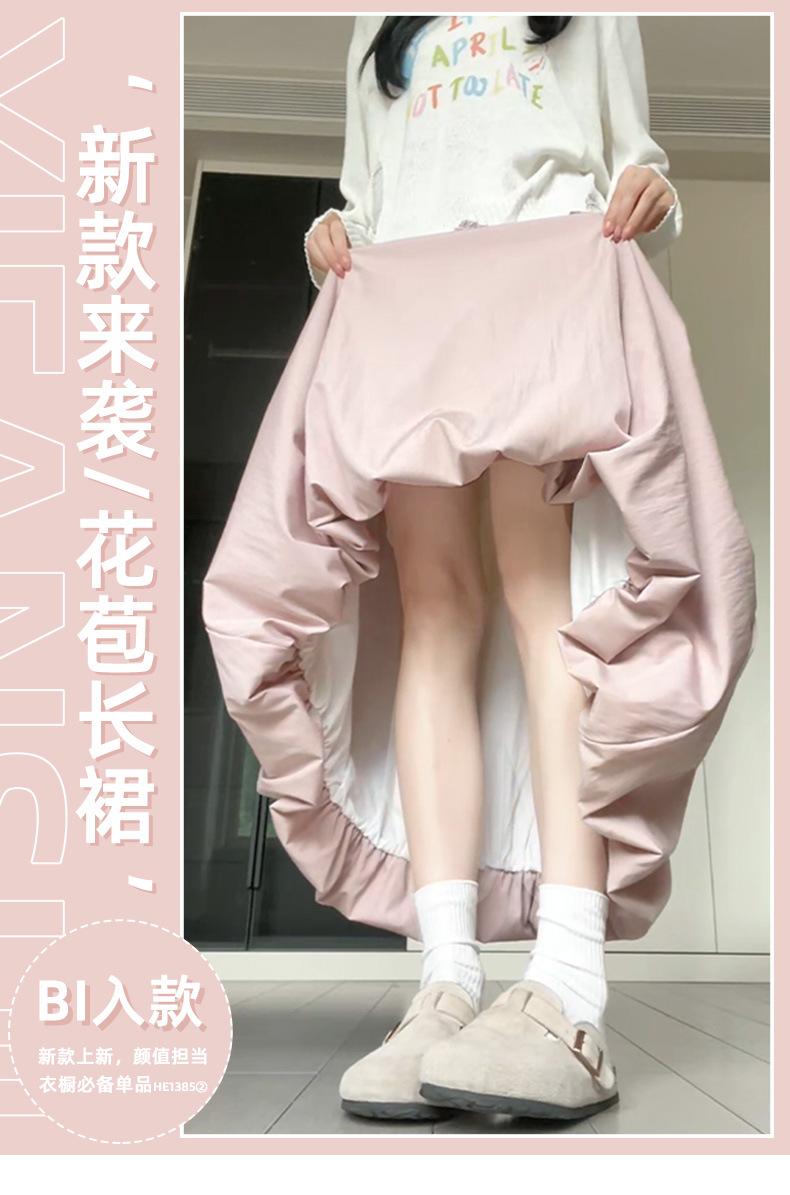 Falda Rosa de Capullo de Flor para Mujer Verano Nuevo Cintura Alta Cubridora Look Adelgazante Línea A Casual y Relajada Falda Linterna de Seda Helada