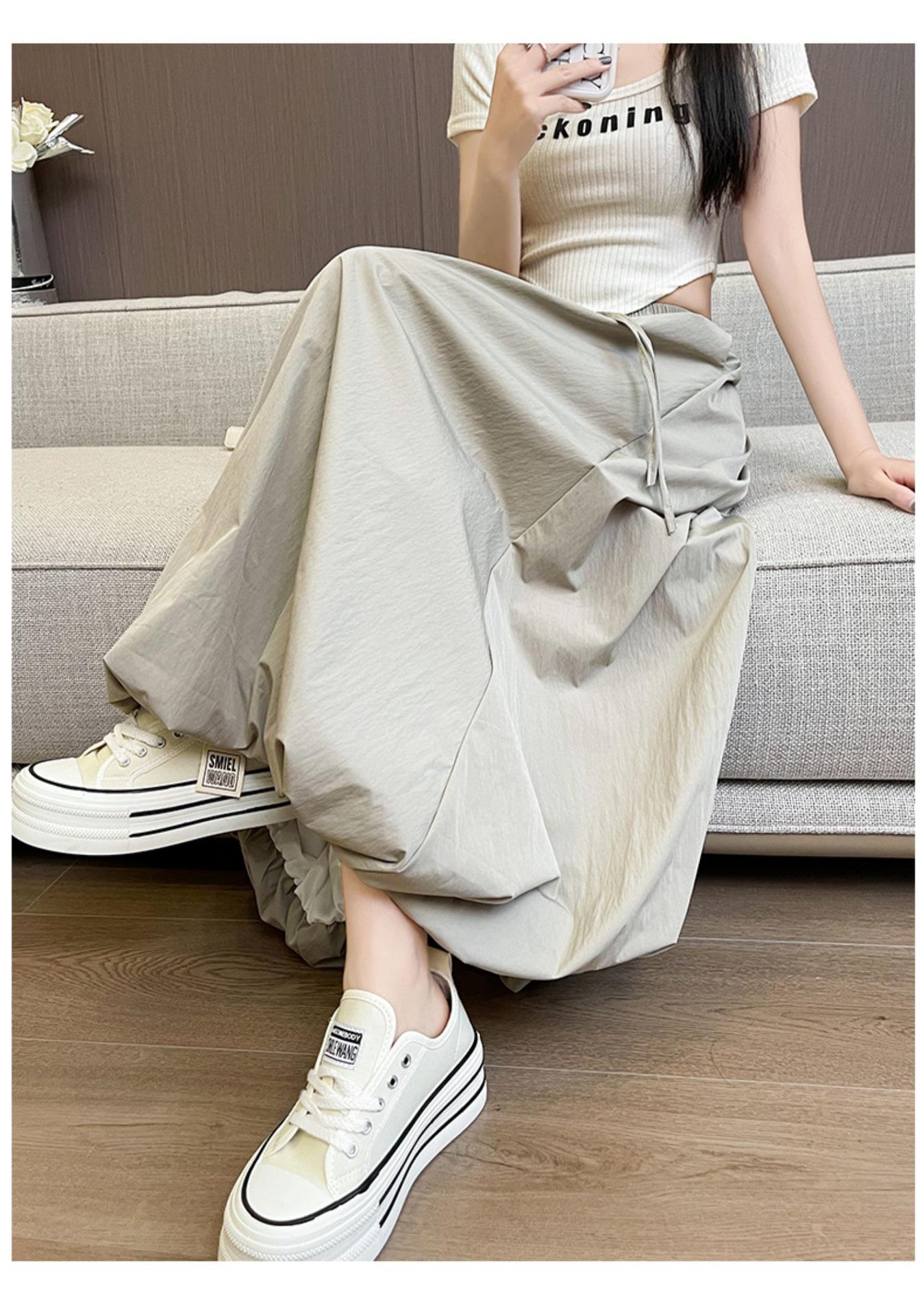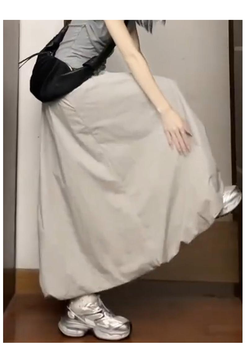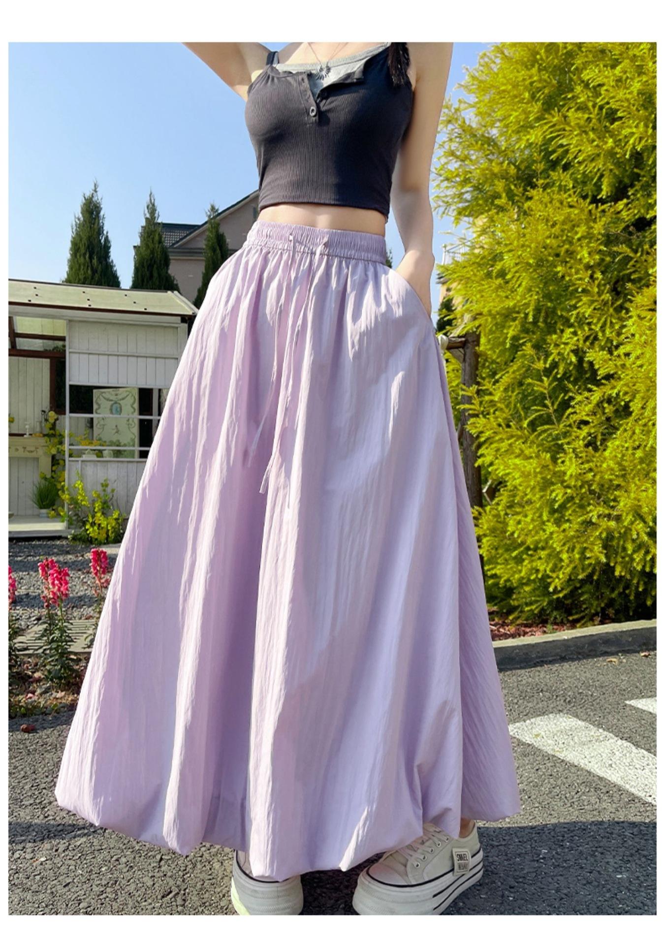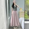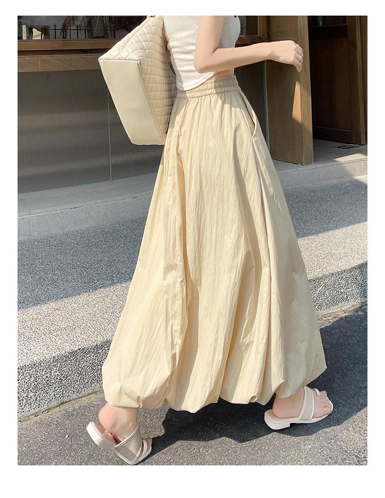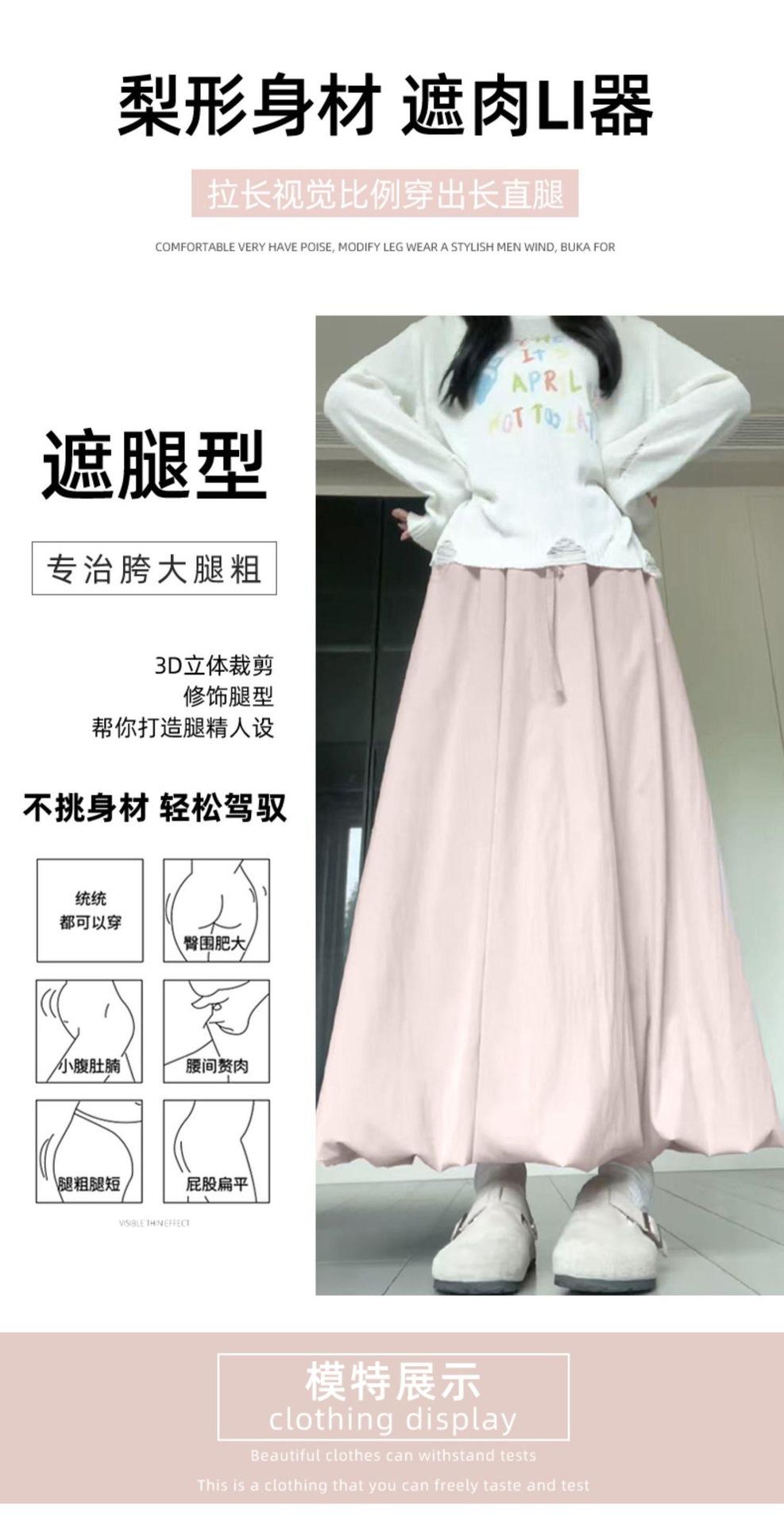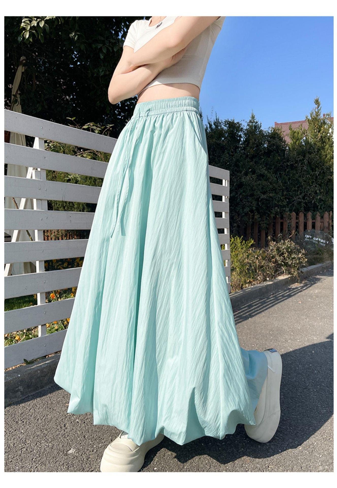 Falda Rosa de Capullo de Flor para Mujer Verano Nuevo Cintura Alta Cubridora Look Adelgazante Línea A Casual y Relajada Falda Linterna de Seda Helada