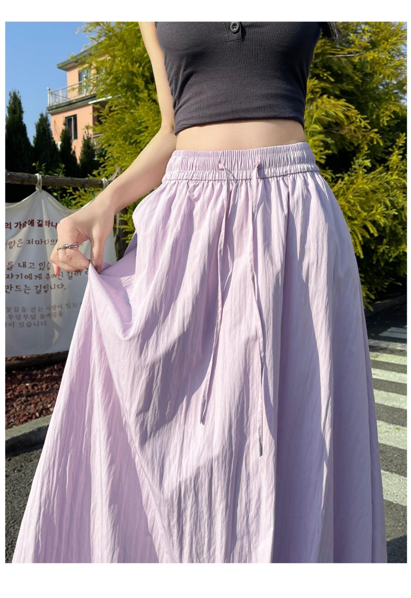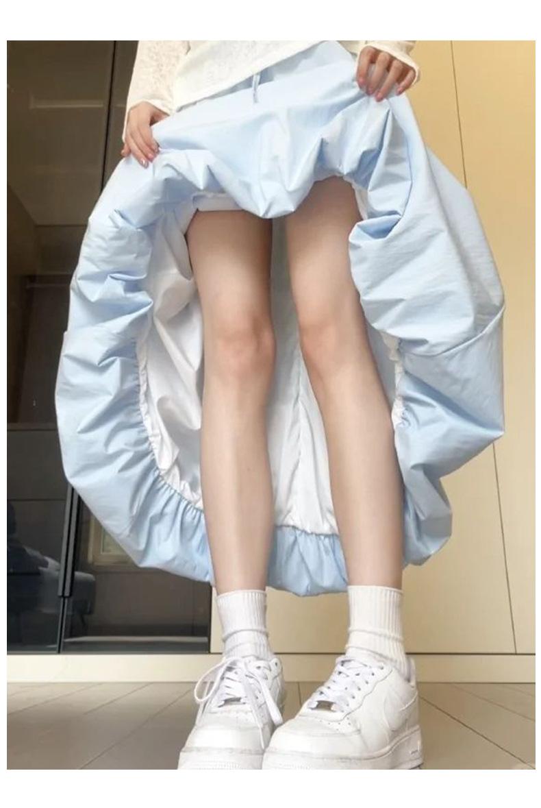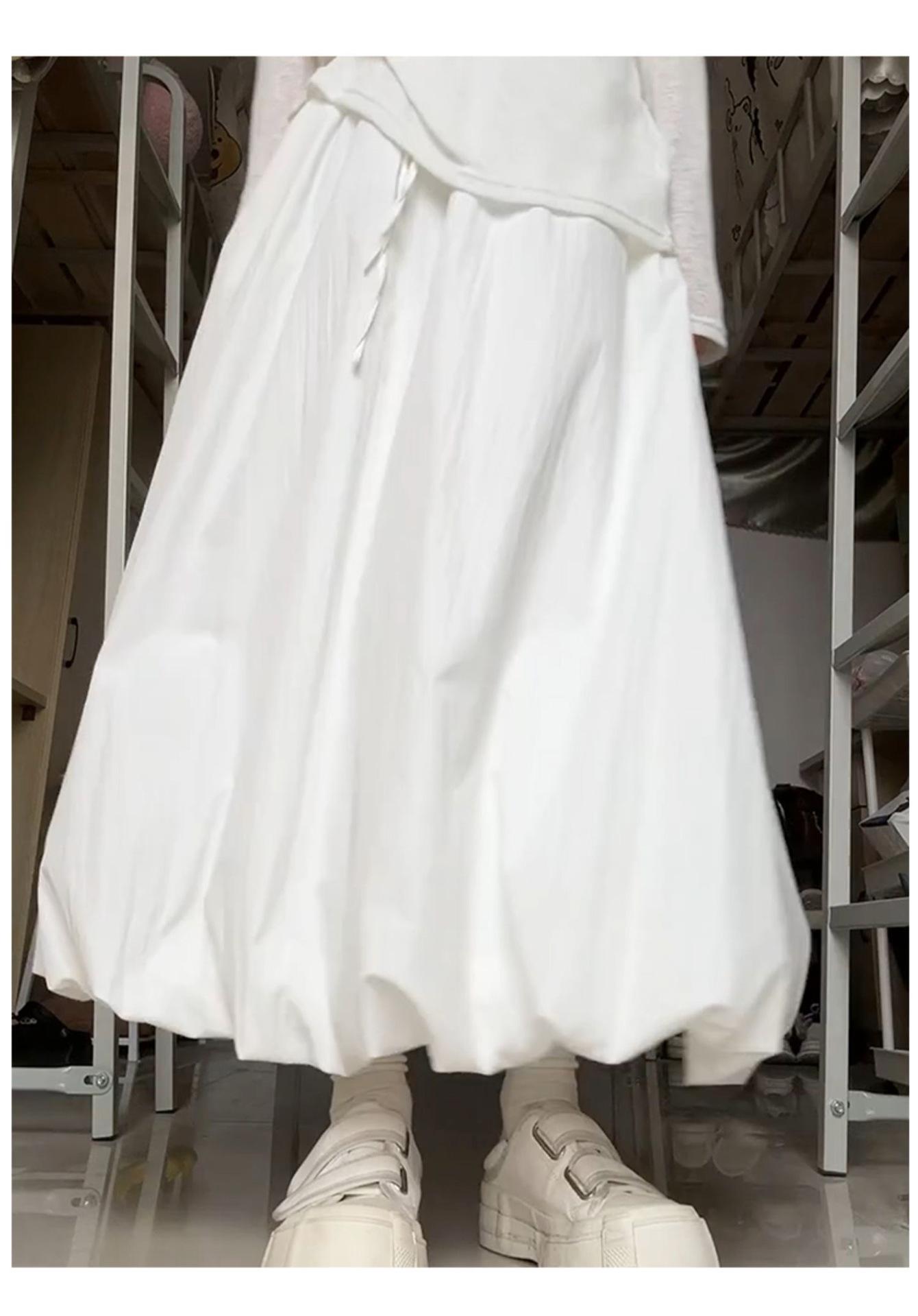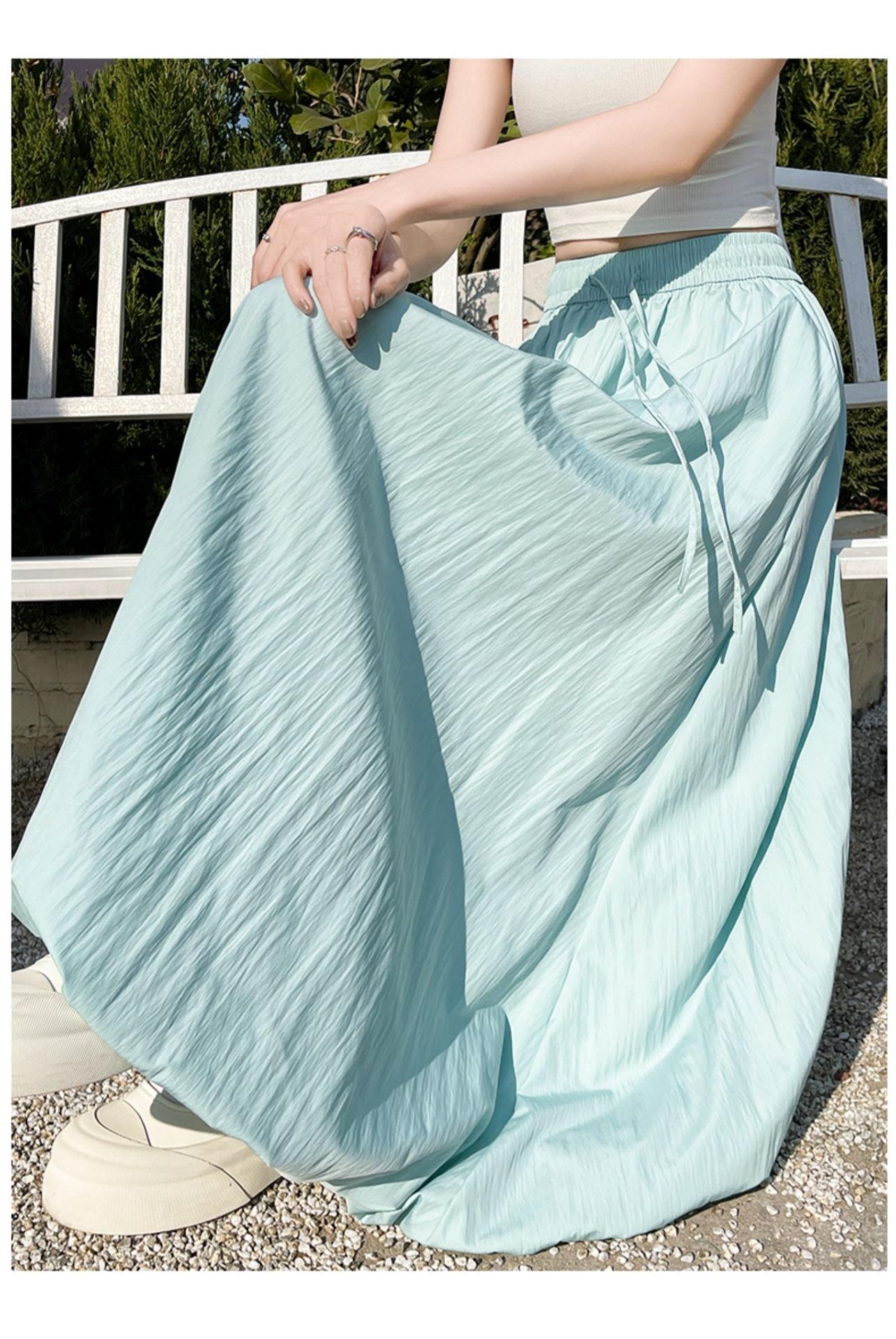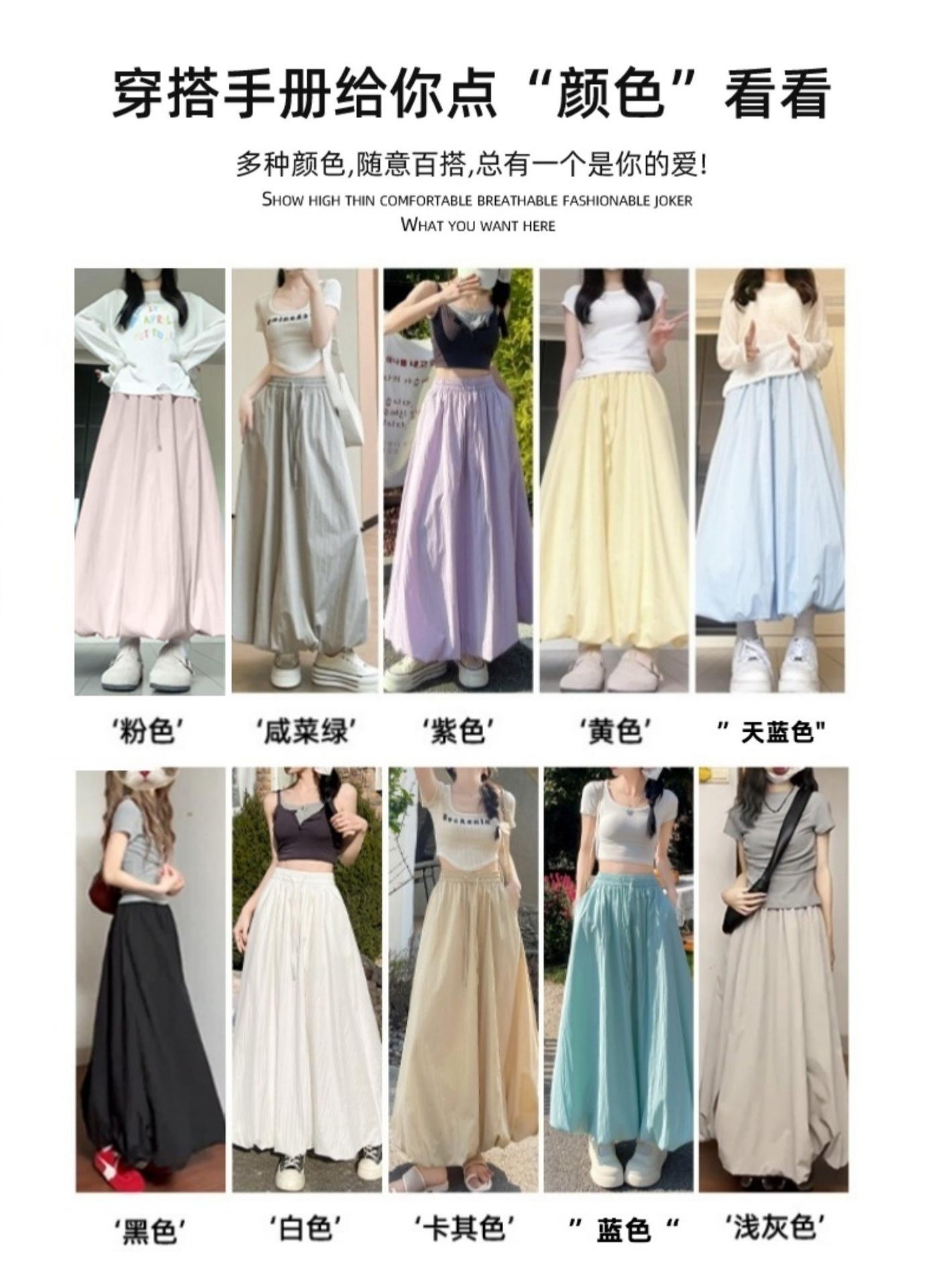 Falda Rosa de Capullo de Flor para Mujer Verano Nuevo Cintura Alta Cubridora Look Adelgazante Línea A Casual y Relajada Falda Linterna de Seda Helada