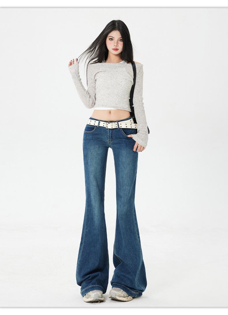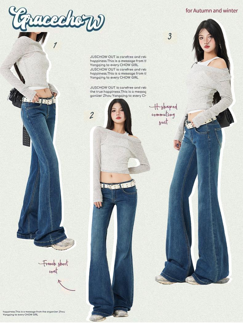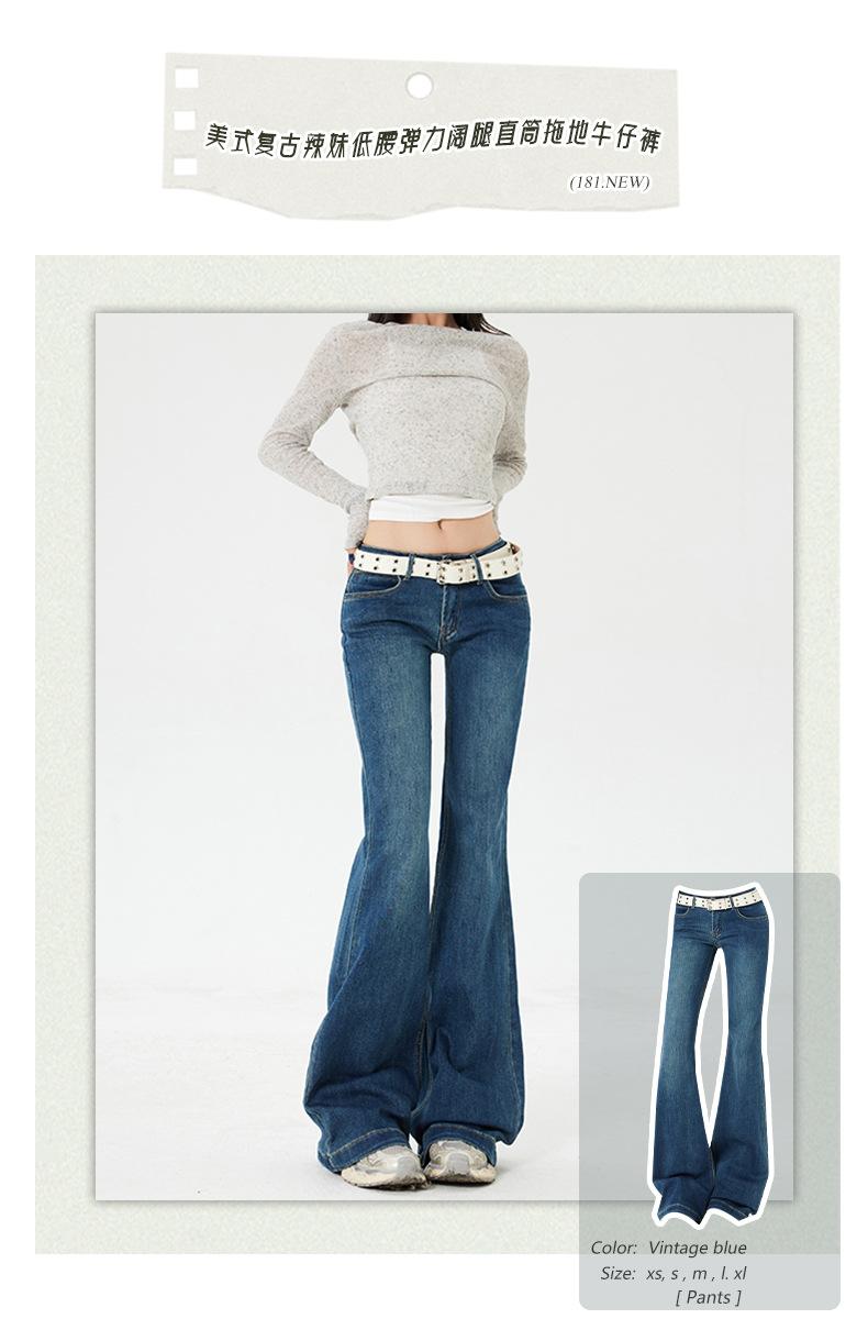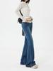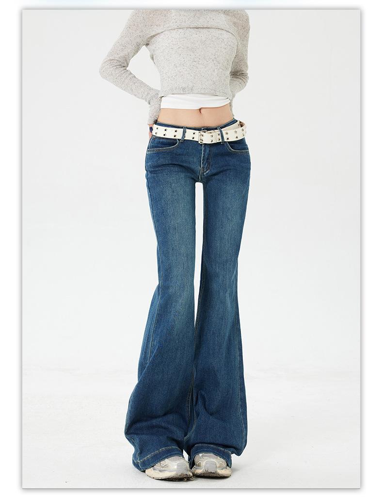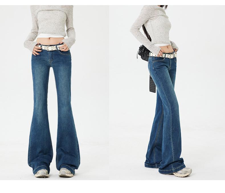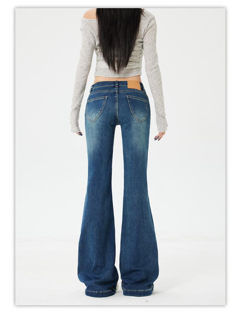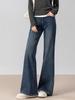 Jeans Acampanados Azules Oscuros No Ajustados para Mujer, Nuevos Otoño Tiro Bajo Ajustado Estilo Americano Pierna Recta Pantalones Campana