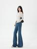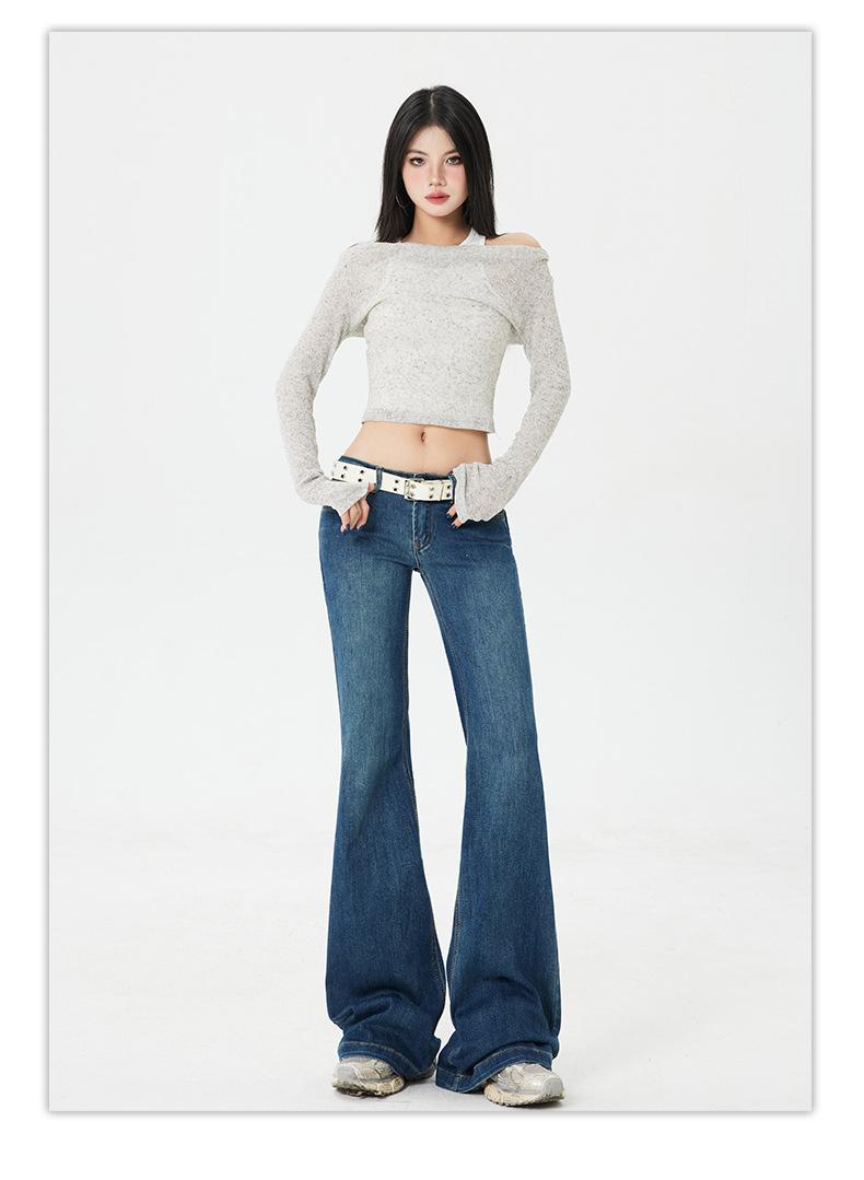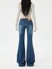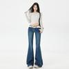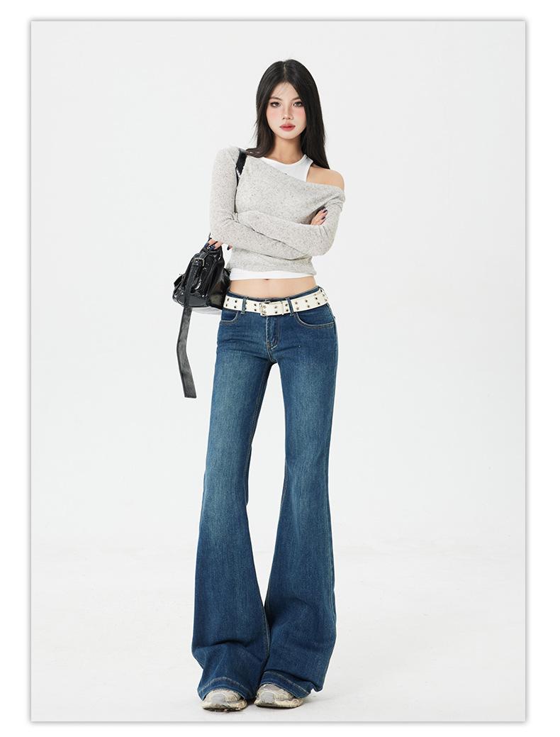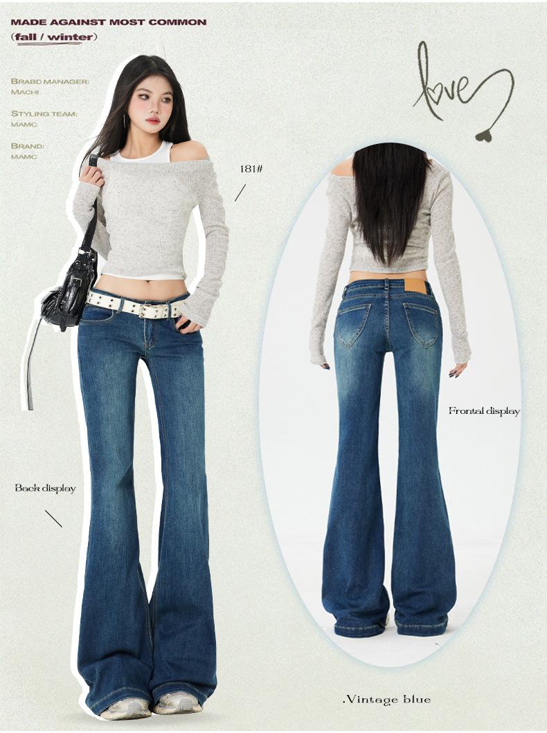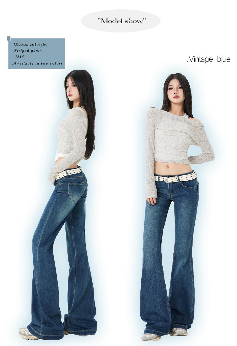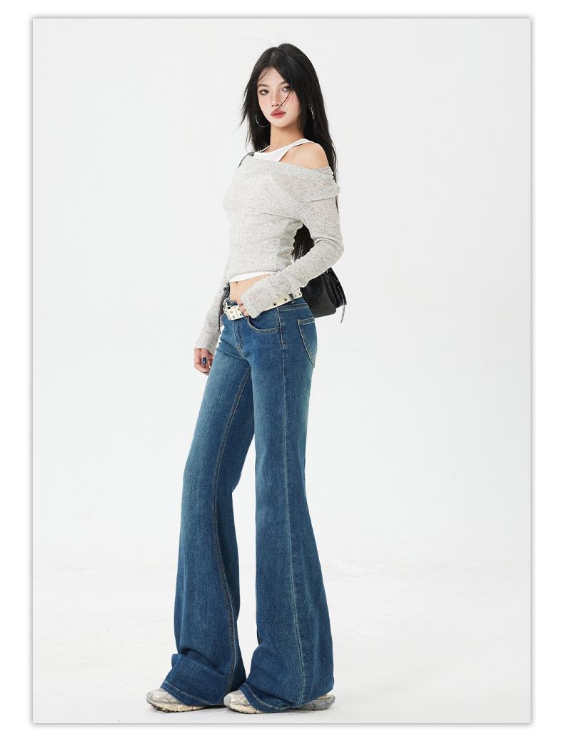 Jeans Acampanados Azules Oscuros No Ajustados para Mujer, Nuevos Otoño Tiro Bajo Ajustado Estilo Americano Pierna Recta Pantalones Campana