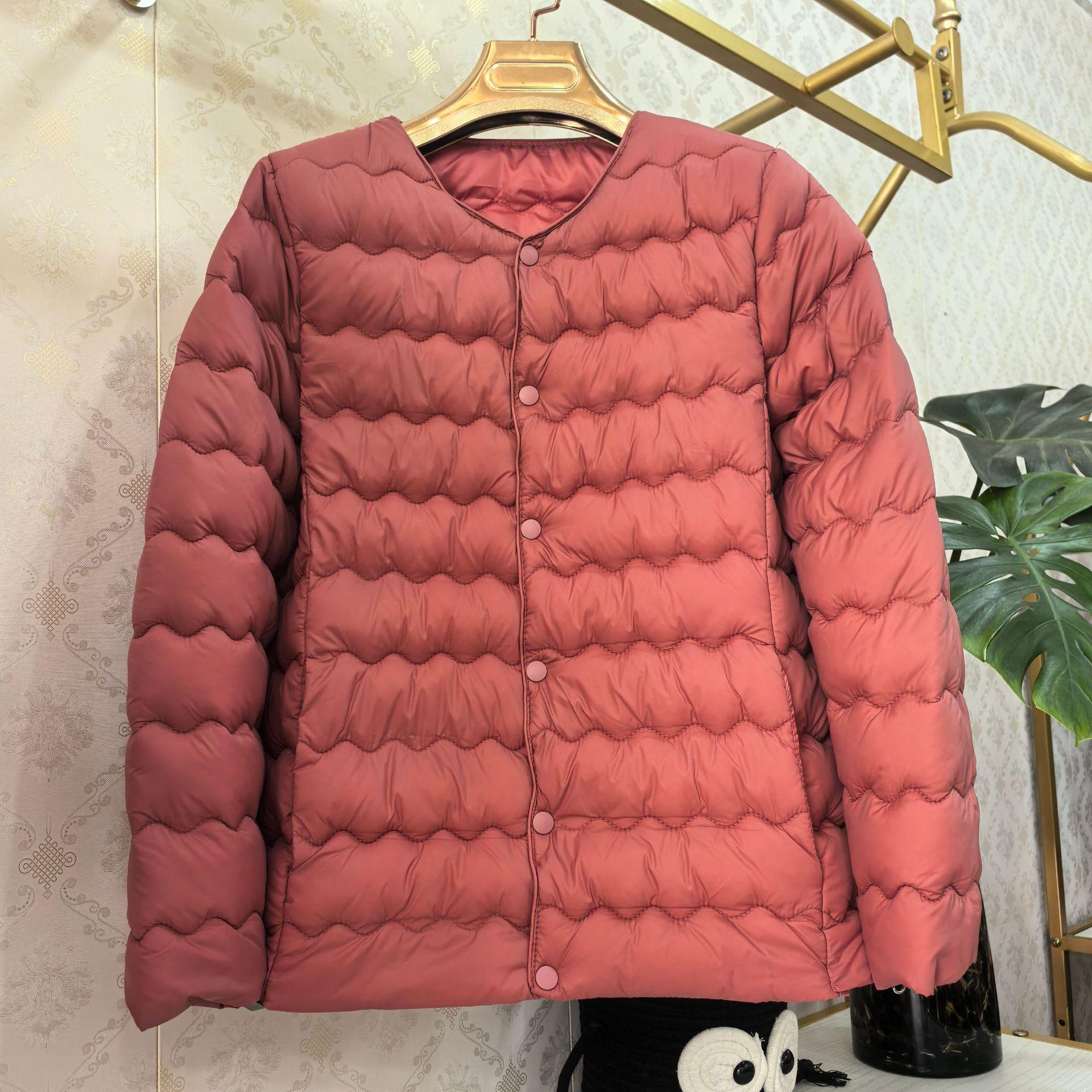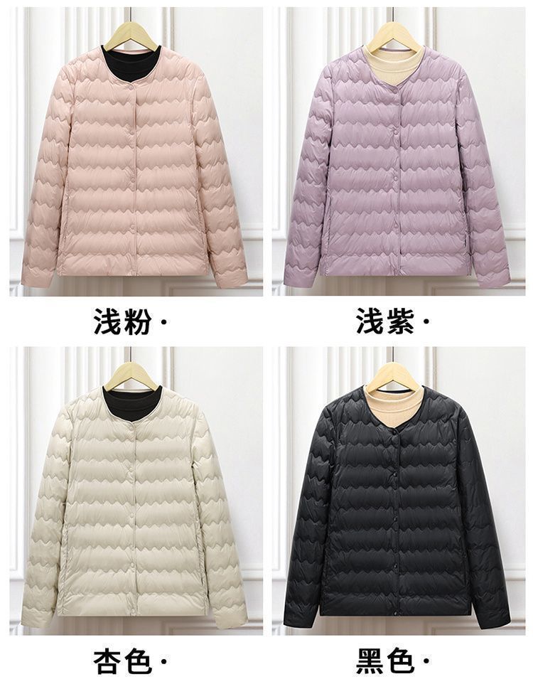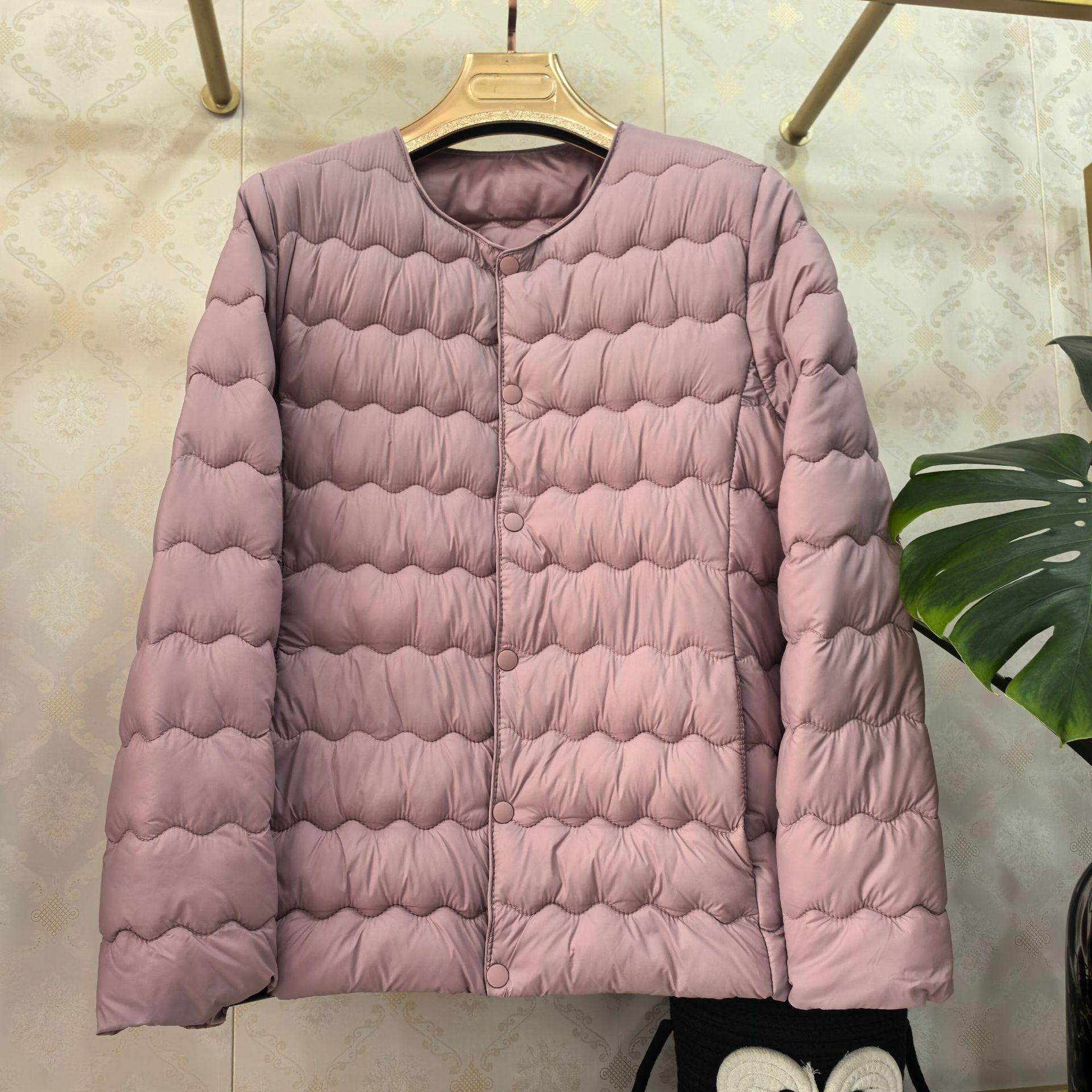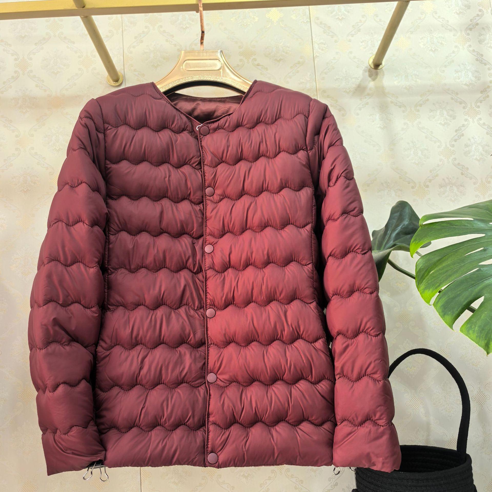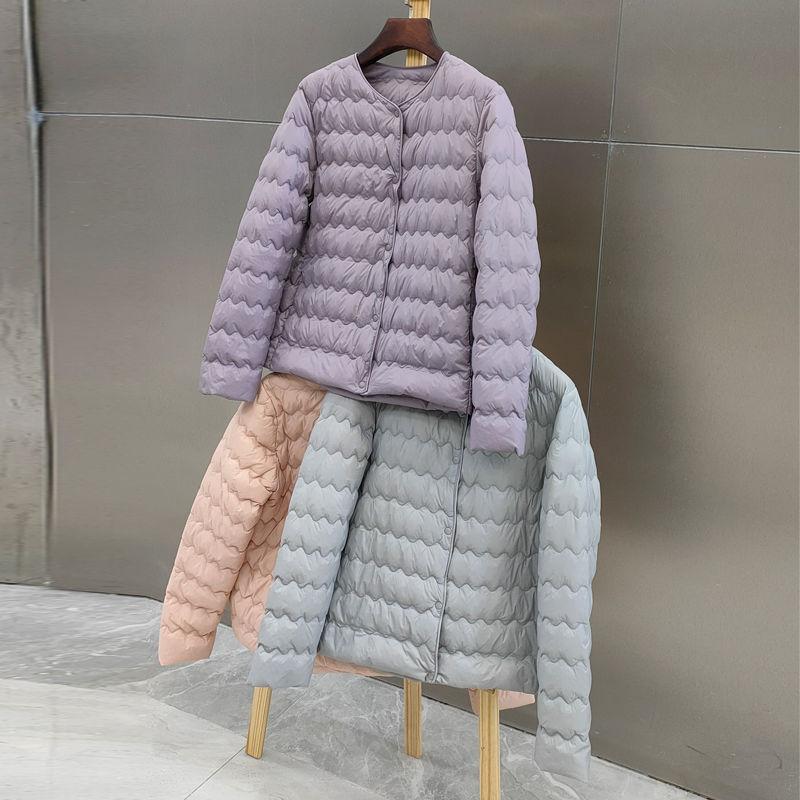 Nueva Chaqueta Ligera de Algodón para Mujer para Otoño e Invierno, Abrigo Corto de Algodón Ondulado de Moda, Chaqueta Casual Slim Sencilla de Cuello Redondo con Forro Interior para Mujer