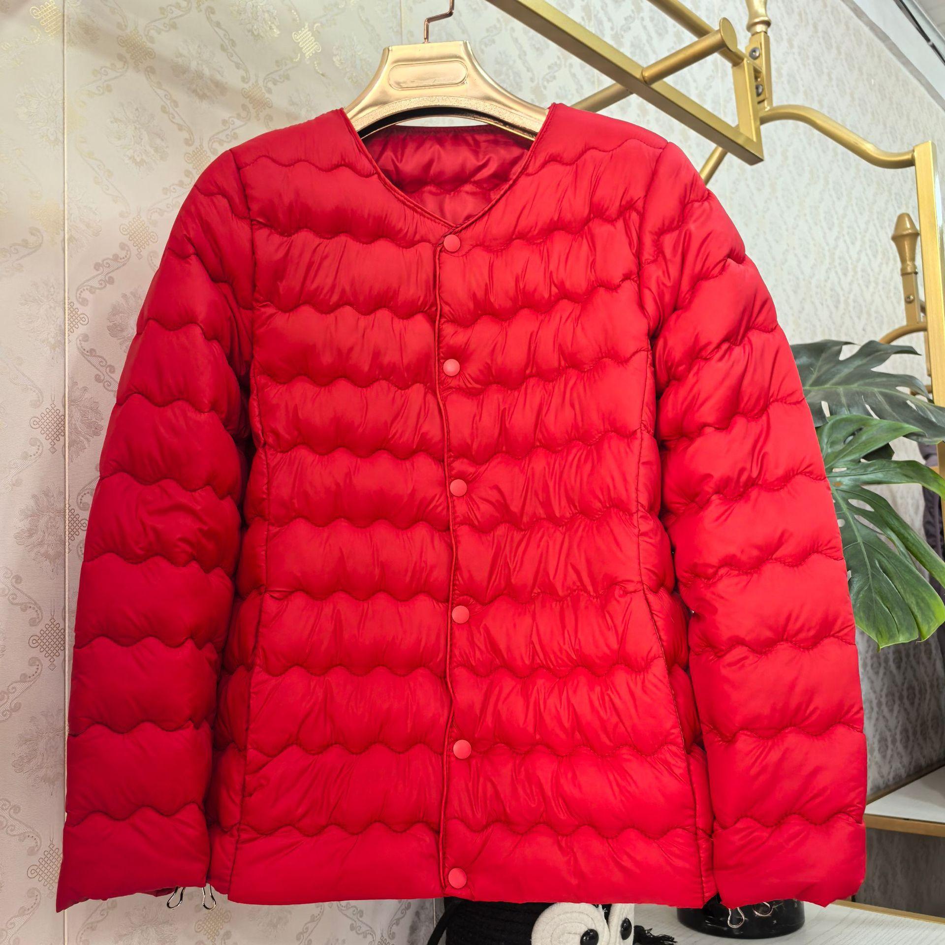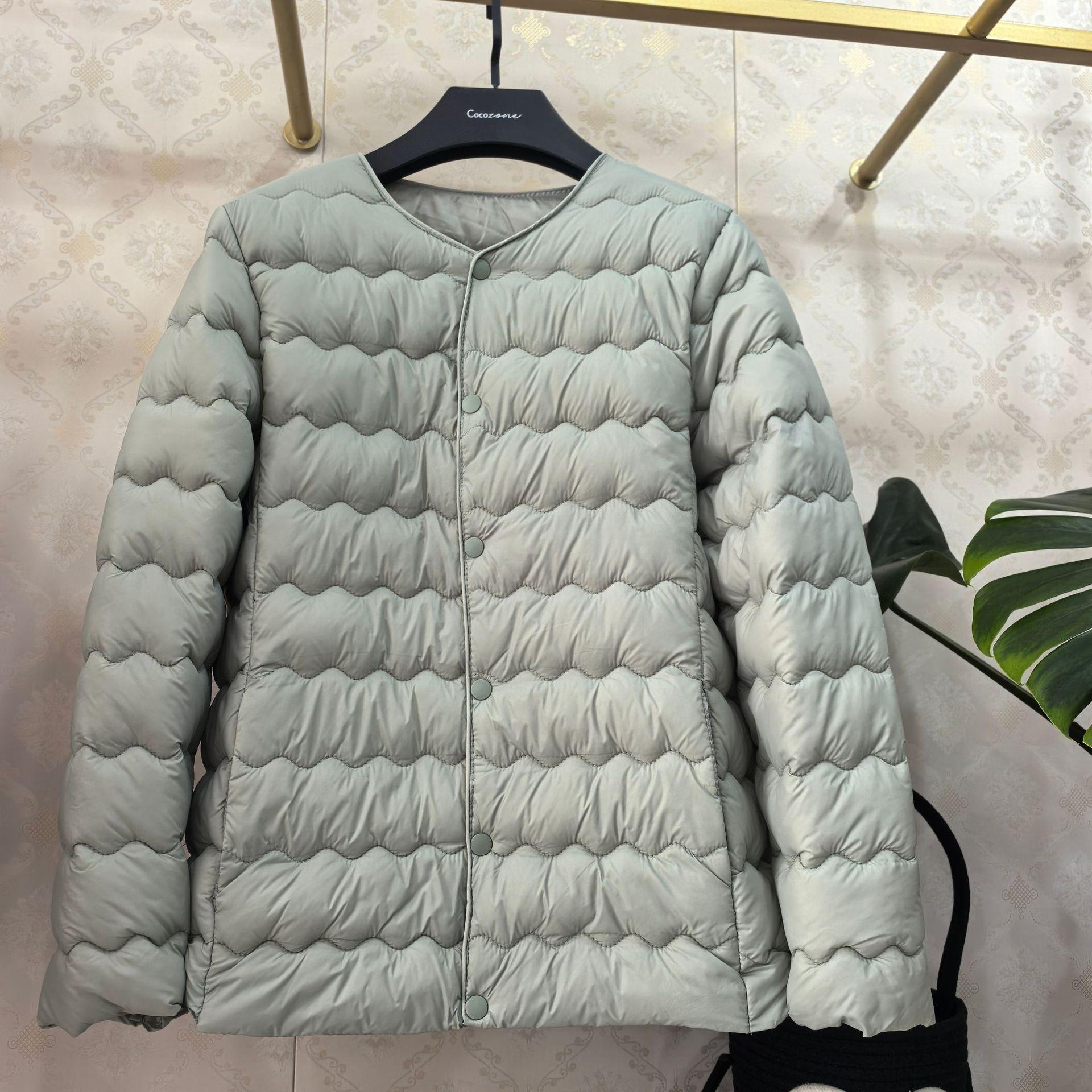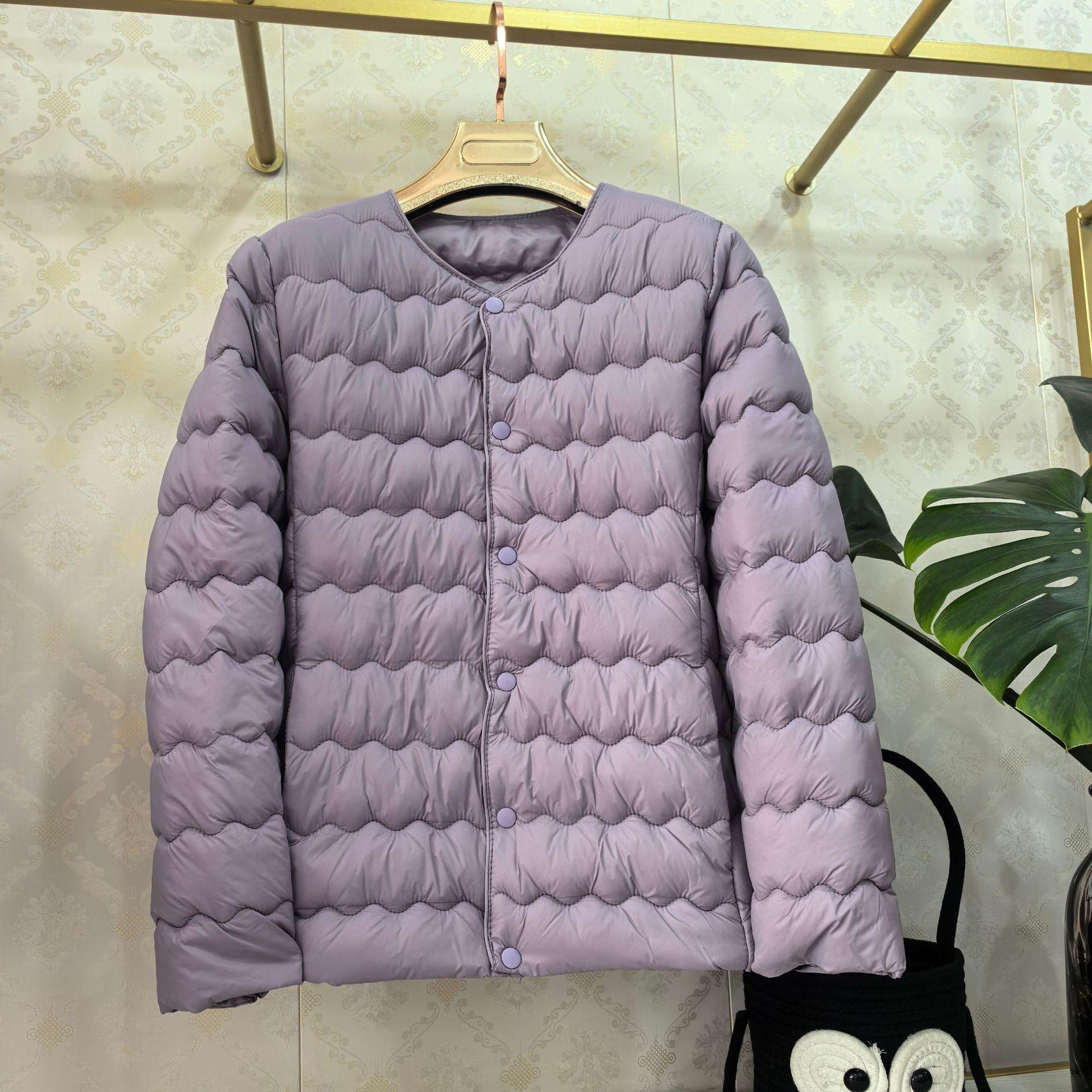 Nueva Chaqueta Ligera de Algodón para Mujer para Otoño e Invierno, Abrigo Corto de Algodón Ondulado de Moda, Chaqueta Casual Slim Sencilla de Cuello Redondo con Forro Interior para Mujer