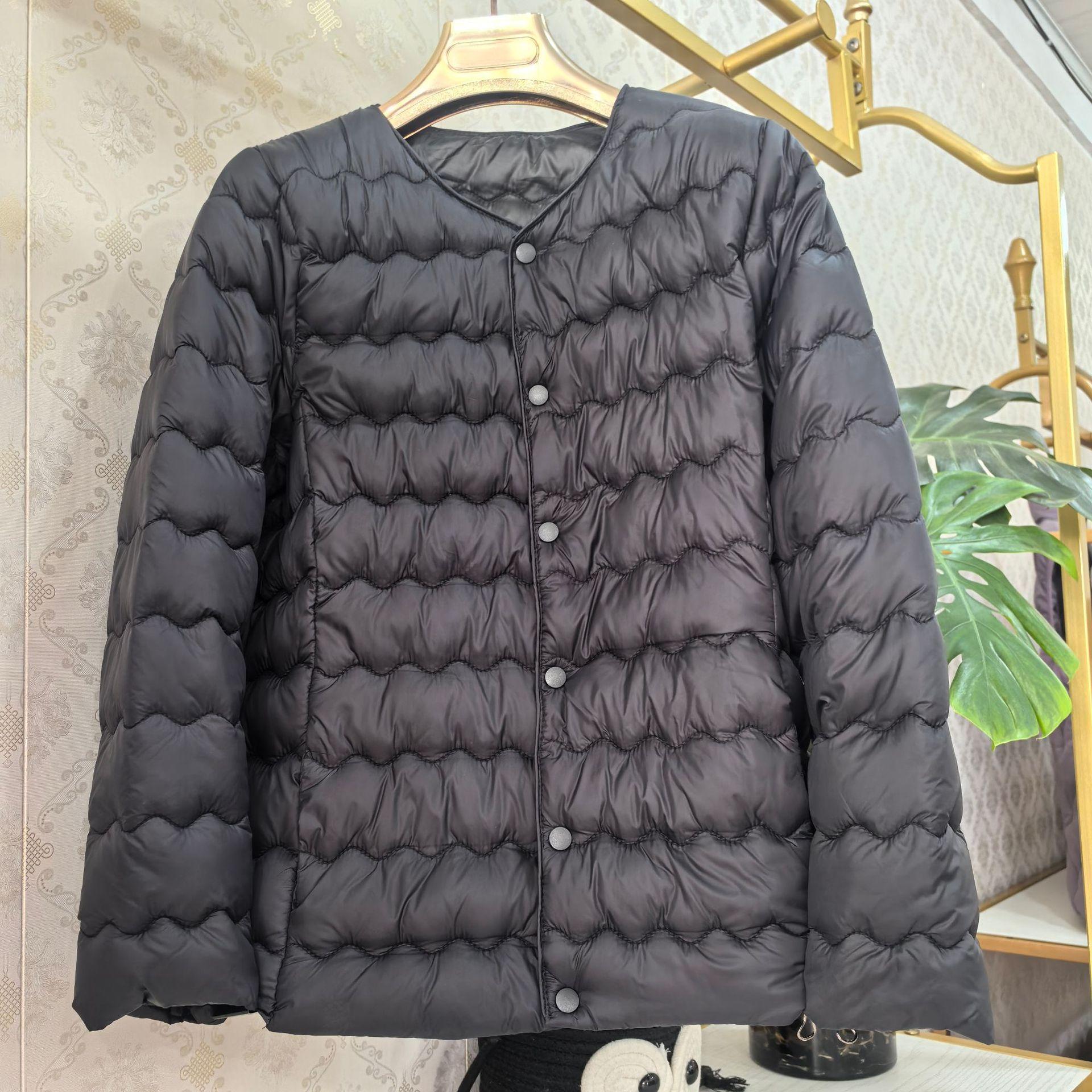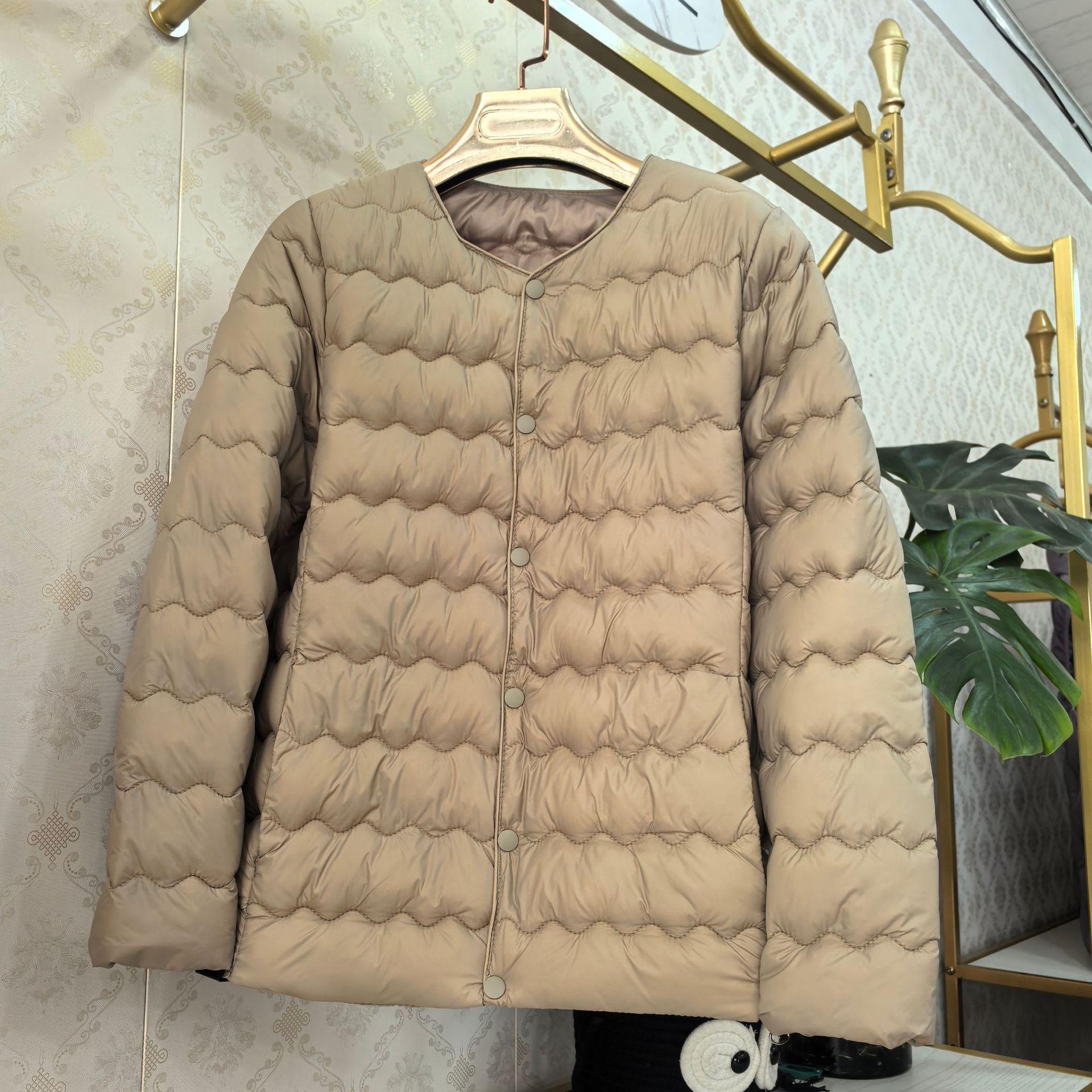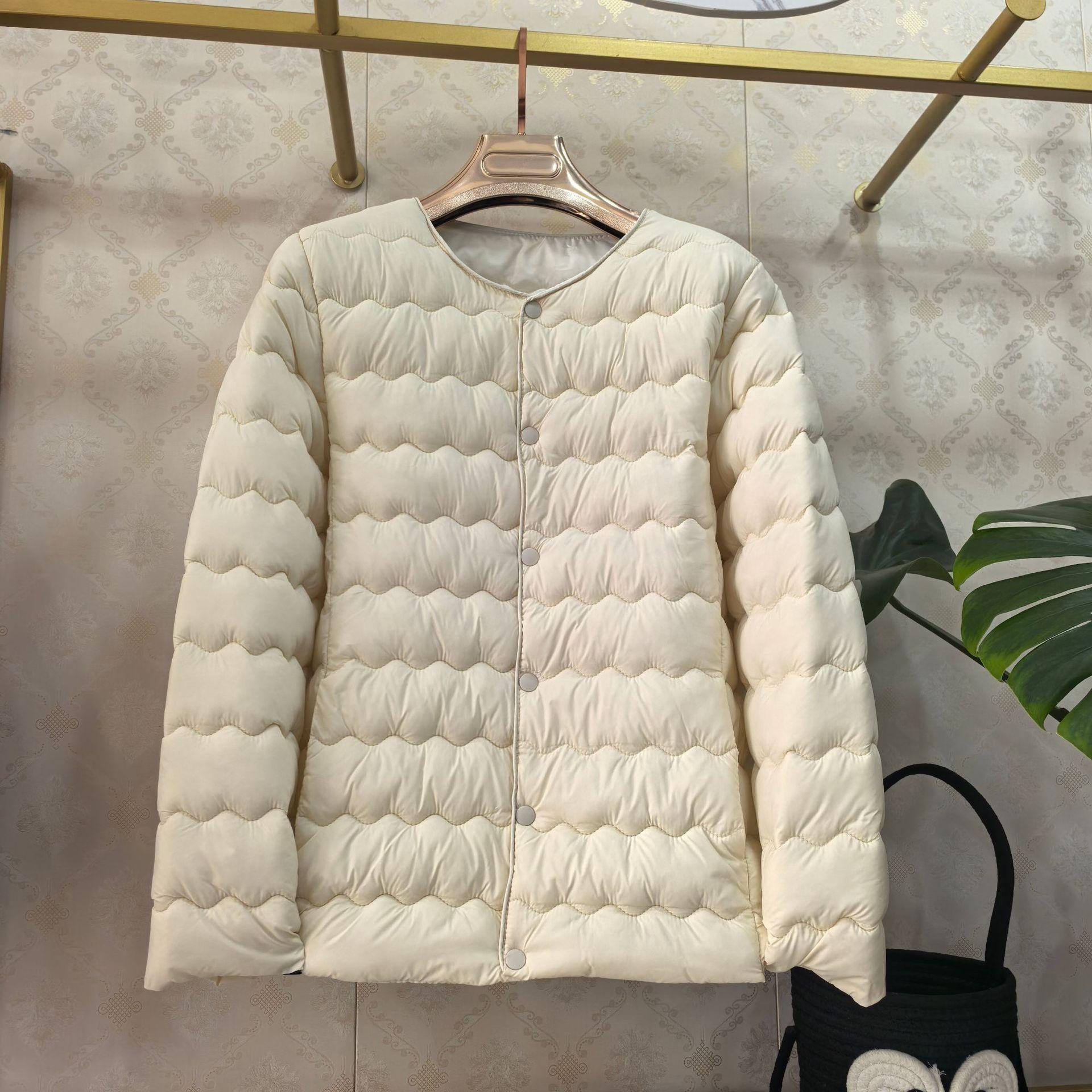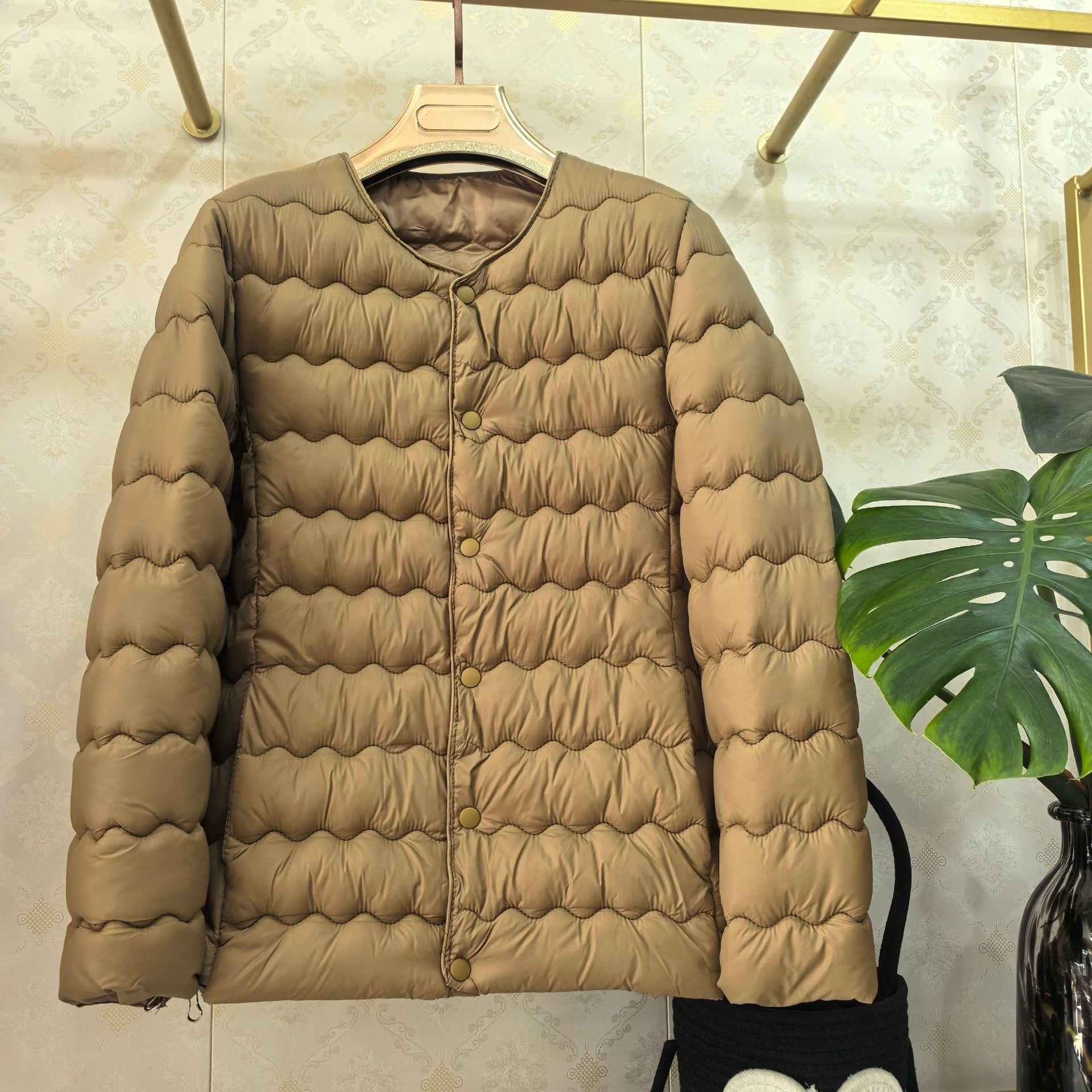 Nueva Chaqueta Ligera de Algodón para Mujer para Otoño e Invierno, Abrigo Corto de Algodón Ondulado de Moda, Chaqueta Casual Slim Sencilla de Cuello Redondo con Forro Interior para Mujer