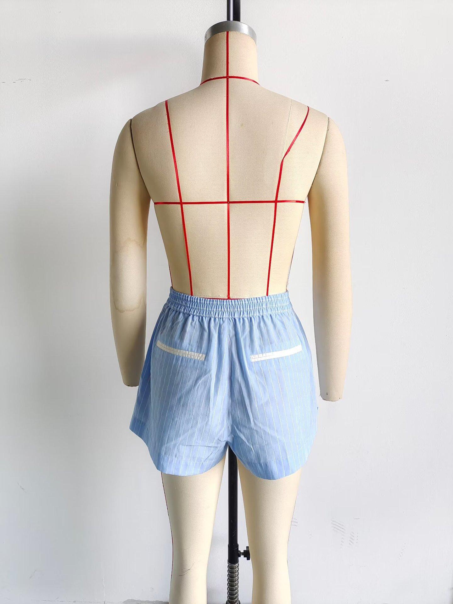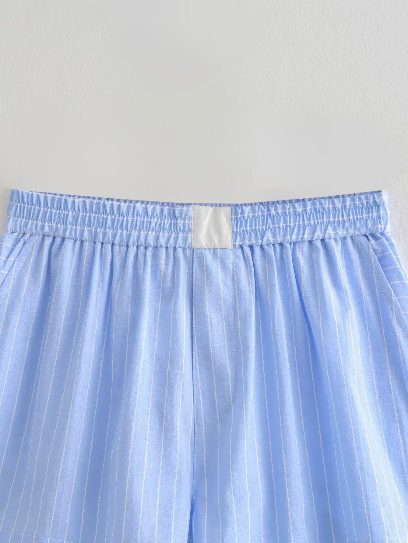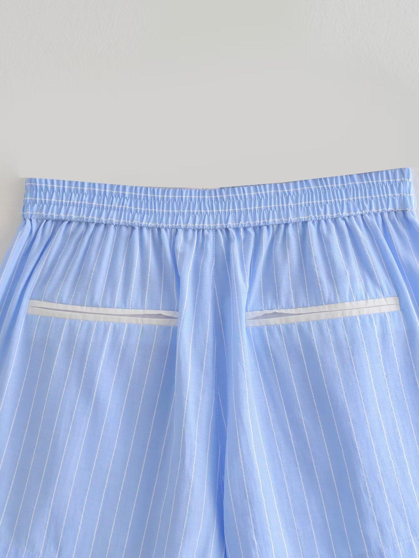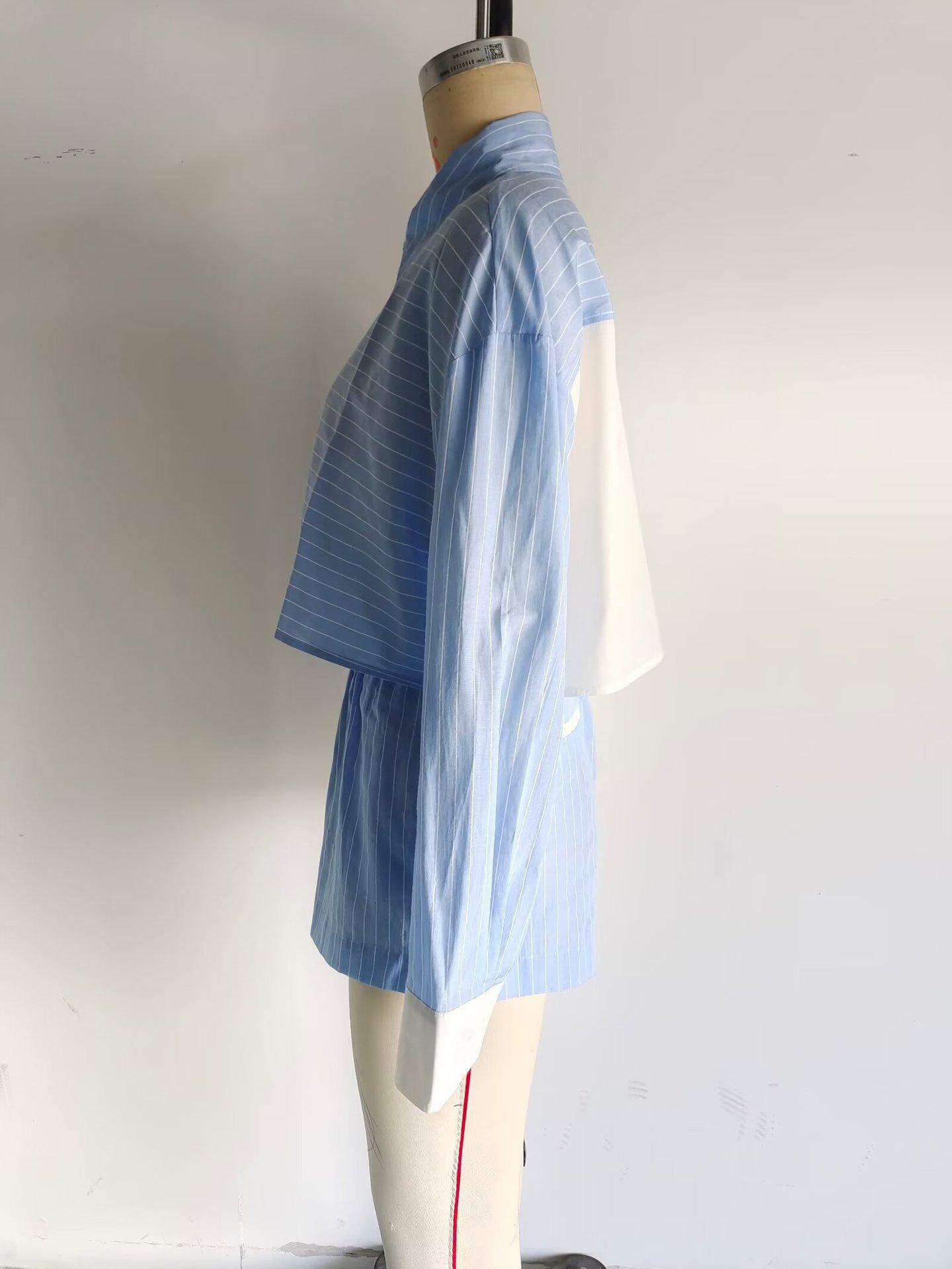 Ropa Europea y Americana Transfronteriza Aliexpress Popular Camisas de Rayas Contrastantes Shorts de Rayas Contrastantes
