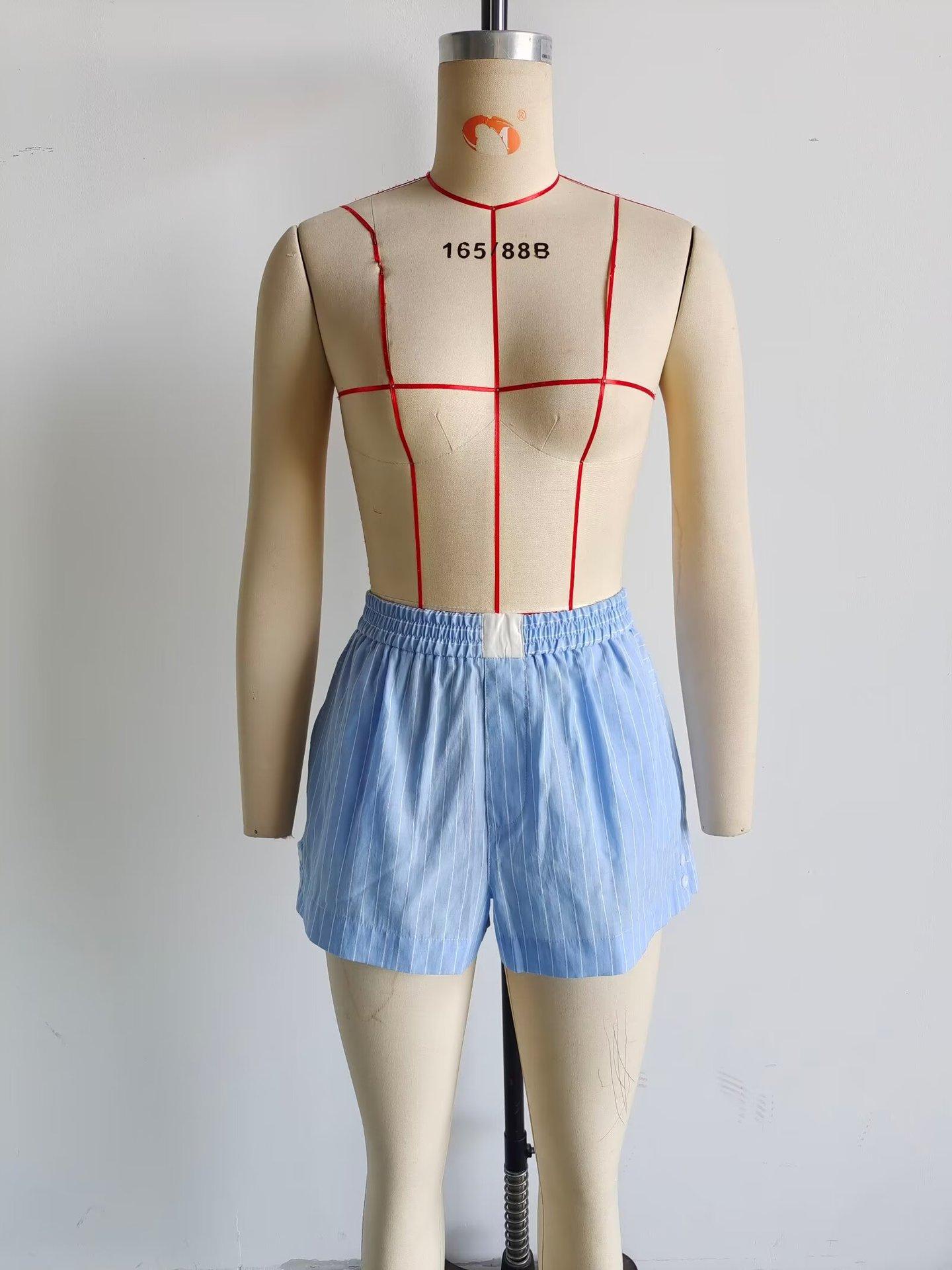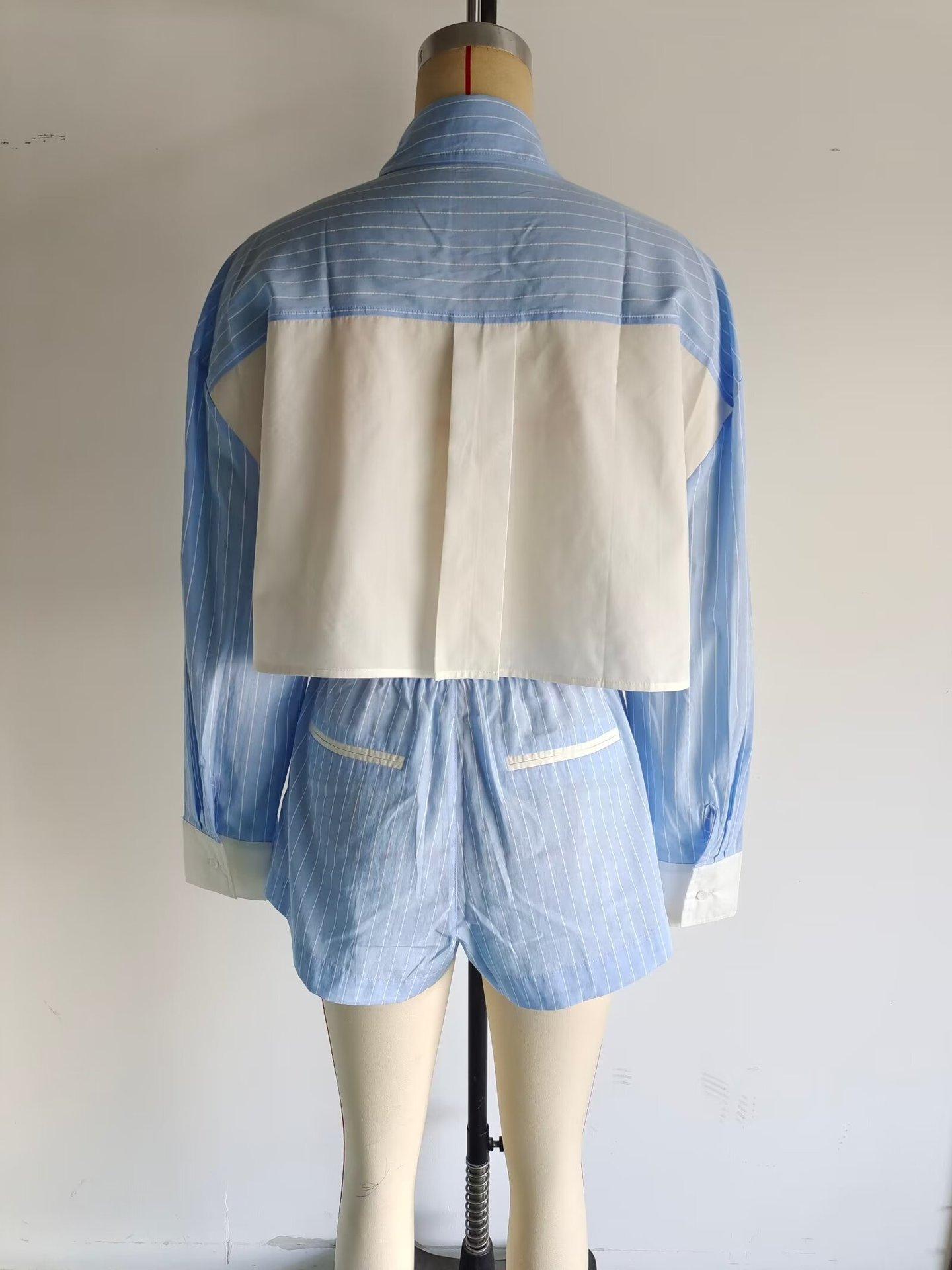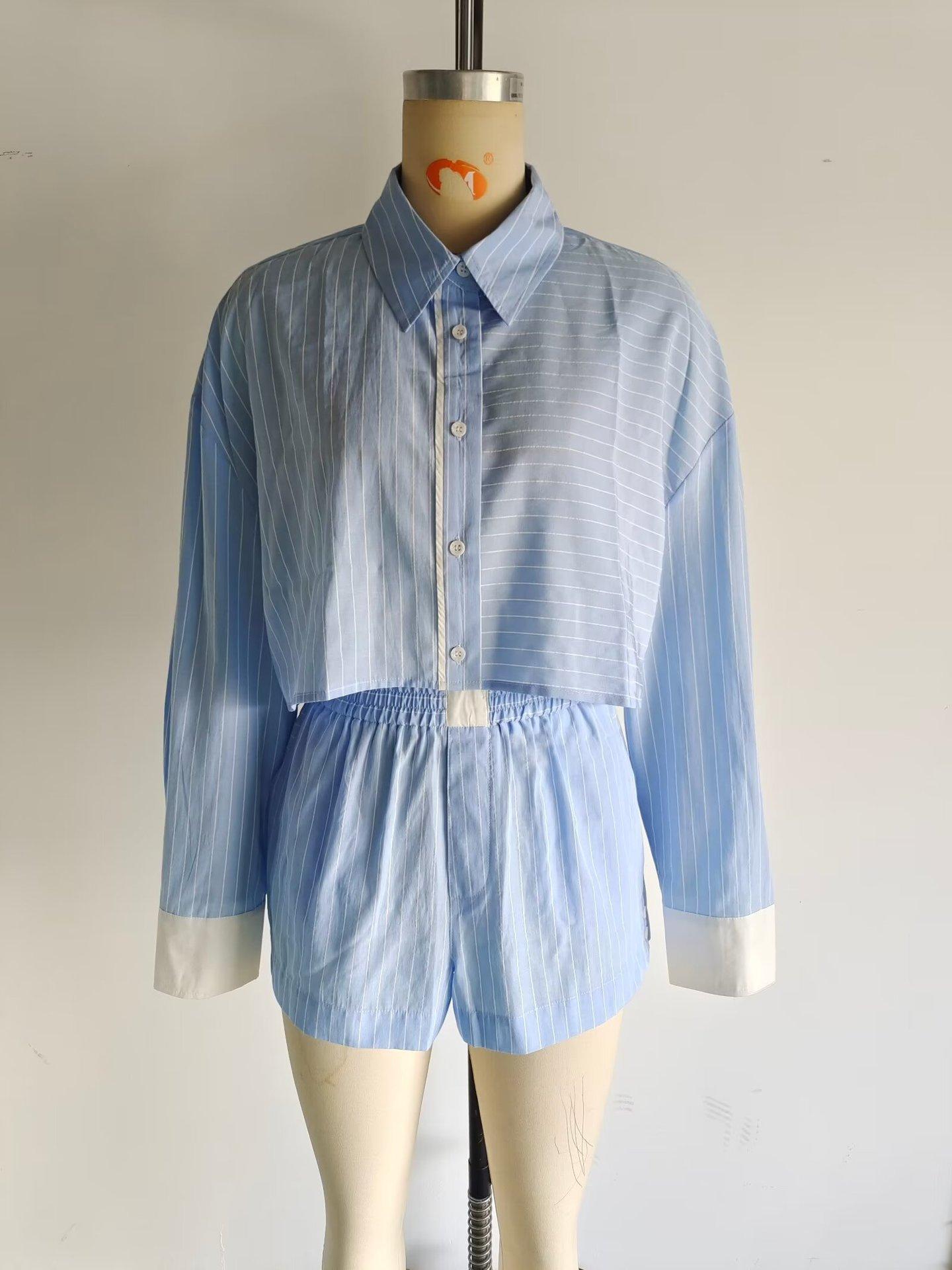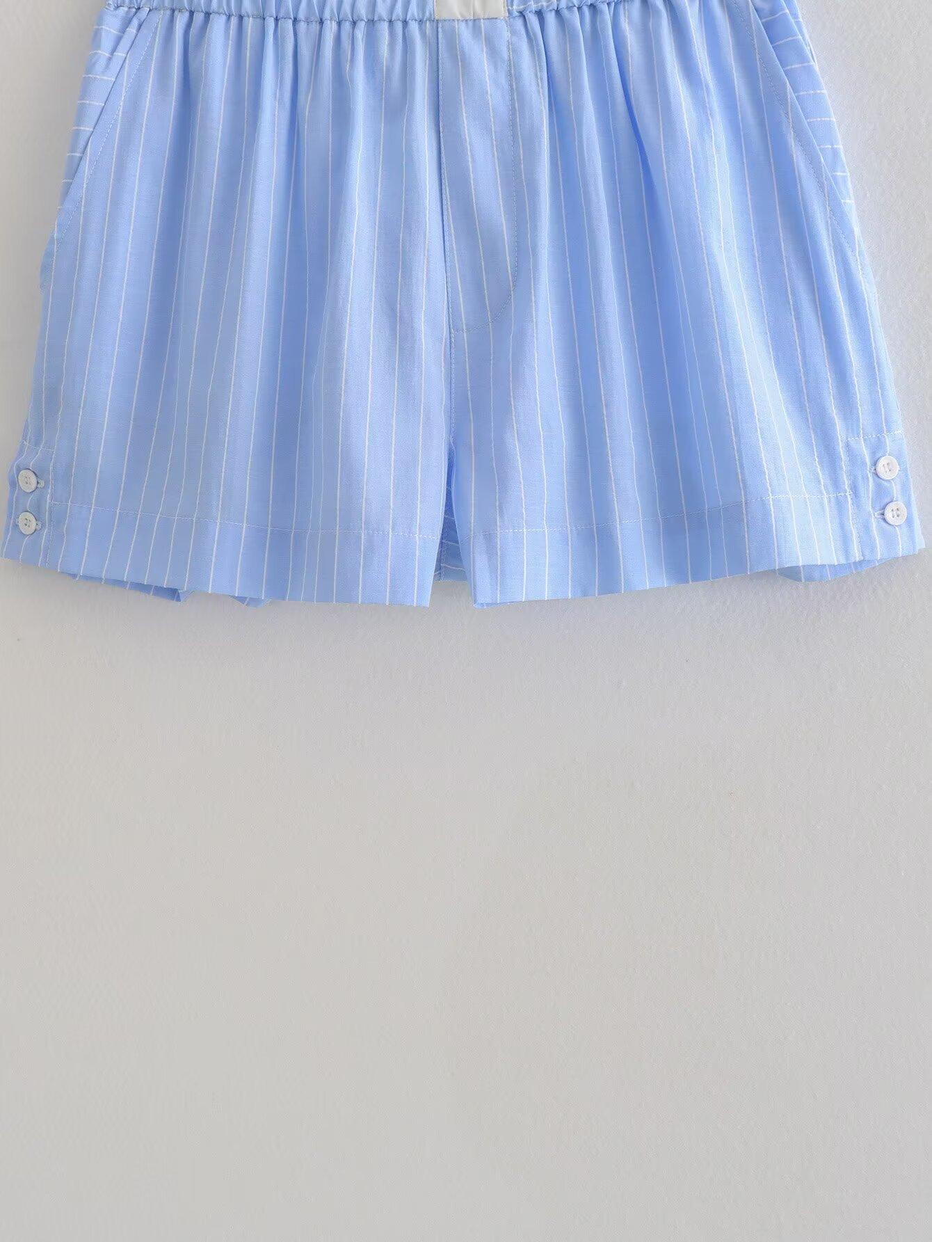 Ropa Europea y Americana Transfronteriza Aliexpress Popular Camisas de Rayas Contrastantes Shorts de Rayas Contrastantes
