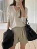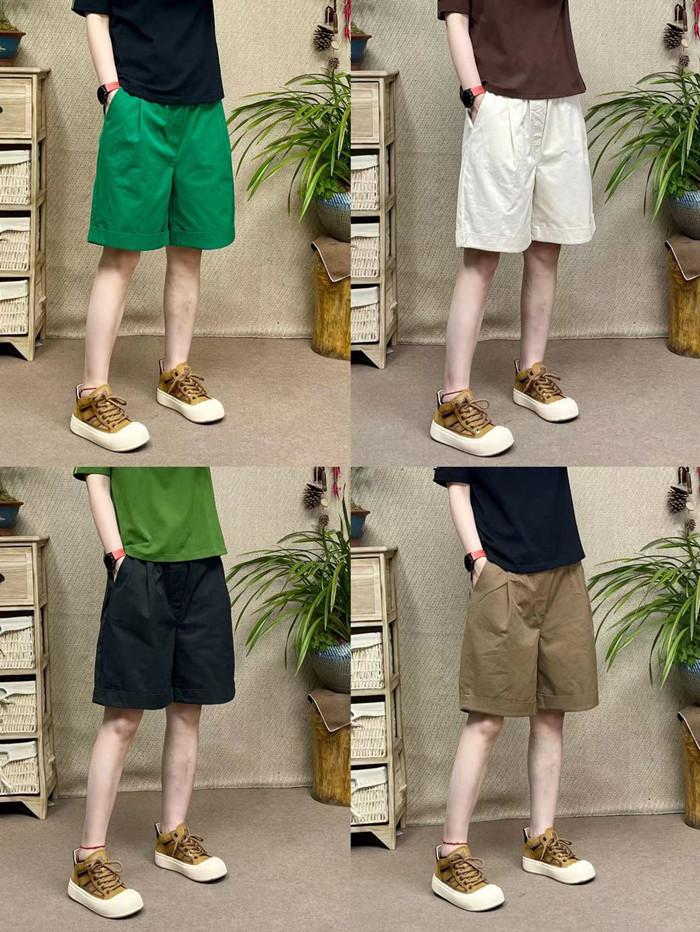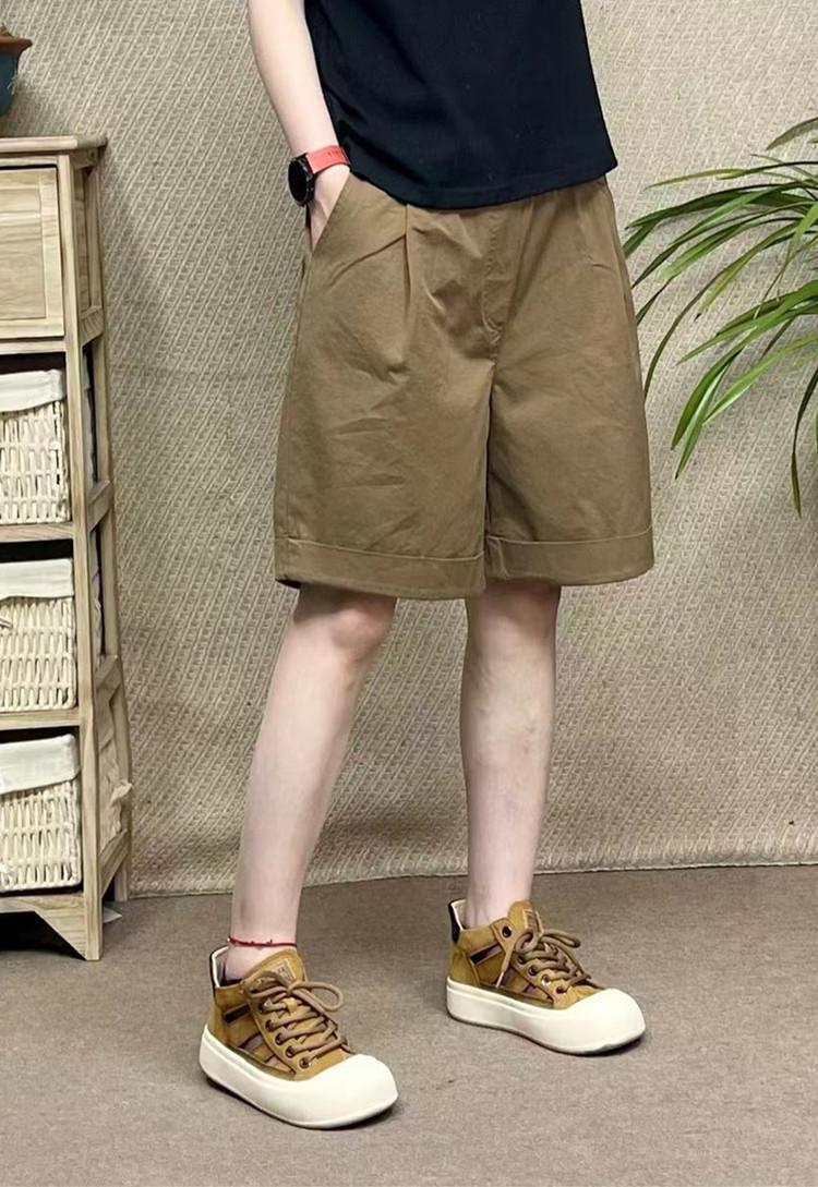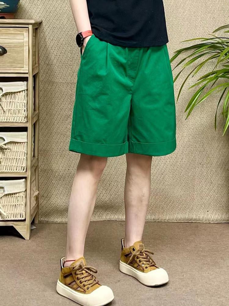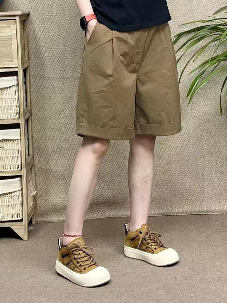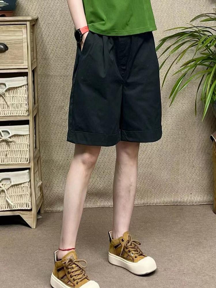 2025 Verano Nuevo Estilo Coreano Shorts Delgados de Algodón Lavado para Mujer Cintura Elástica Sencillos Versátiles Moda Pantalones Casuales Cinco Puntos