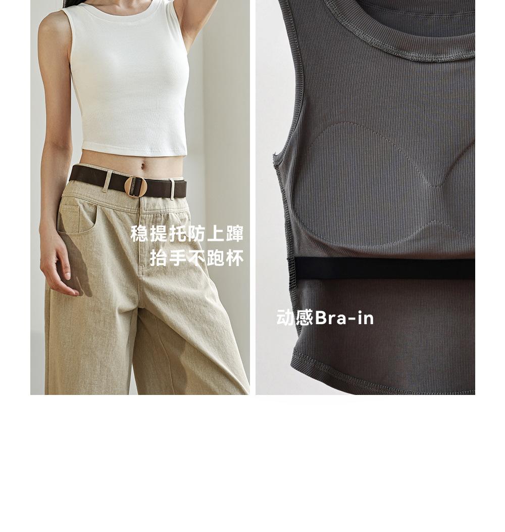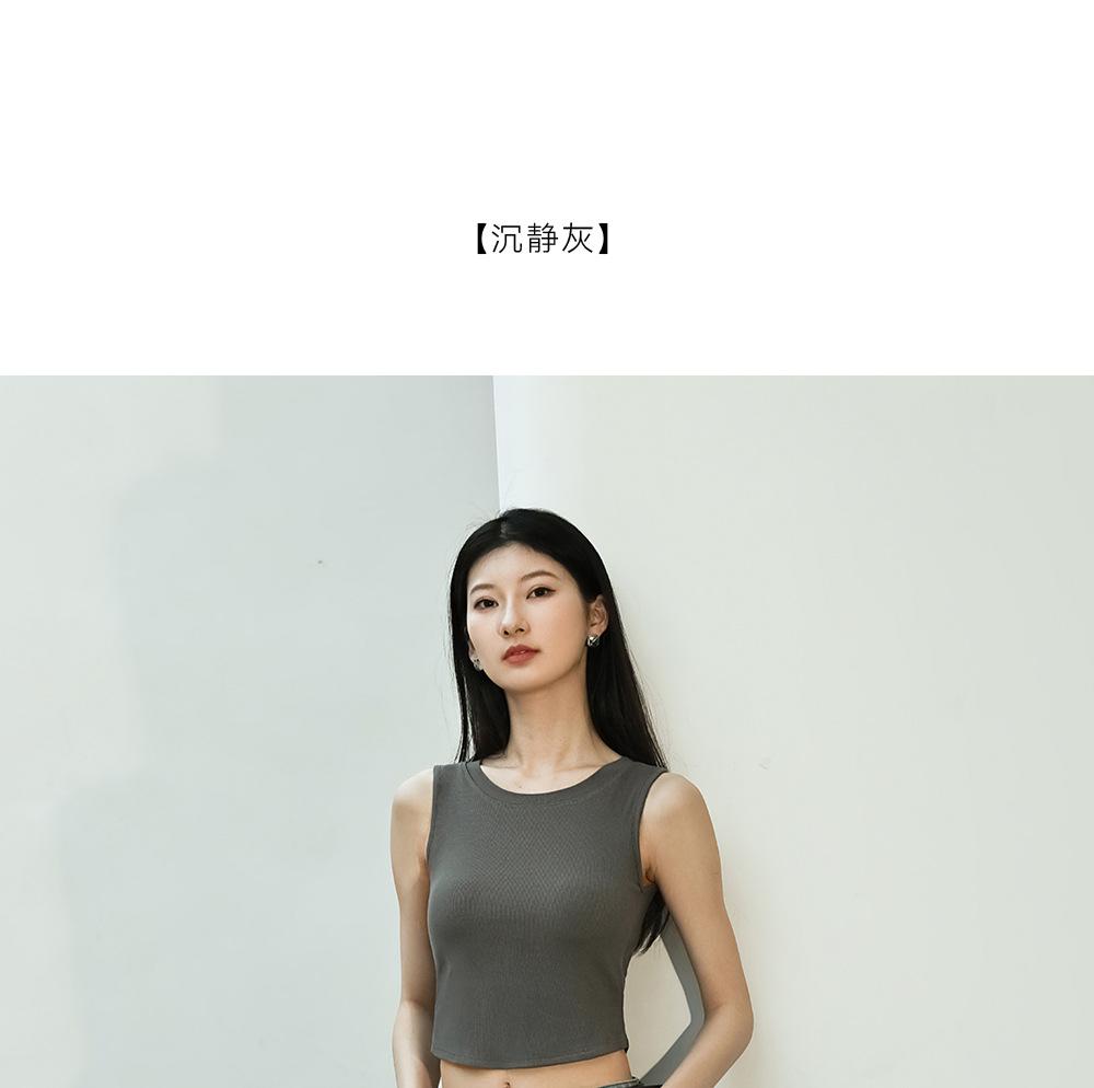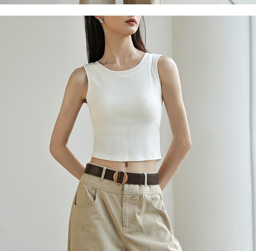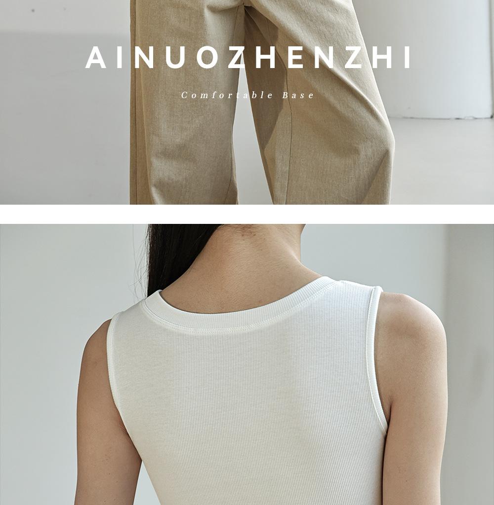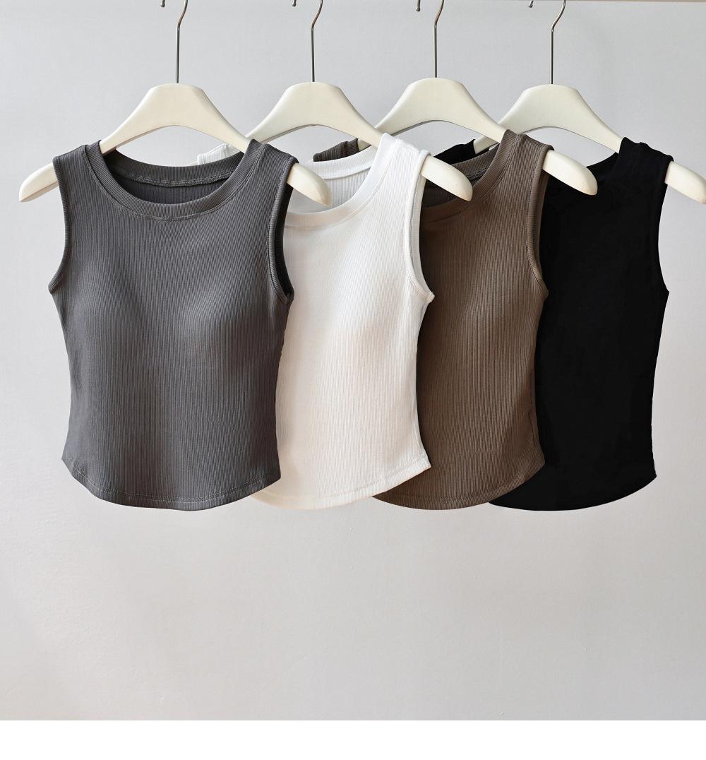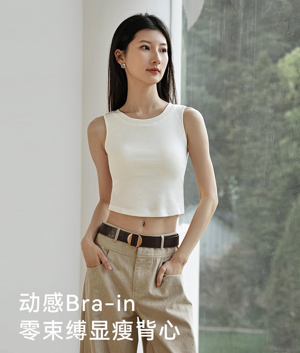 Chaleco básico en forma de I 2025 nuevo estilo interior con almohadilla en el pecho tirante blanco ropa exterior para mujer top corto ajustado sin mangas