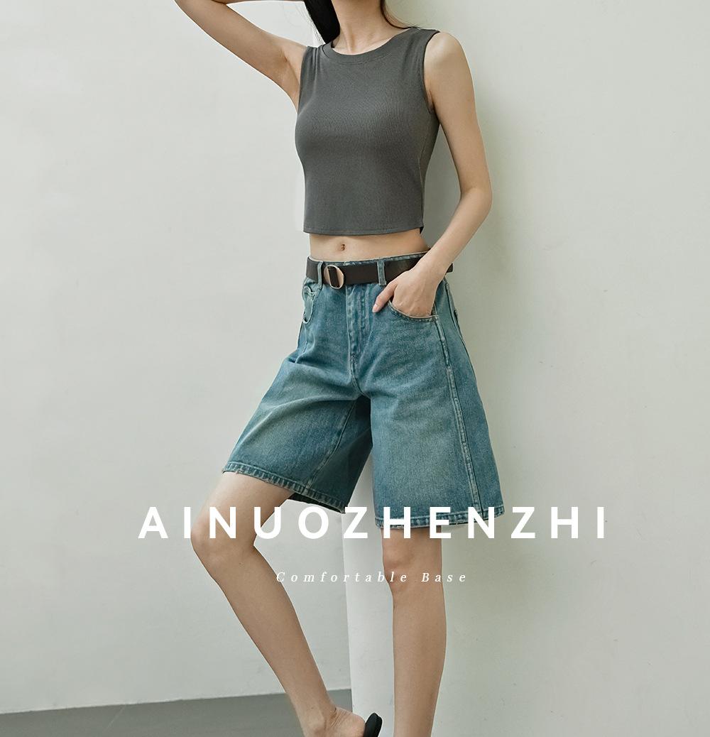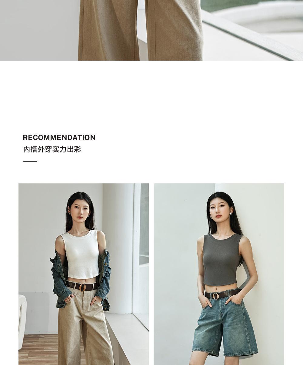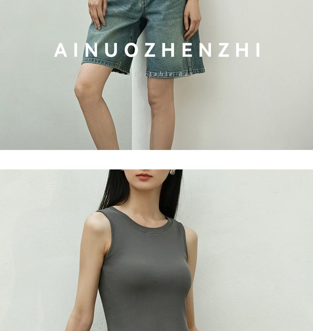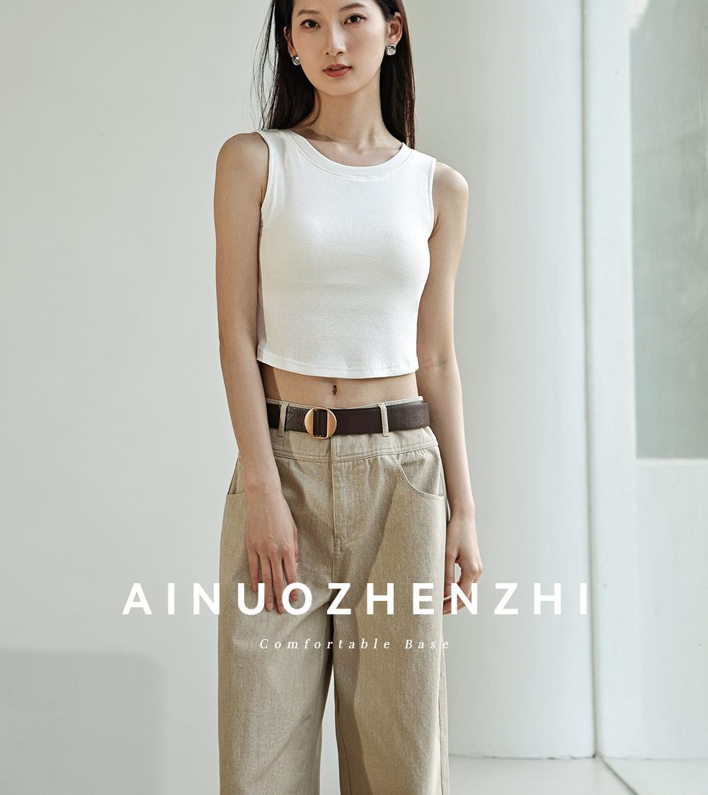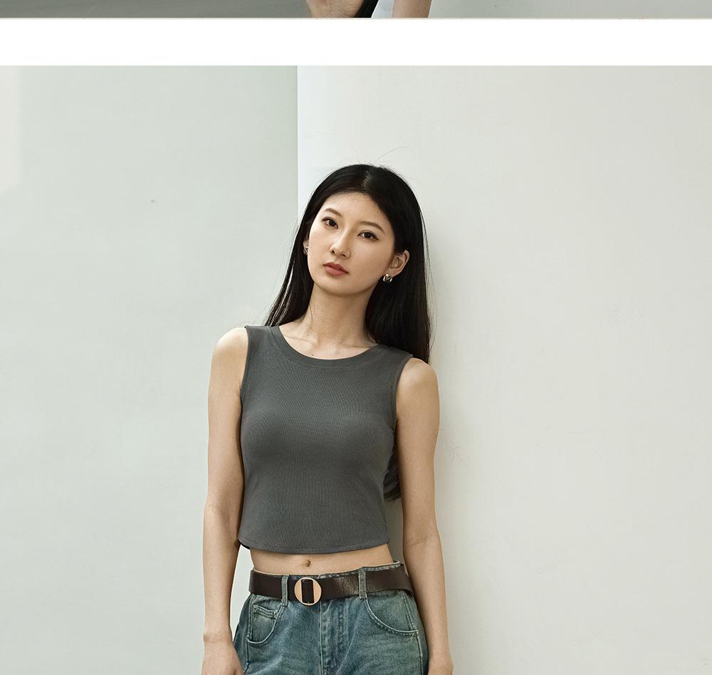 Chaleco básico en forma de I 2025 nuevo estilo interior con almohadilla en el pecho tirante blanco ropa exterior para mujer top corto ajustado sin mangas