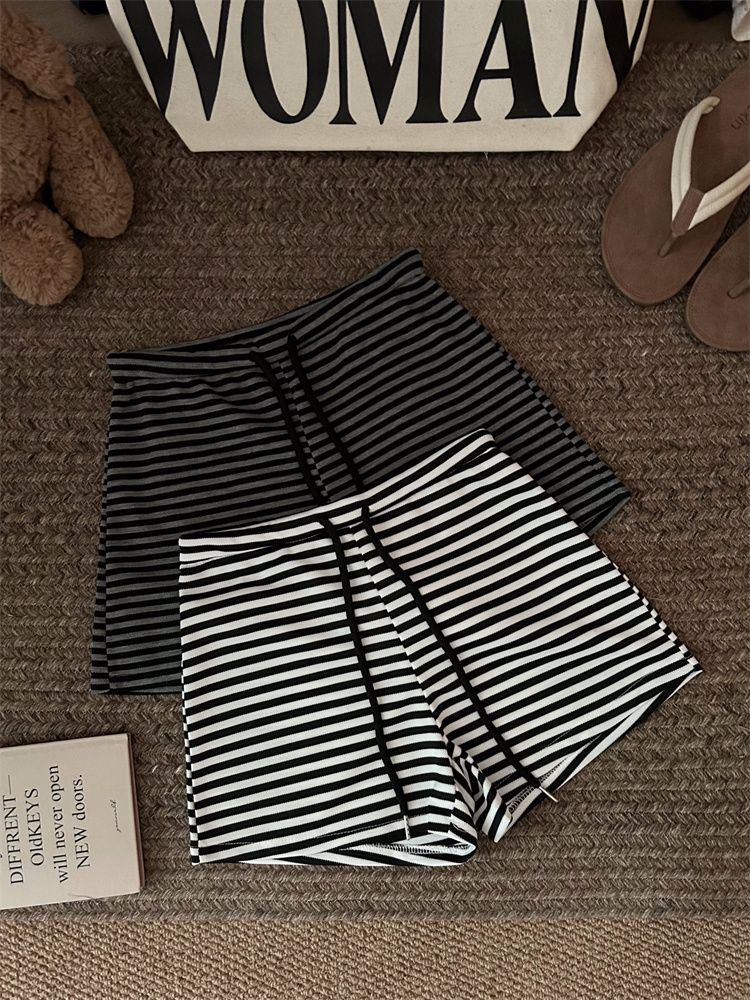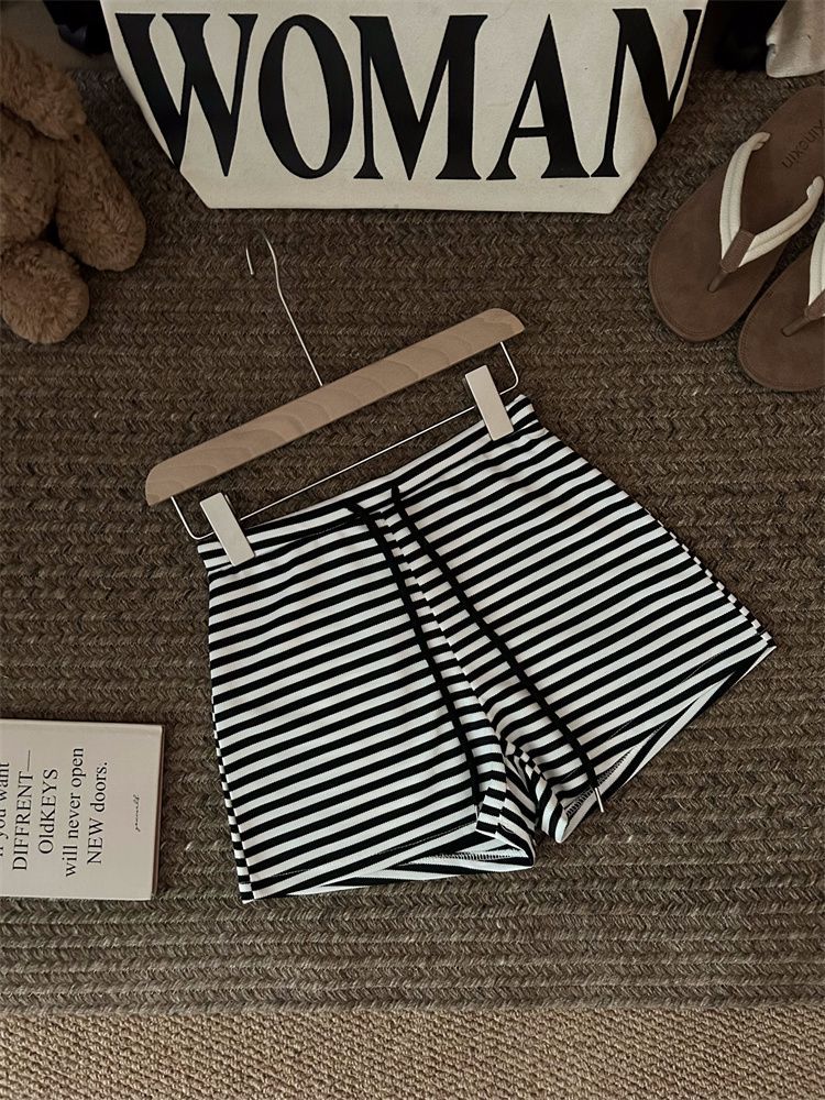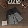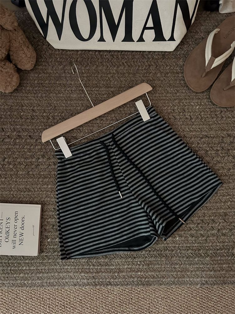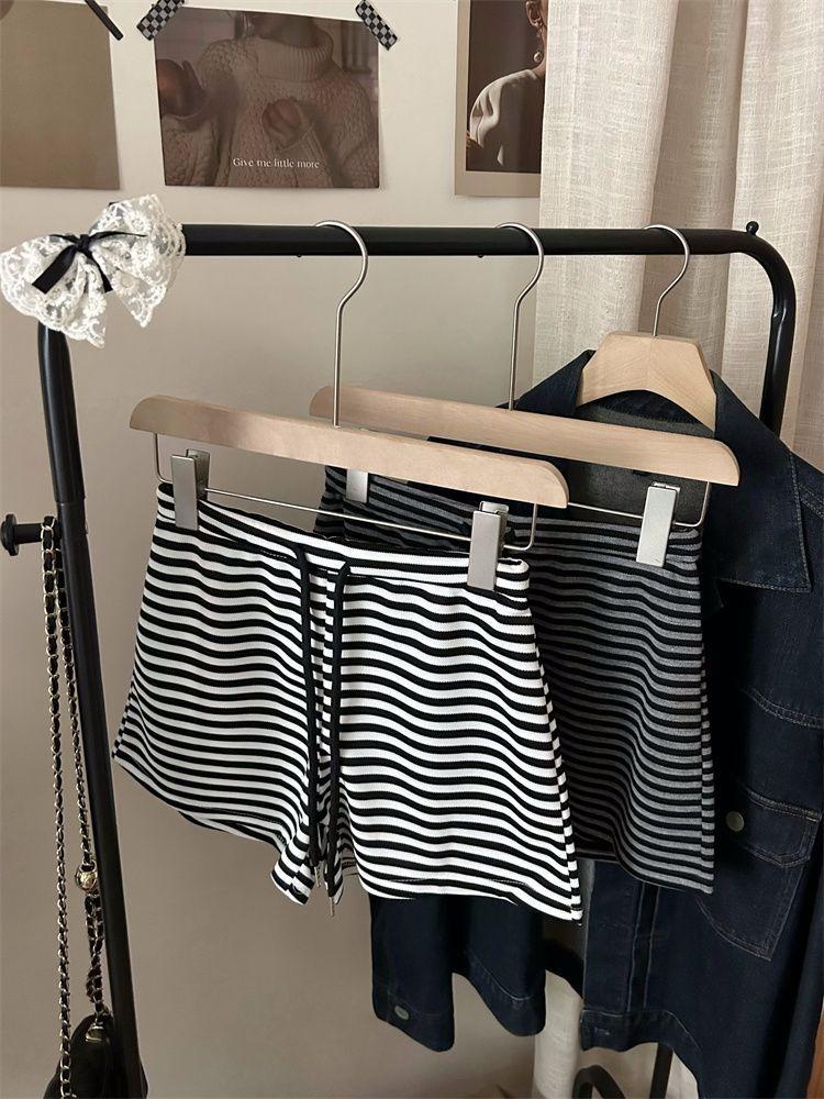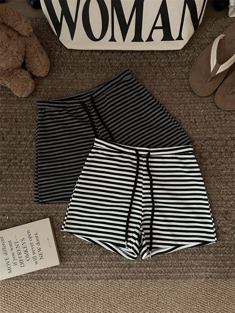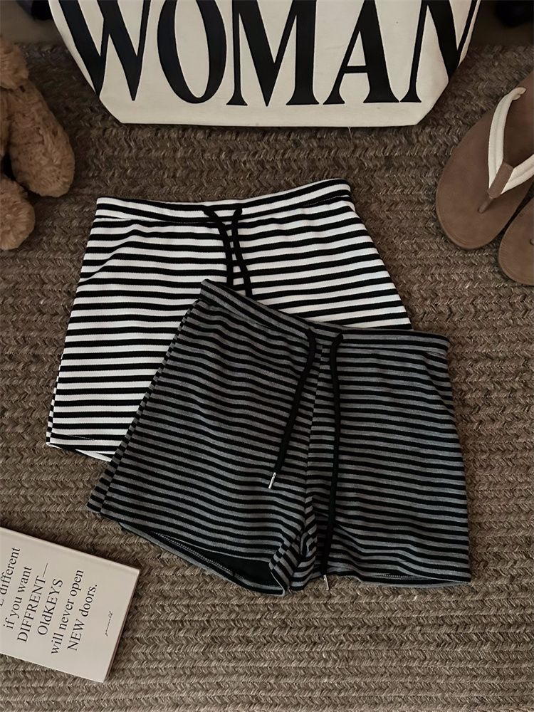 Shorts Deportivos Casuales Color Block a Rayas Mujer Verano 2025 Delgados Cordón Cintura Alta Adelgazantes Pierna Ancha Hot Pants Shorts
