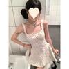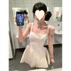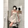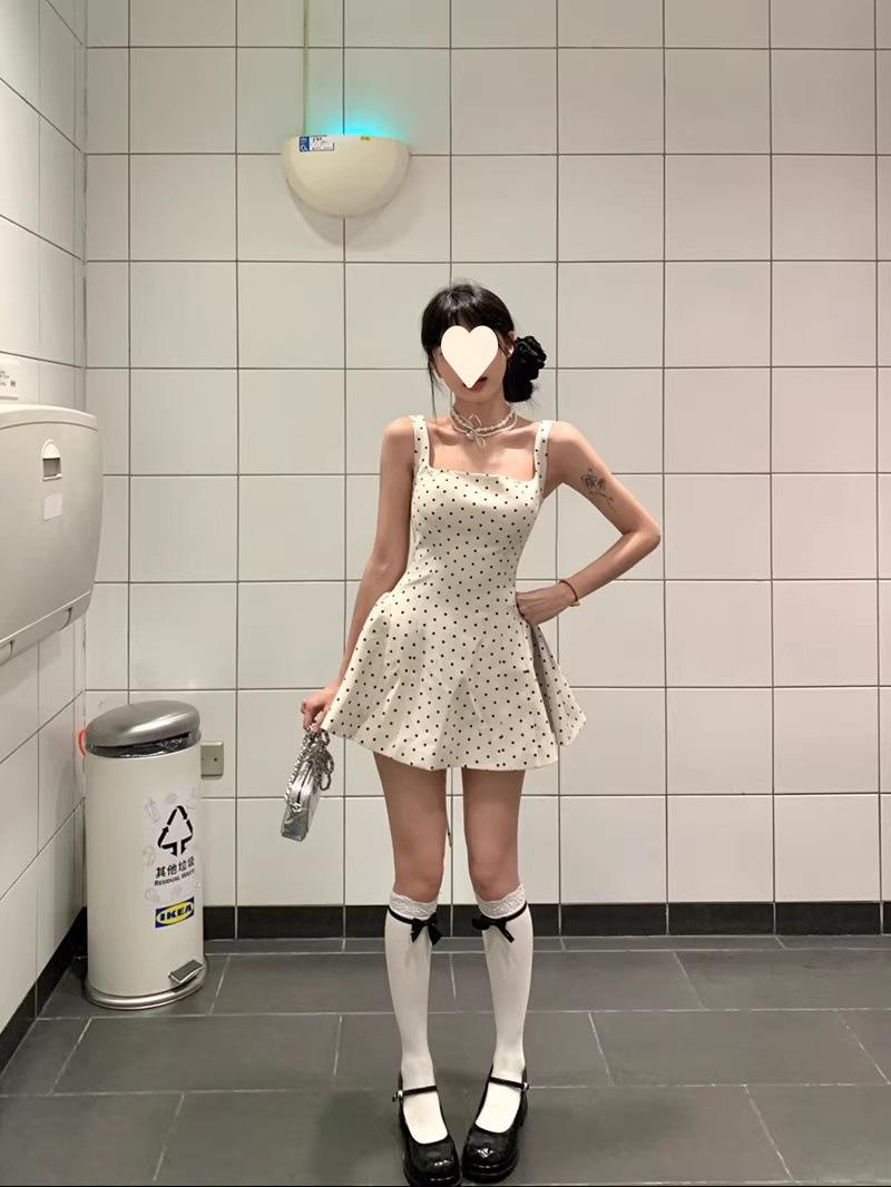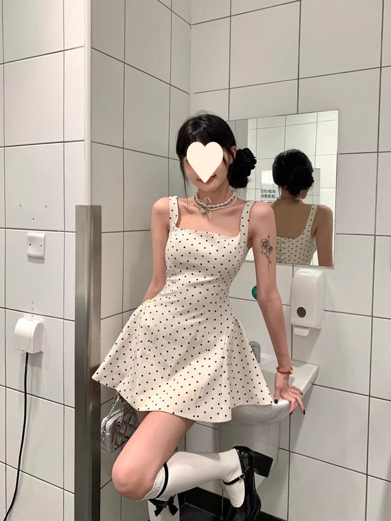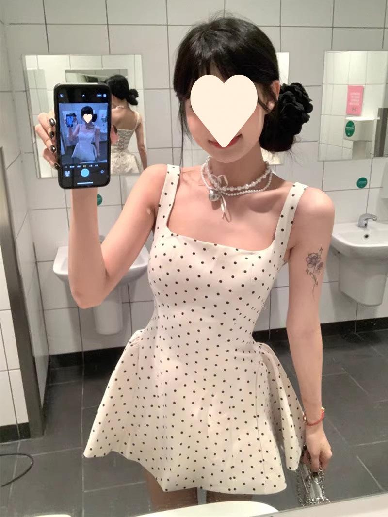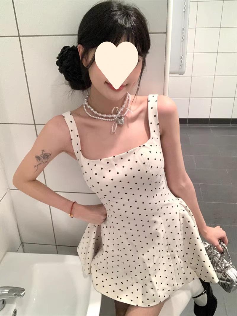 Vestido de Tirantes Estilo Francés Cuello Cuadrado Lunares Ondulados Verano para Mujer Adelgazante Dulce y Picante Falda Línea A Falda Pequeña Abullonada