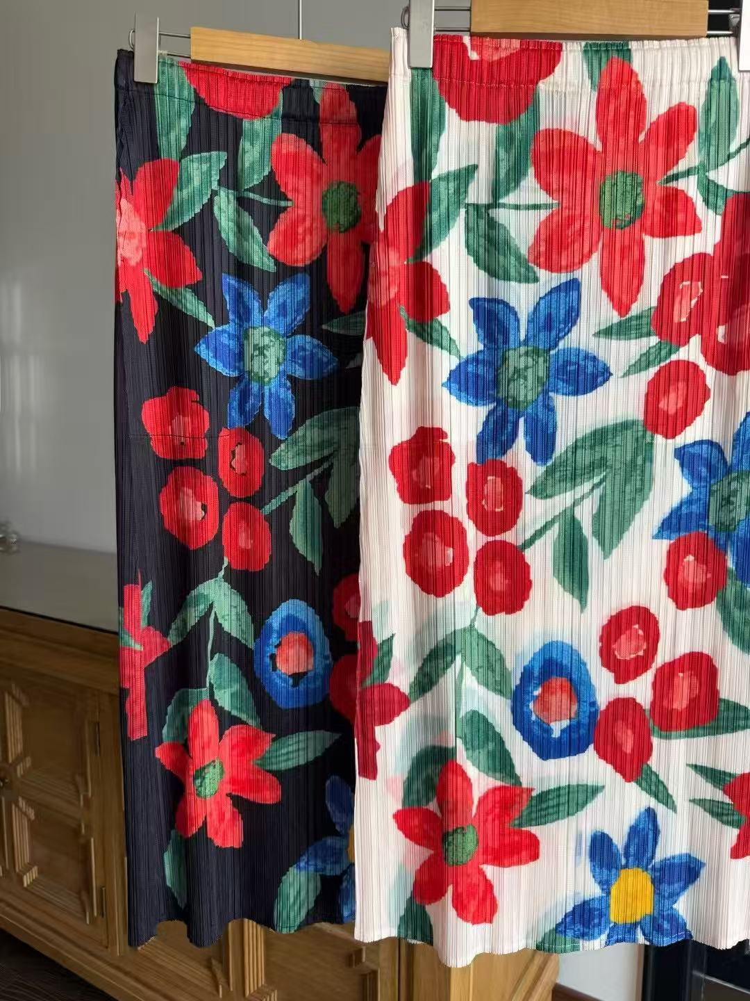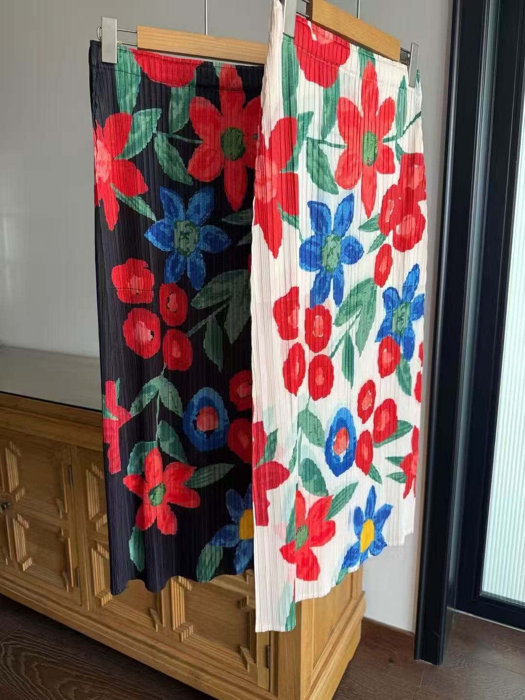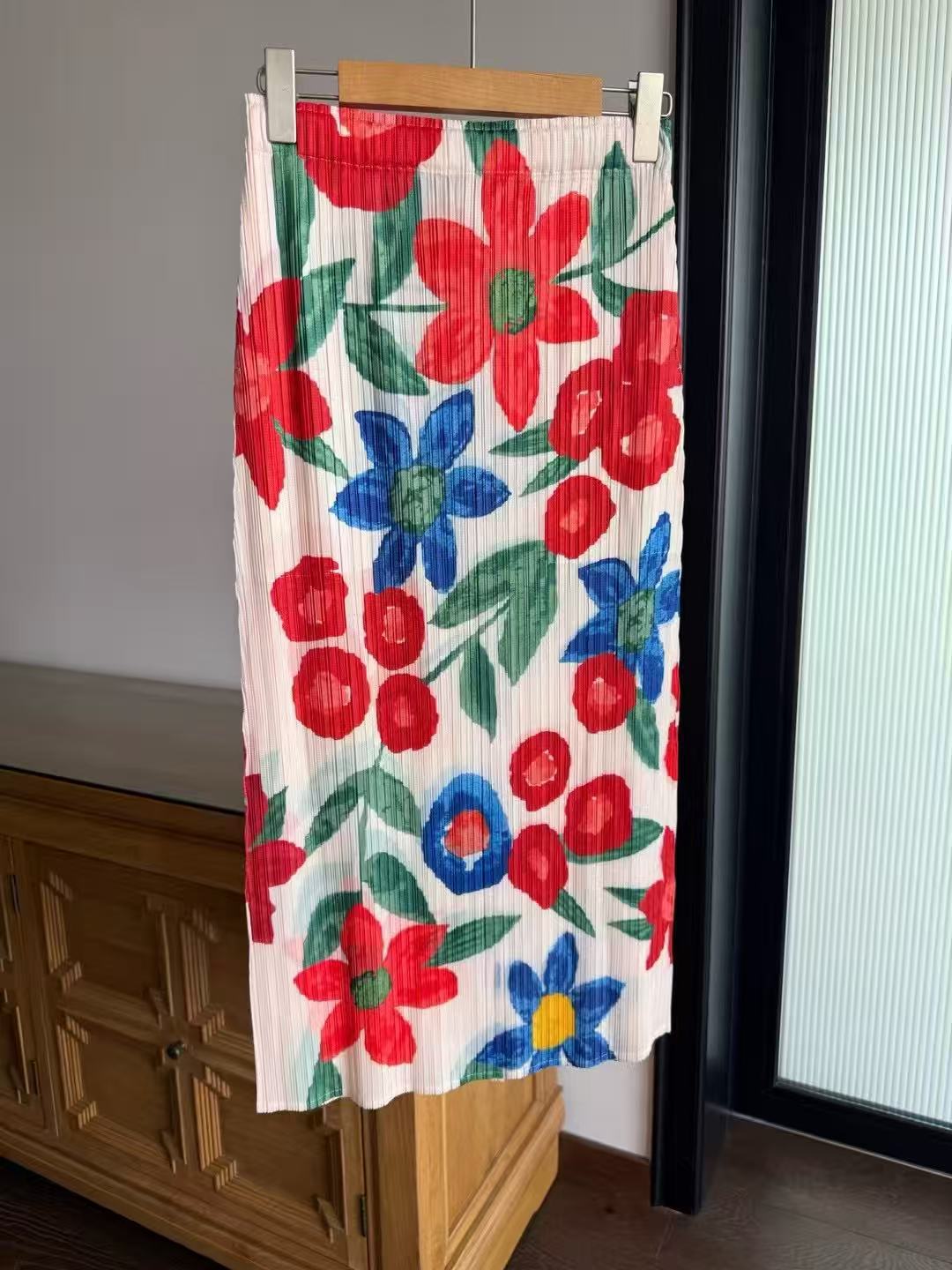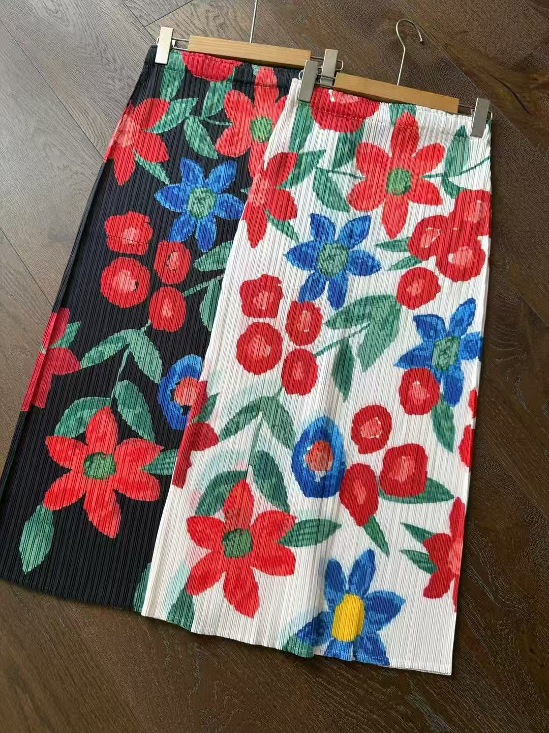 Hermosa Falda de Estilo Japonés ~ Diseño Nicho Moda Verano Cintura Alta Estampado Retro Adelgazante Abertura Plisada 020