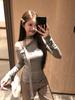 Camiseta de Manga Larga con Hombro Caído y Cinta de Diseño Pure Desire para Mujer Invierno 2024 Nueva Corte Slim Ajustado Adelgazante