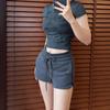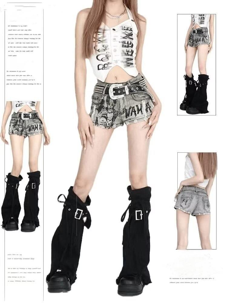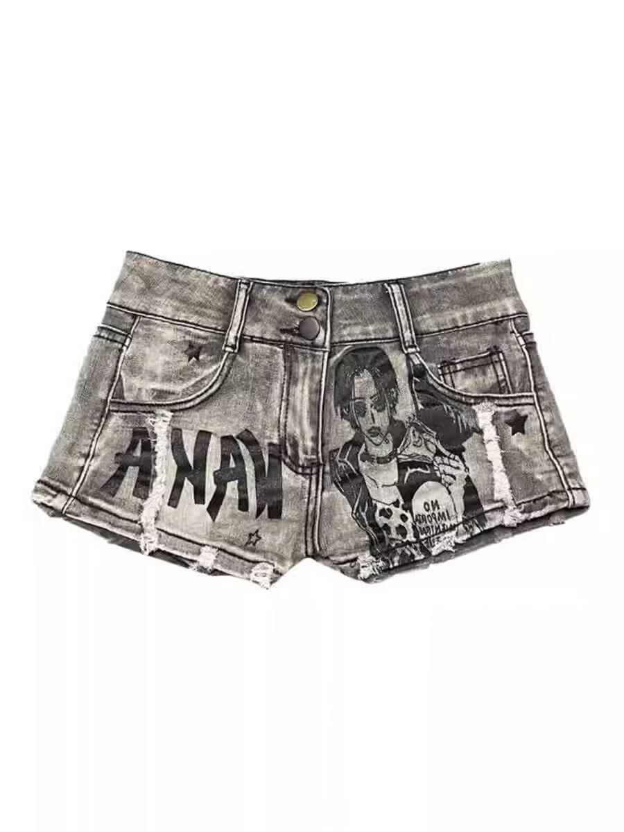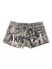Shorts de Mezclilla de Cintura Baja Retro Estilo Americano para Chica Sexy Moda de Verano para Mujer Rectos Ajustados Estampados Pequeños Hot Pants